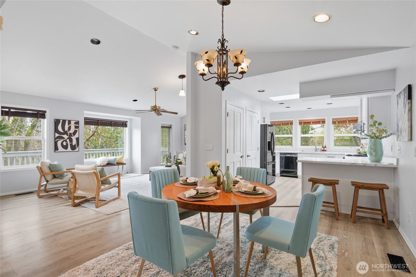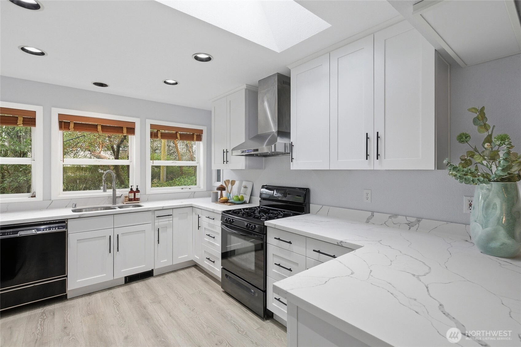 Privacy in Seattle? Nearly impossible to find. But this Highland Park 2-bed, 2-bath delivers exactly that, plus a legitimate 2024-2025 top-to-bottom refresh. You're tucked away from the chaos but still 10 minutes to Alki Beach, 10 minutes to downtown, close to West Seattle Junction, and near every highway you actually use. (SR 99, SR 509, SR 599, I-5, I-90) The updates are extensive. New 30-year roof in 2024. Fresh exterior paint in 2025. Brand new Trex deck on the front (also 2025). Inside, the kitchen was completely redone with new cabinets, counters, and a skylight. All new laminate hardwood flooring. Fresh interior paint throughout. One bedroom on the main level, one on the lower level, with a full bathroom on each floor. The primary suite contains a walk-in closet and newly refreshed bathroom. There's a wood-burning stove for those cold nights, a 2-car garage, and a low-maintenance yard with two outdoor spaces (one covered). Complete with a security system already in place. TV Wall Mount also stays. The layout gives you options: separation for roommates or privacy for guests.