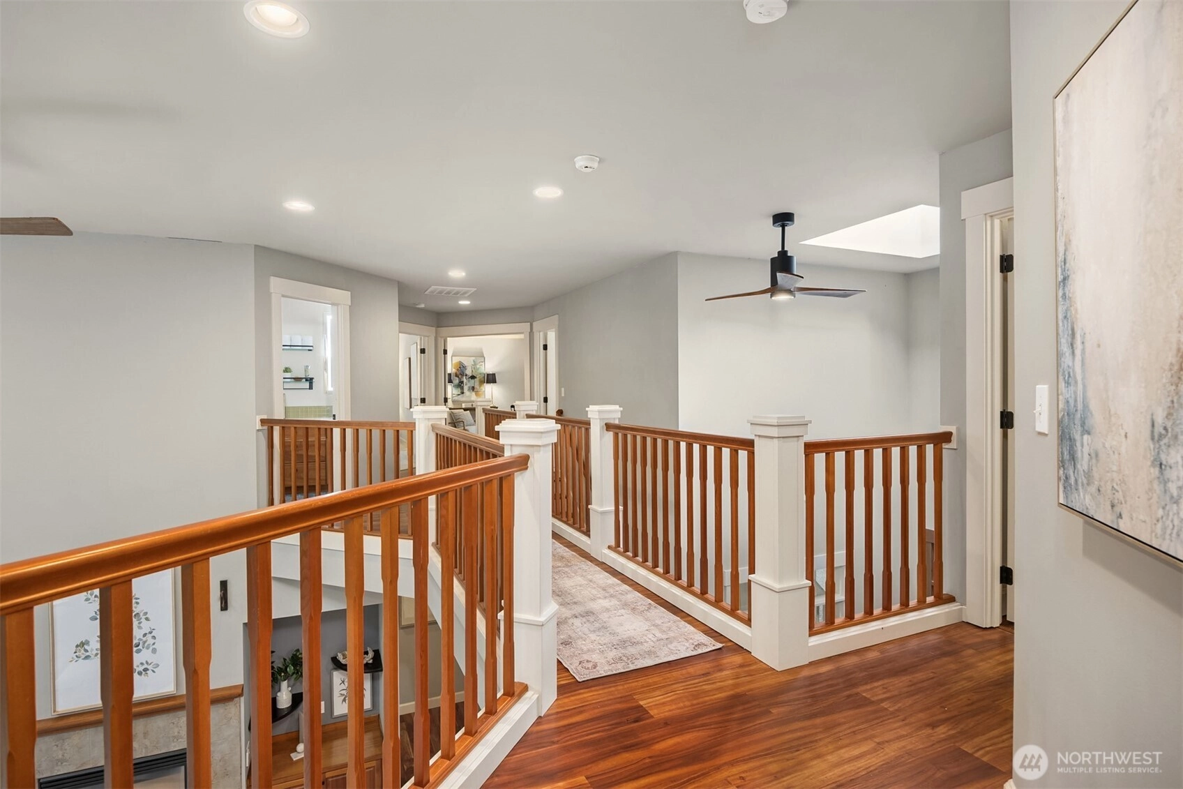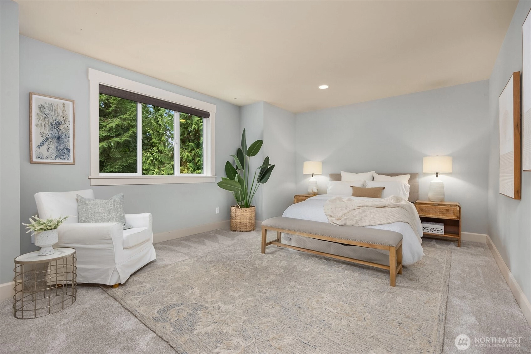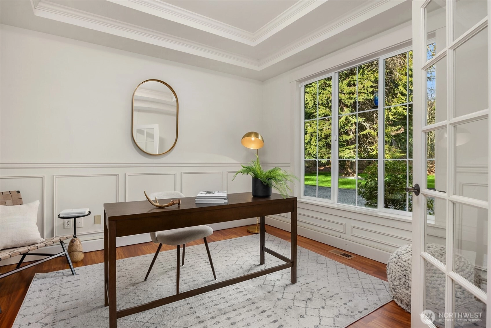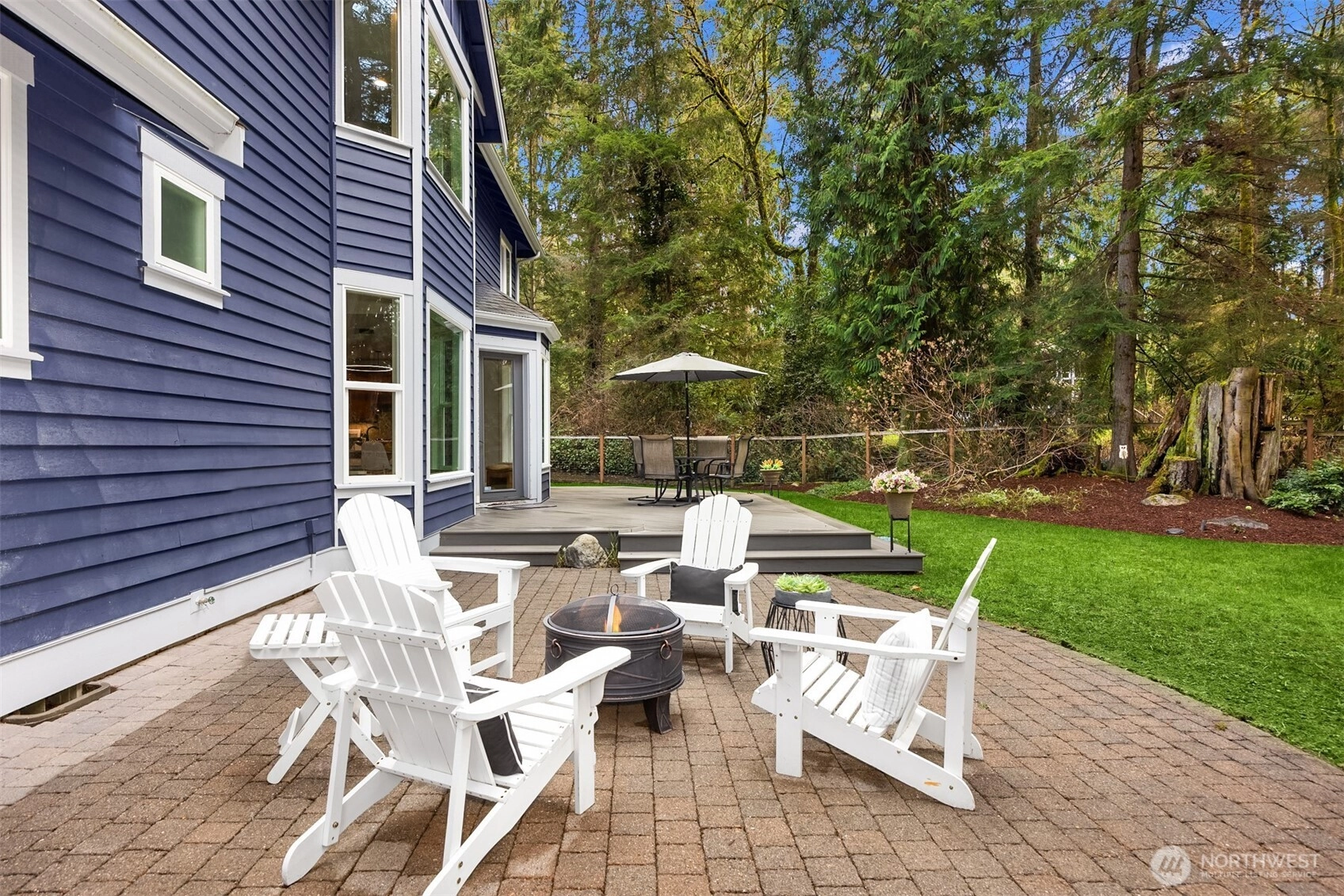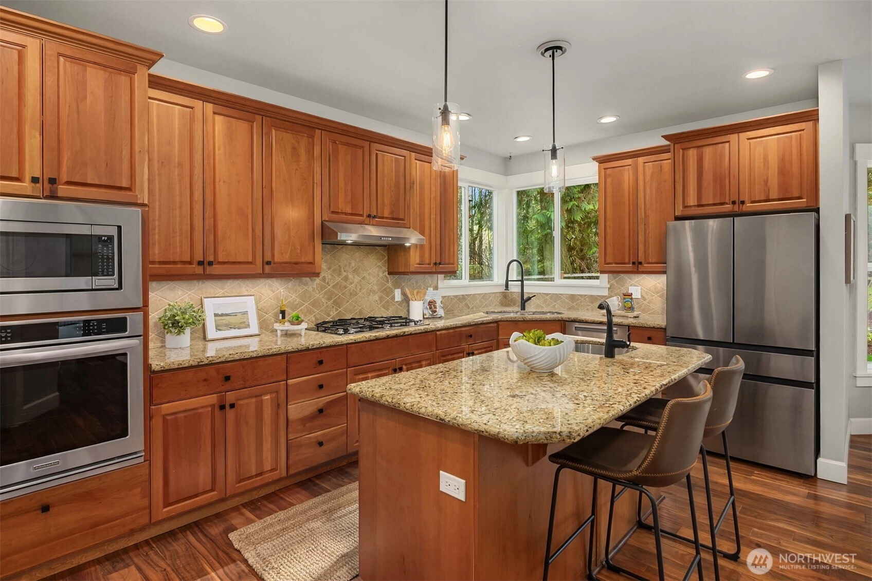 A true Northwest Craftsman retreat set on a private 1.44-acre setting just minutes from the Seattle ferry, shopping, and top Bainbridge Island schools. Stone and shingle exterior accents welcome you to a circular drive with abundant parking and a peaceful sense of arrival. Inside, an open and inviting floor plan features a spacious great room with built-ins and propane fireplace, formal dining room with coffered ceiling, living room with wainscoting and fireplace, and a private office with French doors — ideal for today’s work-from-home lifestyle. A grand two-story entry with slate flooring sets the tone, while the well-appointed kitchen offers a large center island, walk-in pantry, and butler’s pantry for seamless entertaining. Upstairs you’ll find four generously sized bedrooms plus an additional office or den, including a serene primary suite with its own propane fireplace and a spacious bath with jetted tub and separate shower. Outdoor living shines with a Trex deck and stone patio surrounded by expansive grounds offering privacy, play, and entertaining space. Additional highlights include an oversized three-car garage and dual water heaters for added comfort and functionality.