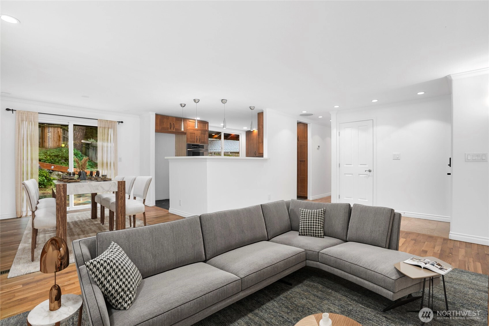 Park-like setting in core Bellevue on a rare, large lot. Near the Light Rail, shops and restaurants in every direction, and an easy commute to several of the Bellevue-Redmond businesses. Corner lot that sits on a cul-de-sac for ultimate privacy and quiet. Come home to an oasis-- New roof, freshly painted exterior, and interior, electrical updates, new water gas water heater (2025), hardwood floors were recently refinished, new carpet in large private guest suite/media room/flex room with gas fireplace. Kitchen opens up to dining and living rooms with sliding glass door to your private backyard. 2 car garage.