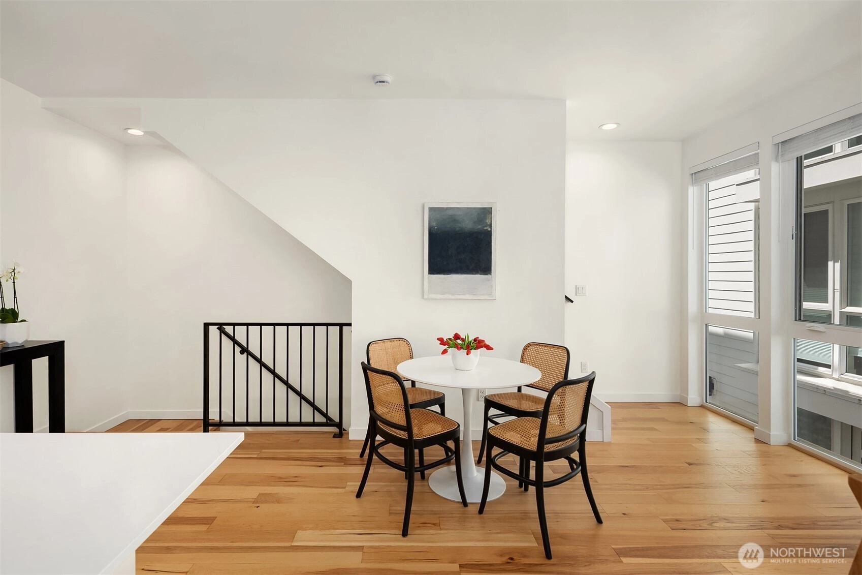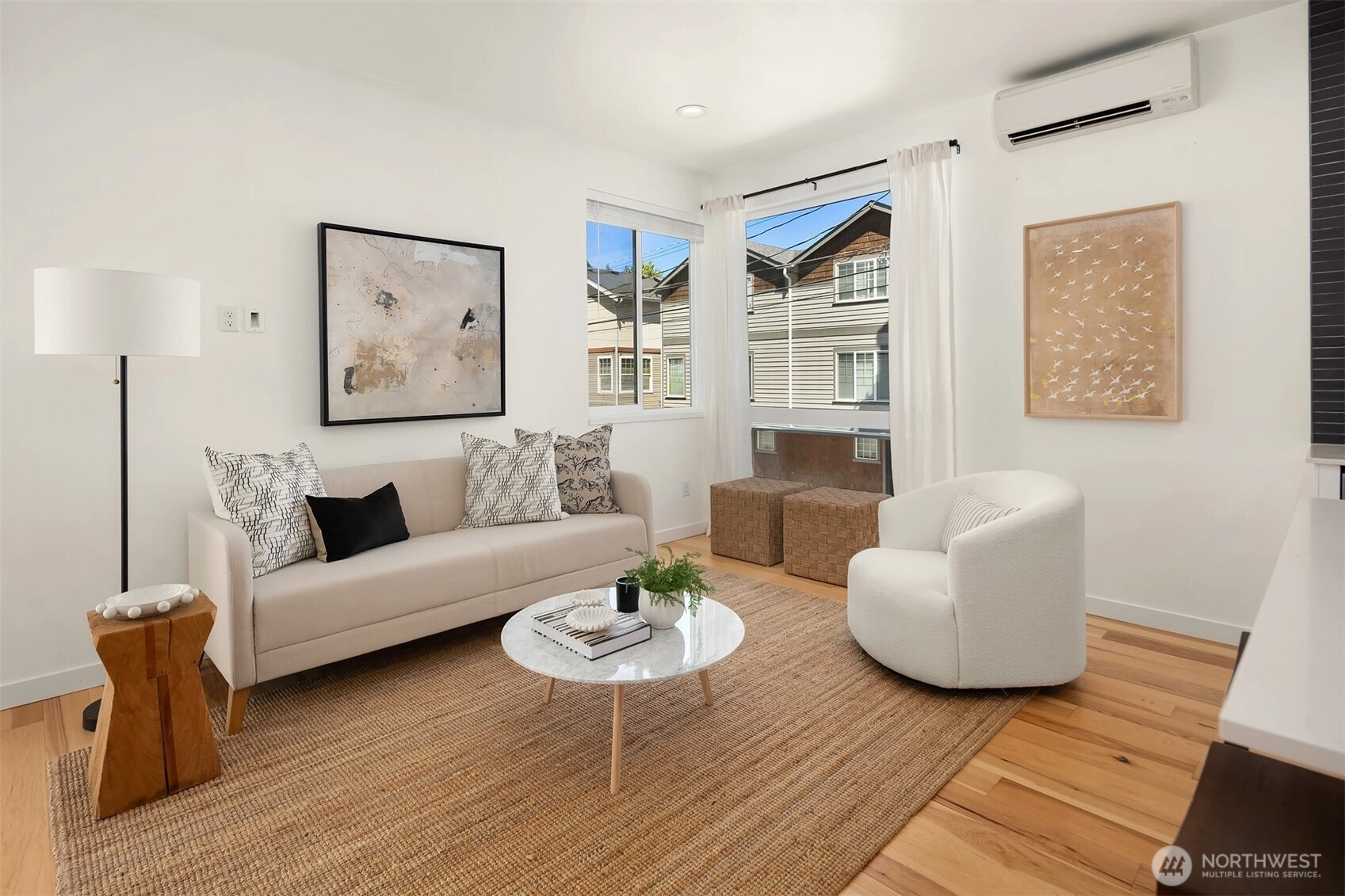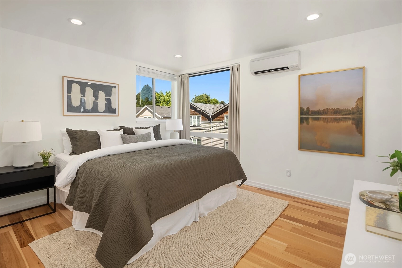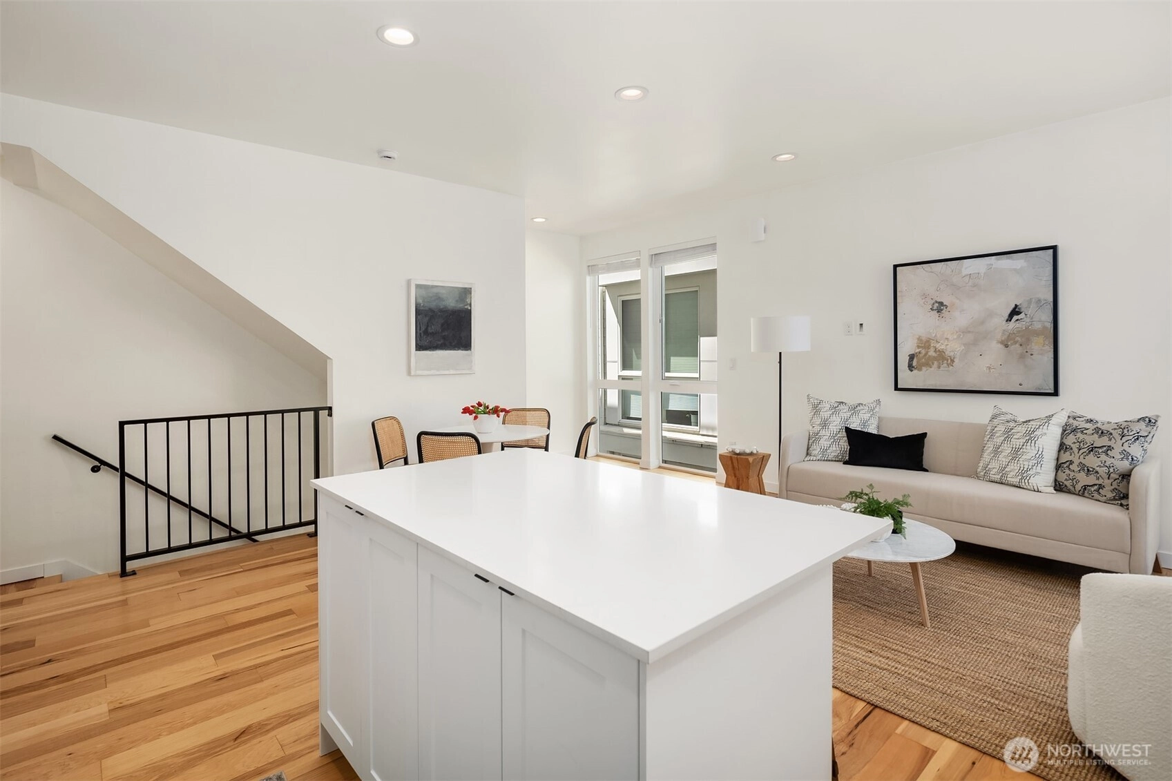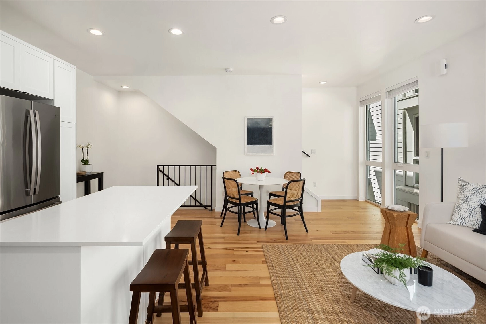Better than new, this lightly lived-in 2021 contemporary will duly impress. Inspired design, where form & function unite to create a symphony of beguiling light-filled spaces, gallery walls & innumerable details of style & sophistication. High ceilings, rich hickory hardwoods, a fully appointed kitchen, garden-level guest/office space, modern baths, top-floor blissful primary, and sun-dappled rooftop deck with territorial and mountain vistas. Washer + dryer, great storage, and a dedicated parking spot all in a superior location. Minutes to the Mogan and Alaska junctions, shops, parks, beaches, public transportation, and easy access to the West Seattle bridge make this a home of enviable livability.