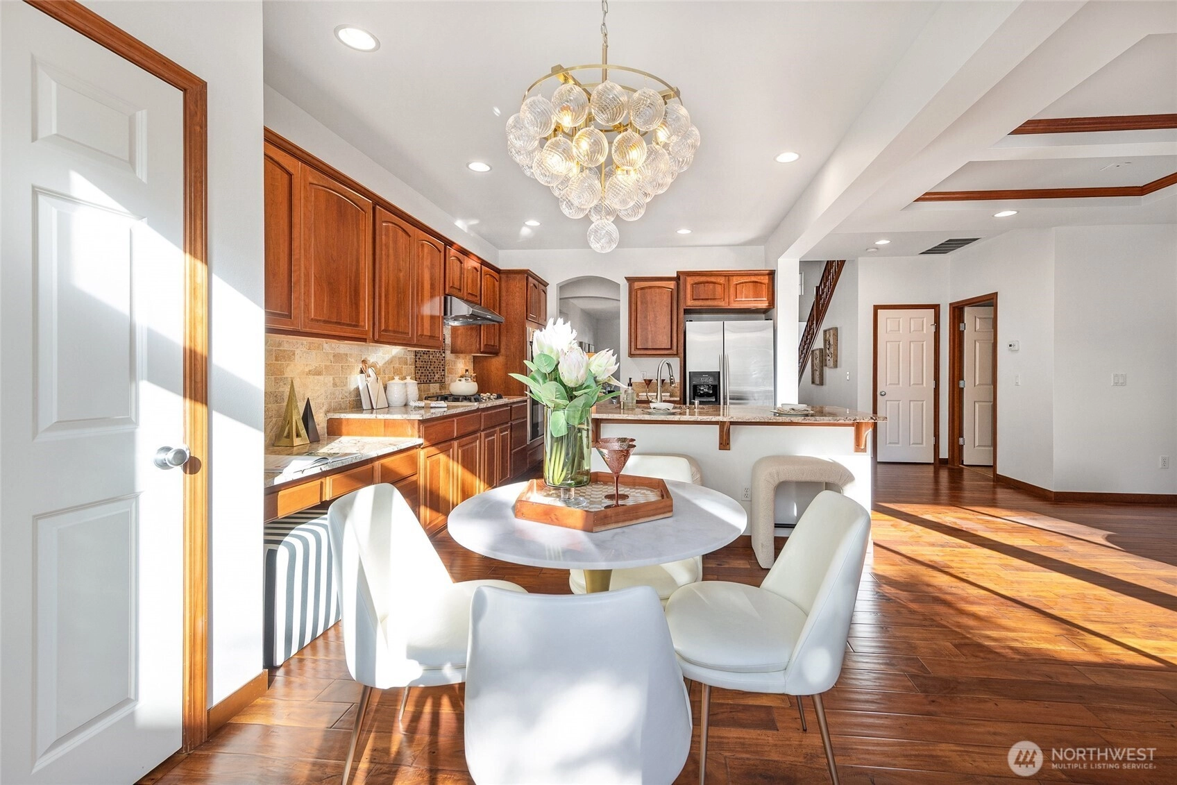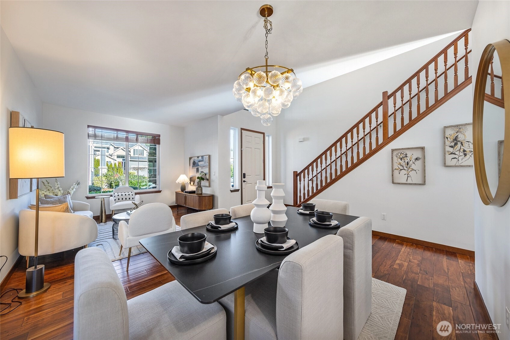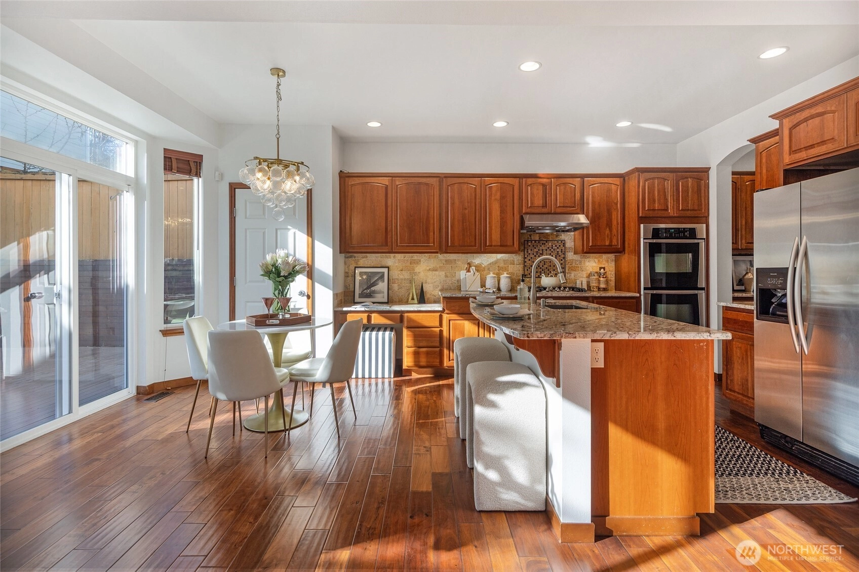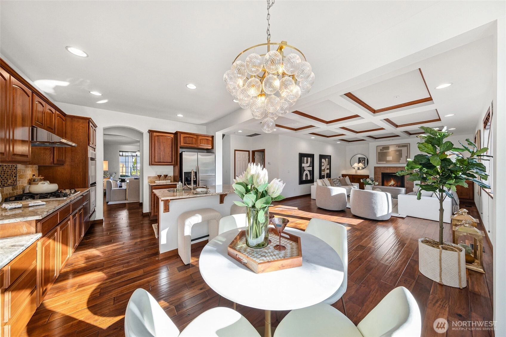 Located in the desirable Andalusia community of Woodinville, at Cul-de-Sac with Ample Parking, this well-designed Harbour Homes residence reflects an era known for thoughtful craftsmanship and enduring materials, offering lasting quality in a neighborhood with a private park, sport court. Built in 2007, the home has been refreshed with interior and exterior paint, an updated deck, and a low-maintenance turf backyard with garden beds. The open-concept main level includes two living areas and two dining spaces, providing flexibility for everyday living and entertaining. The kitchen features slab granite, stainless appliances with double oven, 5-burner gas cooktop, and island. The living room offers box-beam ceilings, built-ins, curated lighting, and a fireplace that adds warmth and architectural character. Upstairs, the south-facing primary suite enjoys abundant natural light and includes a customized walk-in closet and skylit 5-piece bath. A dedicated upstairs office overlooking the cul-de-sac creates an ideal remote-work setting. Additional features include central A/C, engineered hardwood floors, whole-house audio, and generous natural light throughout. Situated on a quiet cul-de-sac within walking distance to Woodinville High, which features a track and public tennis courts. Minutes to downtown Woodinville wineries, Totem Lake, and Hwy 9, 202, 522 & I-405. Served by the award-winning Northshore School District. A rare opportunity in prime Woodinville!