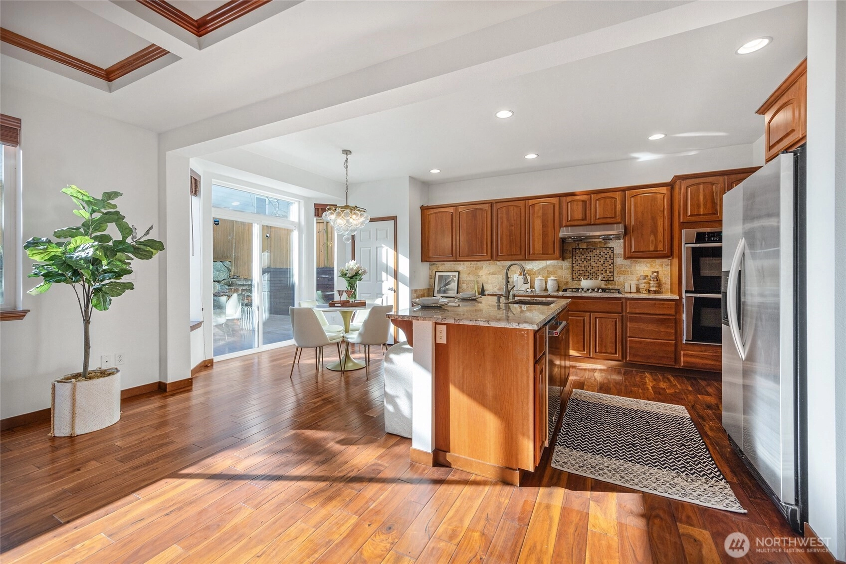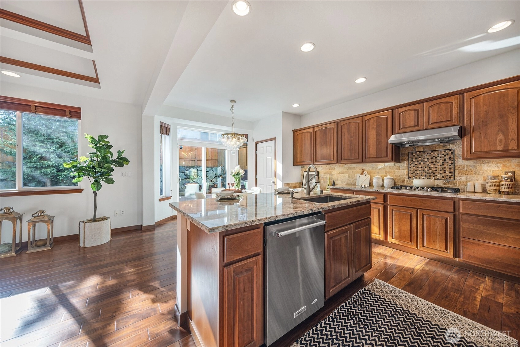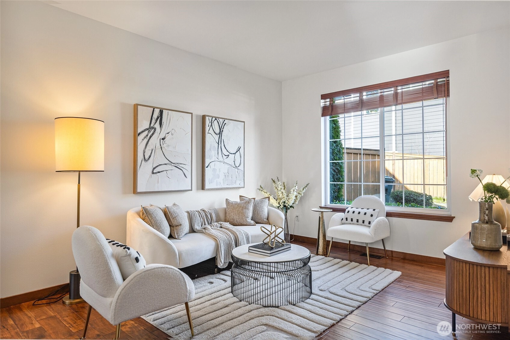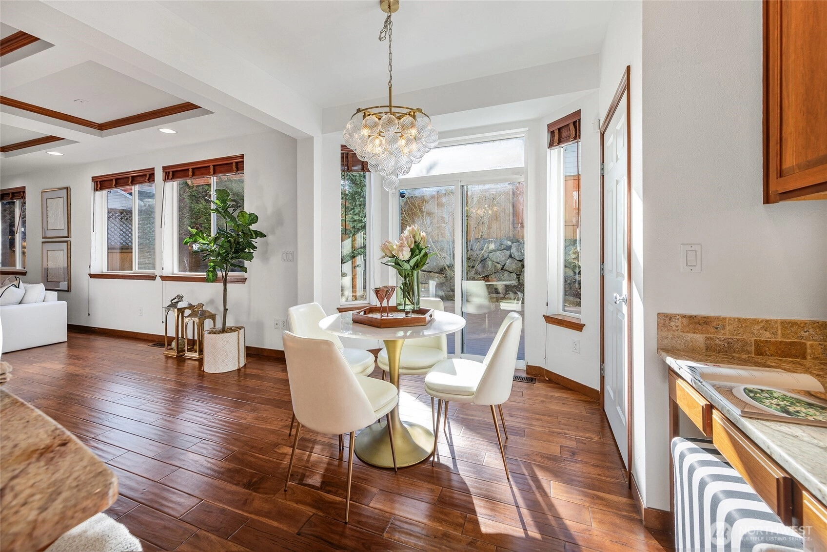 Located in the desirable Andalusia community of Woodinville, at Cul-de-Sac with Ample Parking, this well-designed Harbour Homes residence reflects an era known for thoughtful craftsmanship and enduring materials, offering lasting quality in a neighborhood with a private park, sport court. Built in 2007, the home has been refreshed with interior and exterior paint, an updated deck, and a low-maintenance turf backyard with garden beds. The open-concept main level includes two living areas and two dining spaces, providing flexibility for everyday living and entertaining. The kitchen features slab granite, stainless appliances with double oven, 5-burner gas cooktop, and island. The living room offers box-beam ceilings, built-ins, curated lighting, and a fireplace that adds warmth and architectural character. Upstairs, the south-facing primary suite enjoys abundant natural light and includes a customized walk-in closet and skylit 5-piece bath. A dedicated upstairs office overlooking the cul-de-sac creates an ideal remote-work setting. Additional features include central A/C, engineered hardwood floors, whole-house audio, and generous natural light throughout. Situated on a quiet cul-de-sac within walking distance to Woodinville High, which features a track and public tennis courts. Minutes to downtown Woodinville wineries, Totem Lake, and Hwy 9, 202, 522 & I-405. Served by the award-winning Northshore School District. A rare opportunity in prime Woodinville!
