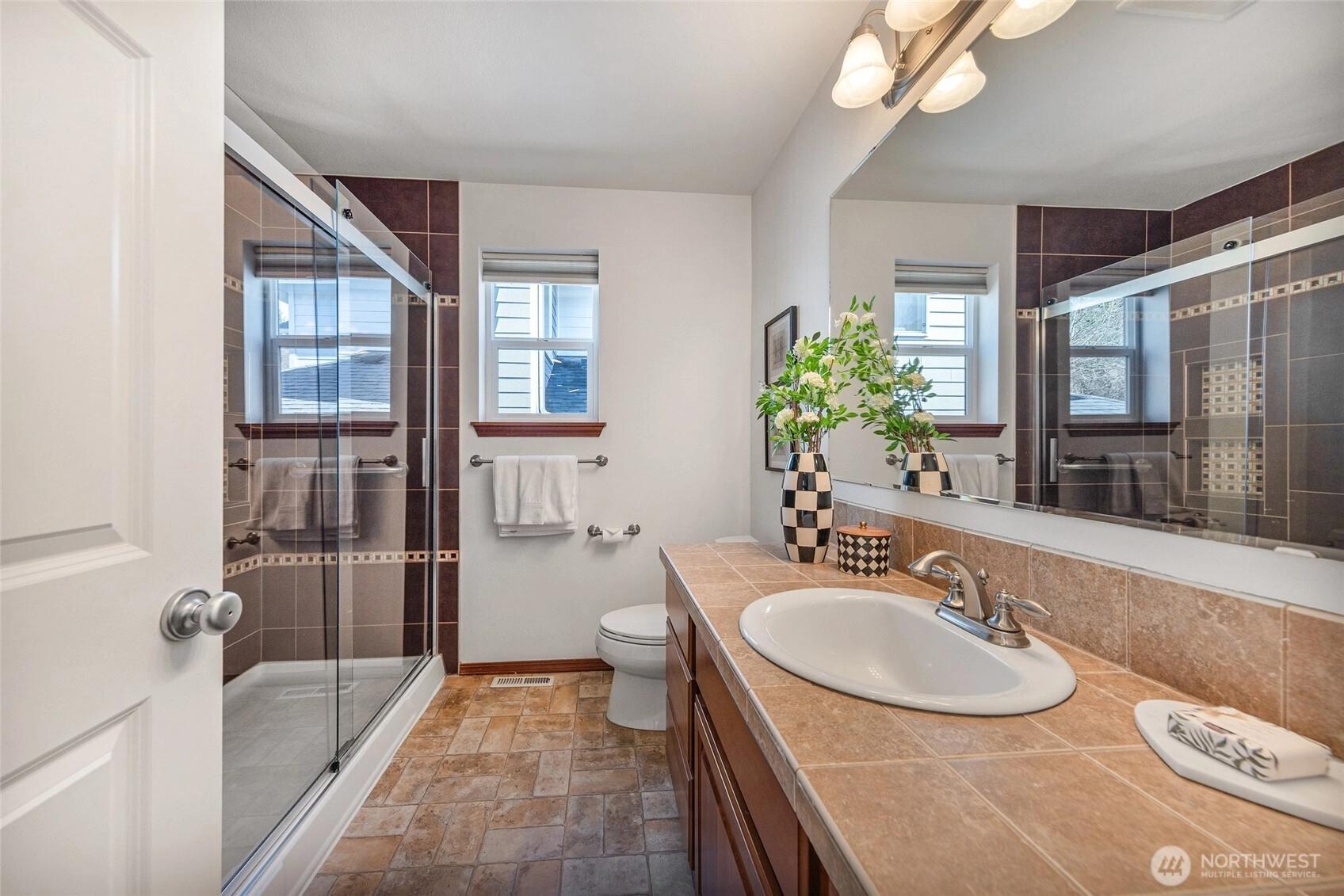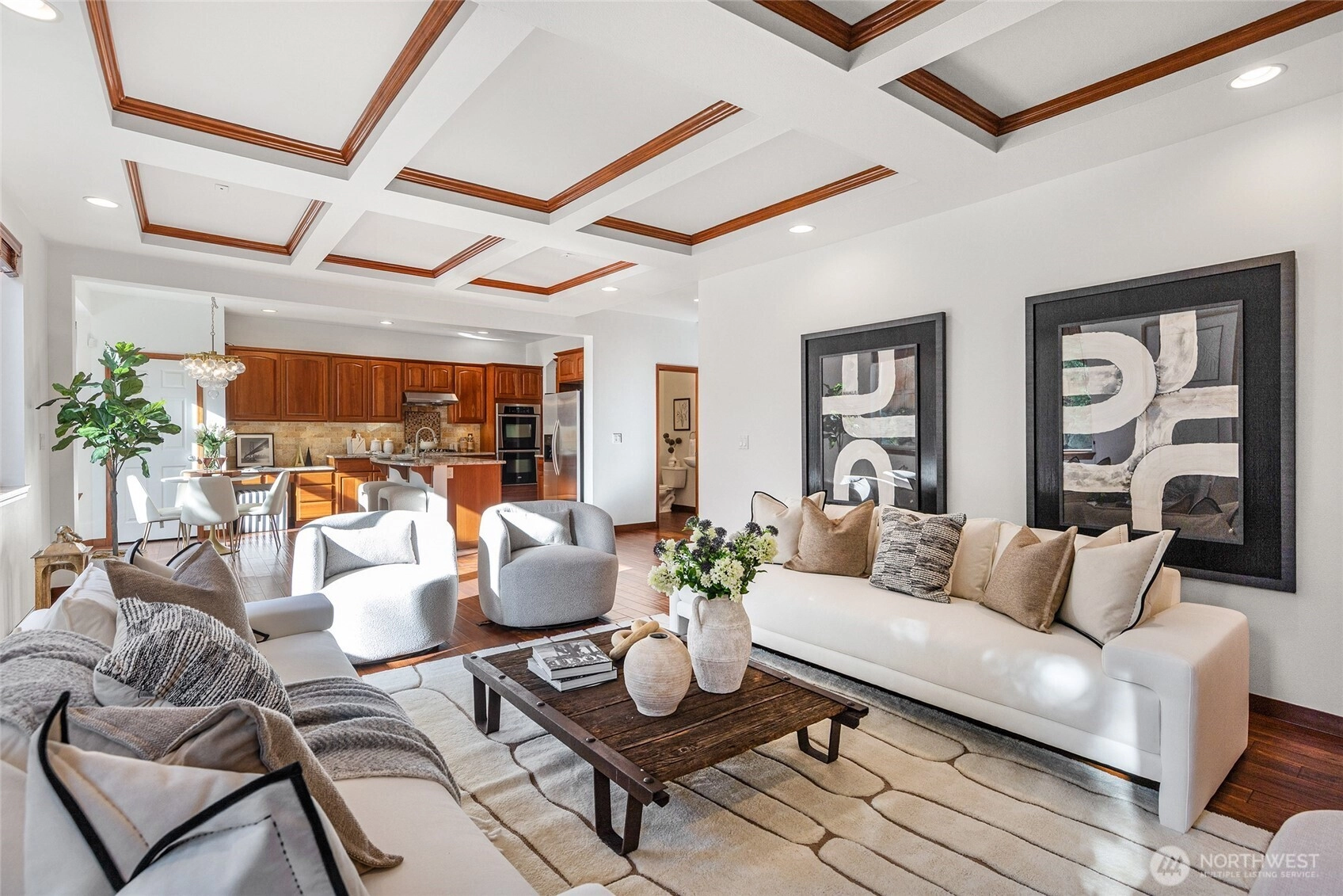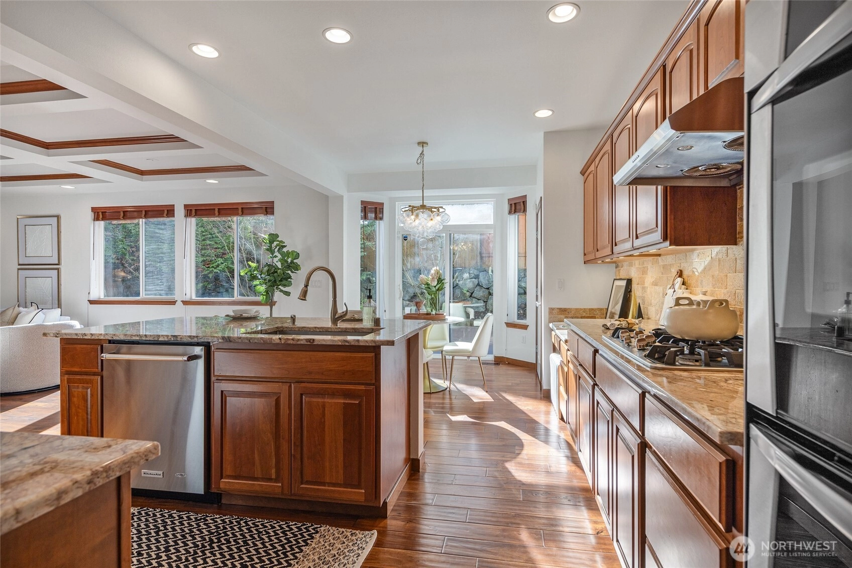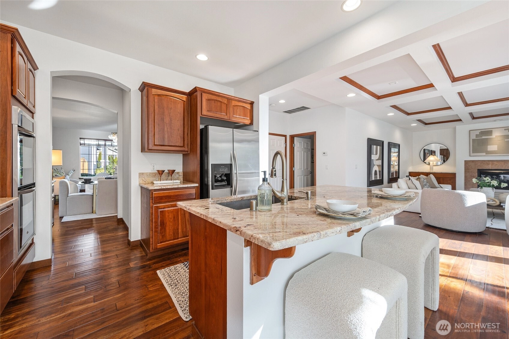 Located in the desirable Andalusia community of Woodinville, at Cul-de-Sac with Ample Parking, this well-designed Harbour Homes residence reflects an era known for thoughtful craftsmanship and enduring materials, offering lasting quality in a neighborhood with a private park, sport court. Built in 2007, the home has been refreshed with interior and exterior paint, an updated deck, and a low-maintenance turf backyard with garden beds. The open-concept main level includes two living areas and two dining spaces, providing flexibility for everyday living and entertaining. The kitchen features slab granite, stainless appliances with double oven, 5-burner gas cooktop, and island. The living room offers box-beam ceilings, built-ins, curated lighting, and a fireplace that adds warmth and architectural character. Upstairs, the south-facing primary suite enjoys abundant natural light and includes a customized walk-in closet and skylit 5-piece bath. A dedicated upstairs office overlooking the cul-de-sac creates an ideal remote-work setting. Additional features include central A/C, engineered hardwood floors, whole-house audio, and generous natural light throughout. Situated on a quiet cul-de-sac within walking distance to Woodinville High, which features a track and public tennis courts. Minutes to downtown Woodinville wineries, Totem Lake, and Hwy 9, 202, 522 & I-405. Served by the award-winning Northshore School District. A rare opportunity in prime Woodinville!