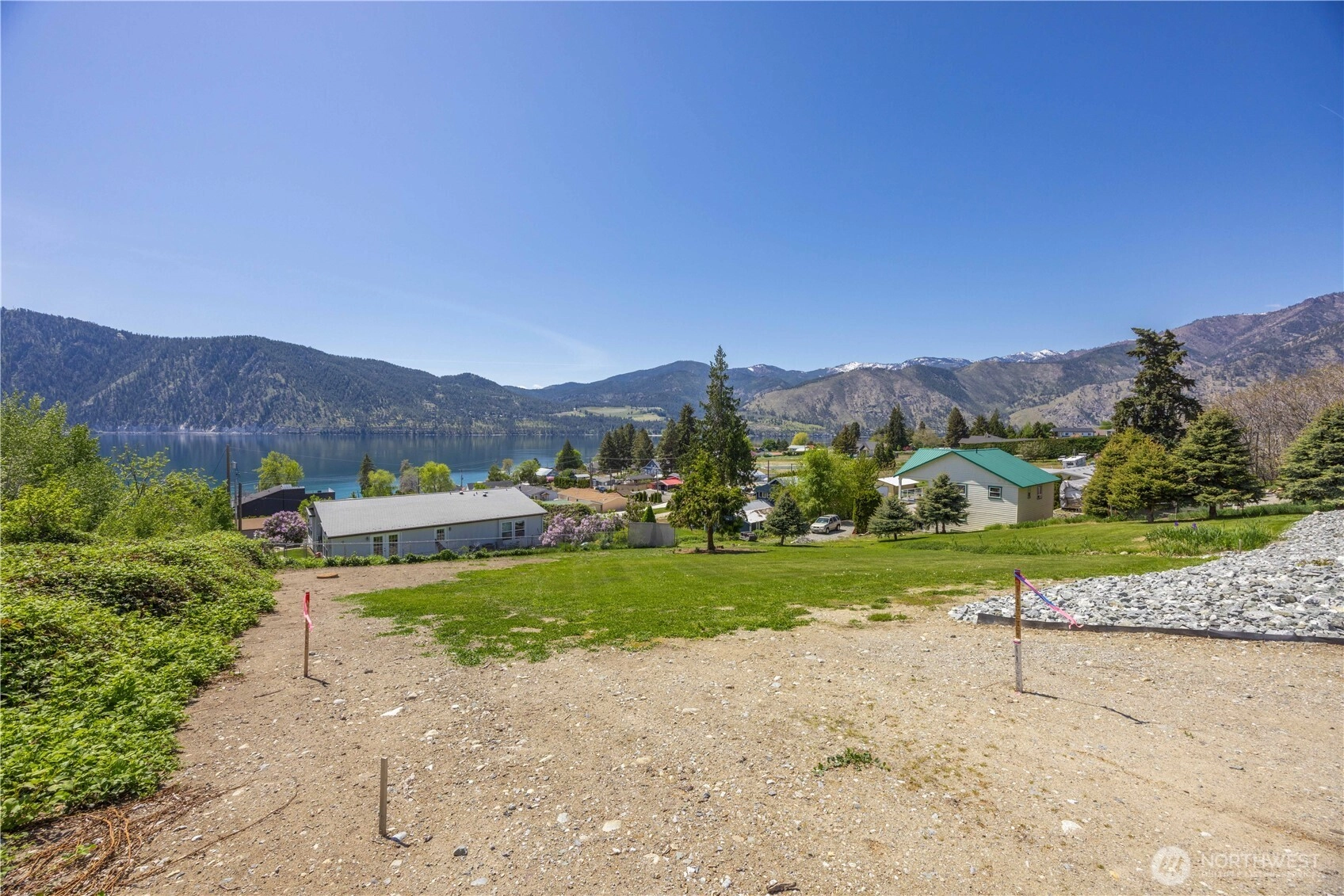 Secluded ½ acre ready to build lot within short walking distance to downtown Manson and the waterfront. Great view of Manson Bay, Lake Chelan, and the forested mountains. Front row to fireworks, Hydrofest, and other Manson Bay activities. Four blocks above The Old Swim Hole (Dog Park). This flag lot on a gentle slope has primary access from Lakeshore Drive above and right-of-way access from Quatis below. A perfect lot for a modern shed style daylight basement design. Lot faces just right of south for the best view and weather orientation. Close proximity to downtown Manson and walking distance, with easy access to shops, restaurants, bakeries, wineries, cideries, and public lake access!
