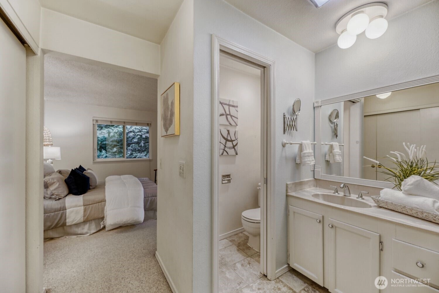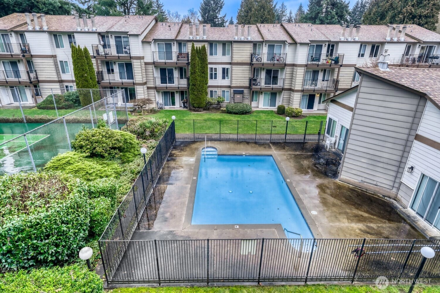 Move-in ready top-floor condo with abundant natural light and a view of the neighboring community’s pool. This home offers 2 bedrooms, 1.75 baths, vaulted ceilings, generous storage, and a private deck ideal for summer BBQs. The thoughtful layout provides excellent functionality with ample closet space and covered parking conveniently located right out front. Freshly painted and all appliances included.Community amenities include an indoor hot tub, pool, and sport court, ensuring year-round recreation and relaxation. Set within a quiet, well-kept community and just moments from The Village at Totem Lake’s shopping, dining, and everyday conveniences, this is a wonderful opportunity to own a stylish, turnkey home in Kirkland. Make this home yours today.