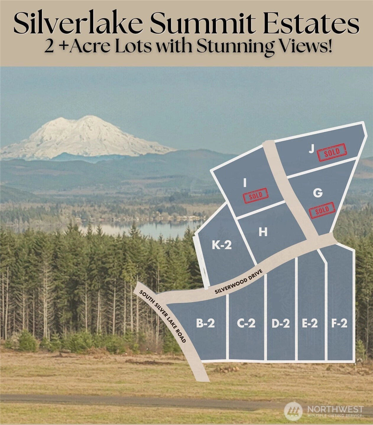 Tucked within a 10-lot rural community, this exceptional homesite in Silverlake Summit Estates captures expansive views of Mt. Rainier, Silver Lake, and the surrounding landscape. The building site has already been cleared and graded, ready for your construction to begin. Enjoy the privacy of a wooded setting while remaining just minutes from I-5 and Spirit Lake Highway for an easy commute. Paved road access leads to the property, which includes a completed survey with marked corners, approved septic soil test, Comcast and power at the street. Seller will drill a shared well during escrow with an accepted offer. Private well credit is an option in lieu of shared well. A rare opportunity to build in a peaceful setting with both infrastructure and views already in place. Additional lots available, and owner financing offered.