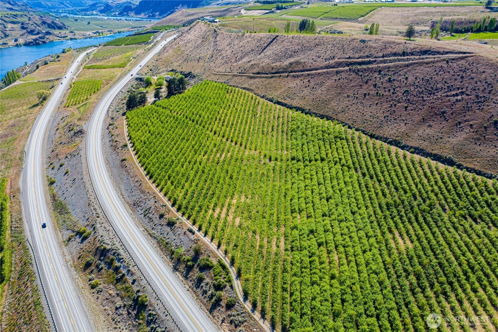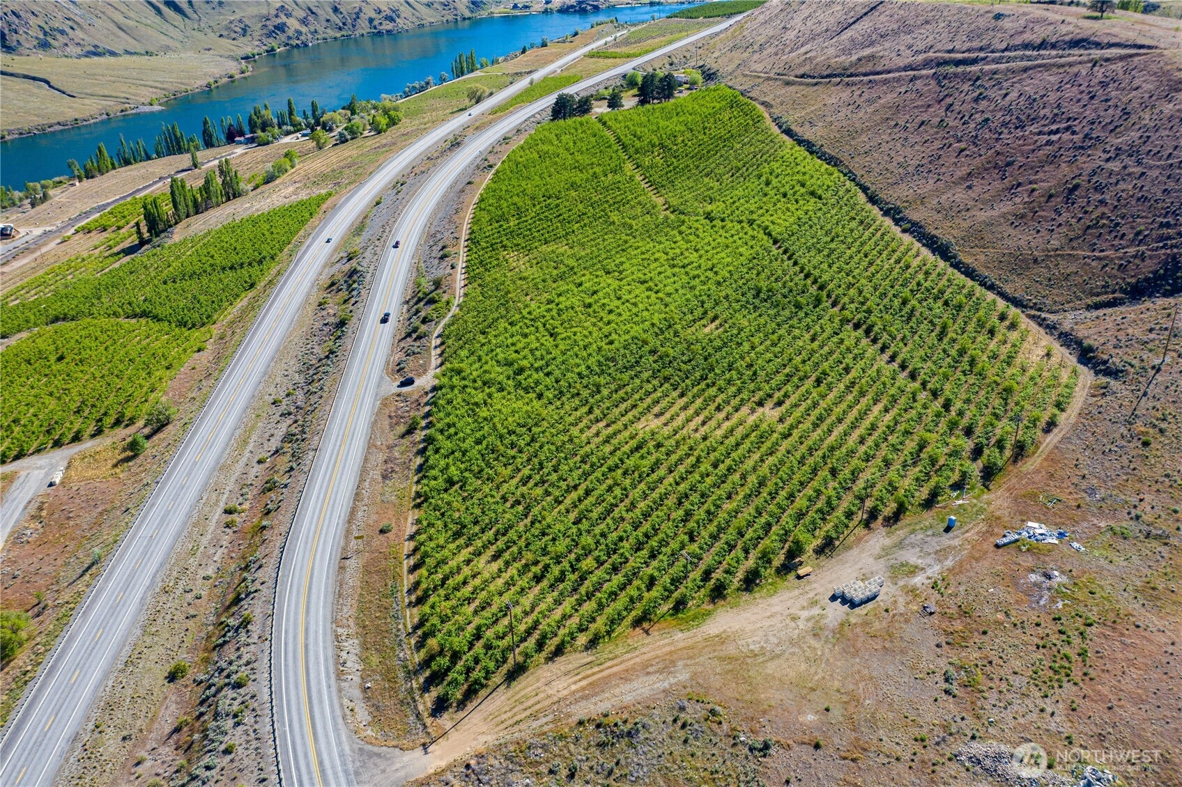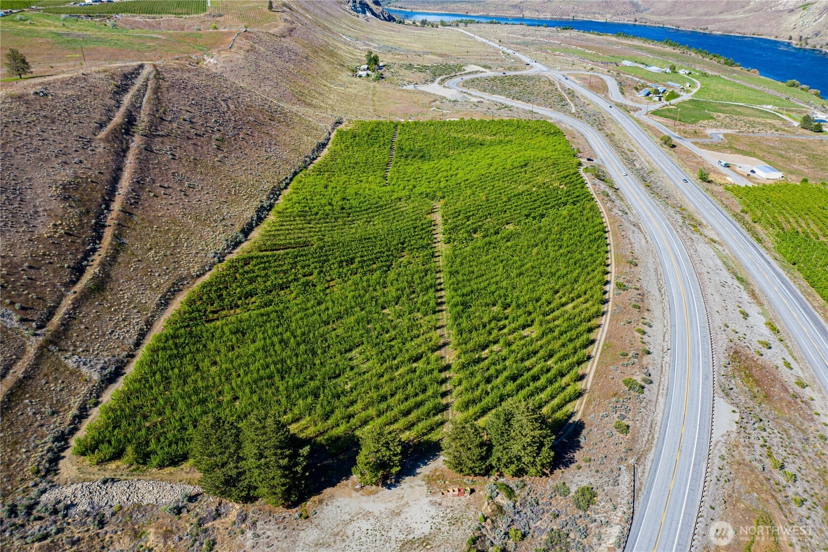 Prime Chelan/Columbia River development opportunity – 19.85 acres with breathtaking views of the Columbia River and just five miles from downtown Chelan. The gently sloping terrain offers ideal conditions for development and presents multiple potential building sites. Property is also perfect for a private estate. Zoned Rural Residential/Resource 2.5 (RR2.5); this zoning district allows for low-density development, primarily residential use, supporting agricultural, small-scale businesses, and cottage industries. Currently an active apple orchard consisting of Sugar Bees (2 acres), Ambrosia (4 acres), Gala Sport (2 acres) and Royal Red Honeycrisp (8 acres). Property has irrigation water rights and high-producing pump from the Columbia River. Easy ingress/egress access of US Hwy 97 and Chelan County PUD electric located at the corner of the property. Seller Financing Available.