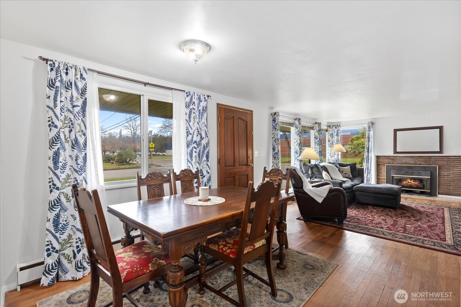 Charming Sultan rambler on a prime 1/3 acre corner lot! Welcome into the cozy living space anchored by a brick surround gas fireplace, hardwood floors, large picture windows and adjoining dining space. Kitchen looks out to the backyard, with plentiful cabinet space and a breakfast nook. 3 bedrooms and an updated full bath down the hall, all with cedar lined closets! Period details and charm throughout! Mudroom off of the back of the house with built in storage cabinets and lots of room for outerwear. Covered breezeway to 2 car garage with a workbench and carport. Huge backyard includes a storage shed, mature trees and lots of room to play or plant a garden-- the home sits on 4 city lots! Lots of room for hobbies, animals, gardening, tinkering projects. Durable metal roof, all appliances stay, security cameras stay. Walking distance to downtown and schools! Don't miss the chance to make this delightful 1953 gem yours!