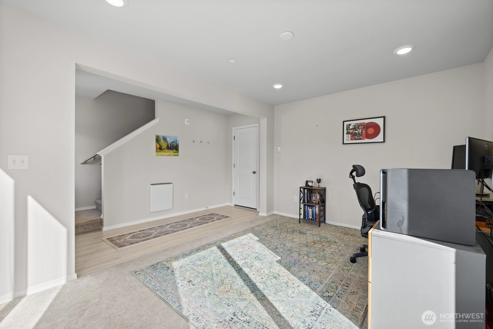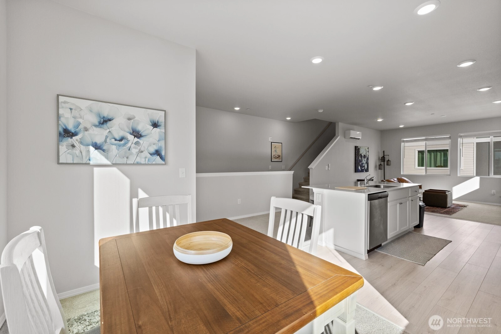 Beautifully designed tri-level townhome in the highly desirable neighborhood of Hawks Prairie, featuring 3 bedrooms 2 1/2 baths and a main level flex space with a 2-car garage. The versatile flex space provides endless possibilities—home office, gym, or bonus living area. Ideally located near shopping, dining, major freeway access, and JBLM This move-in-ready home features an open-concept layout, A/C, full appliance package, and modern finishes ideal for both everyday living and entertaining.