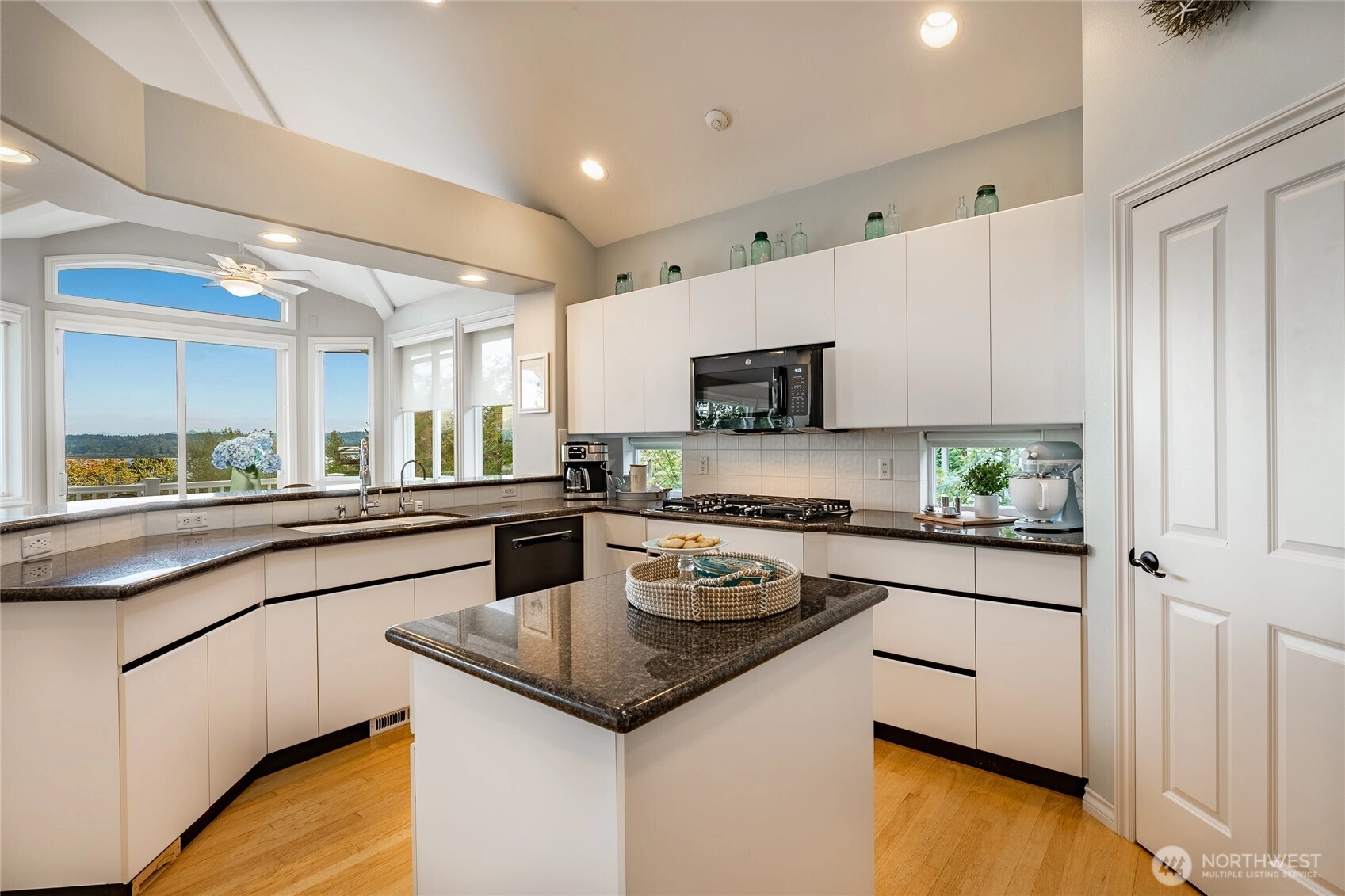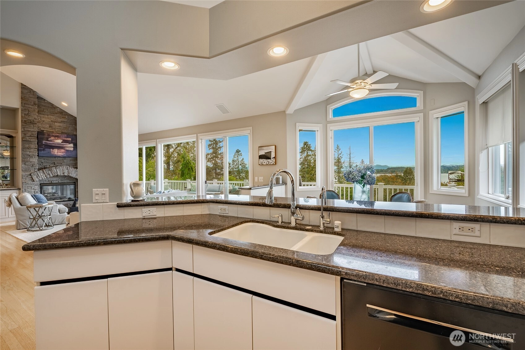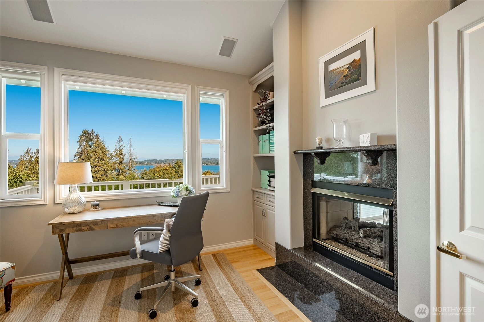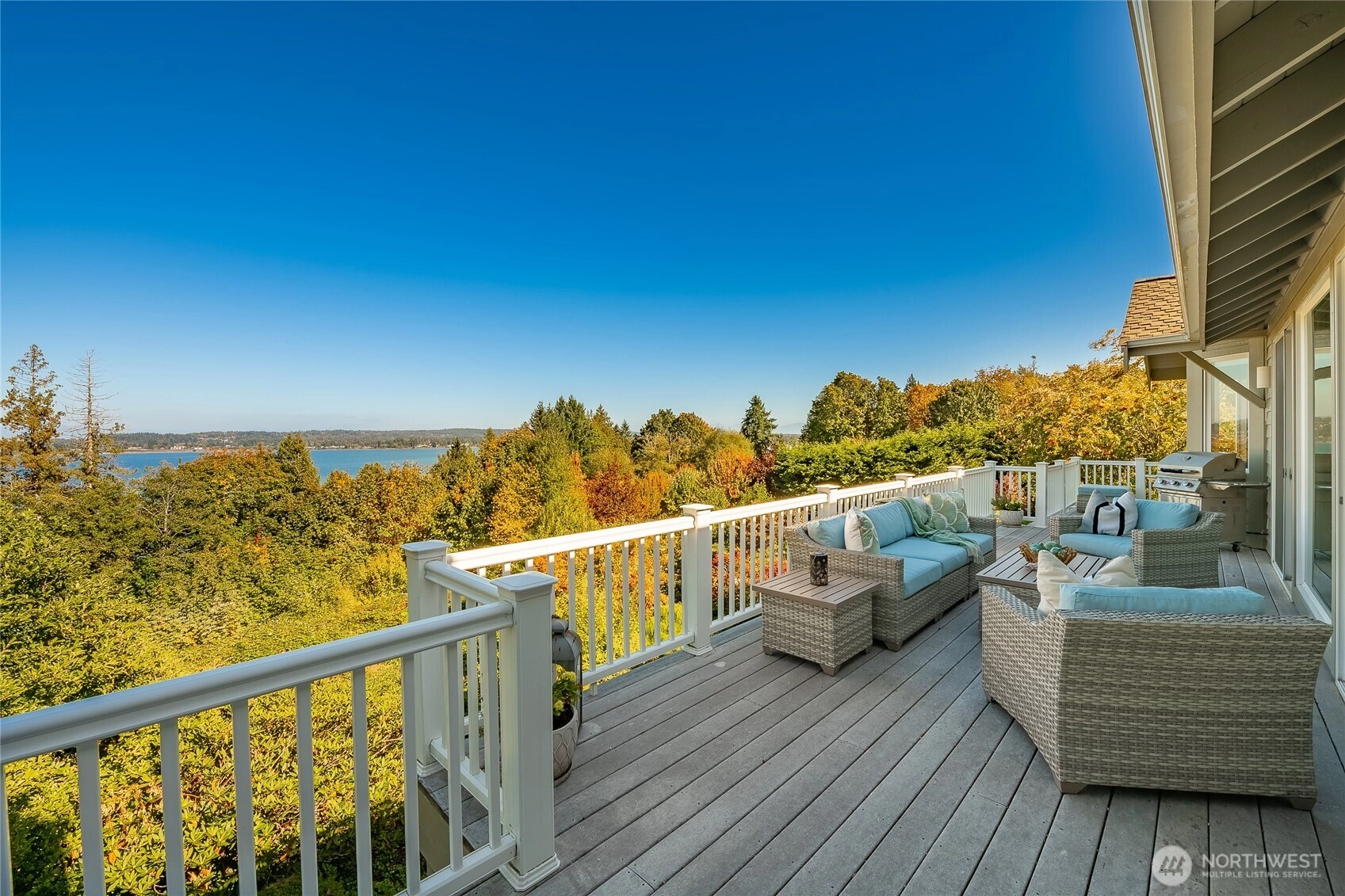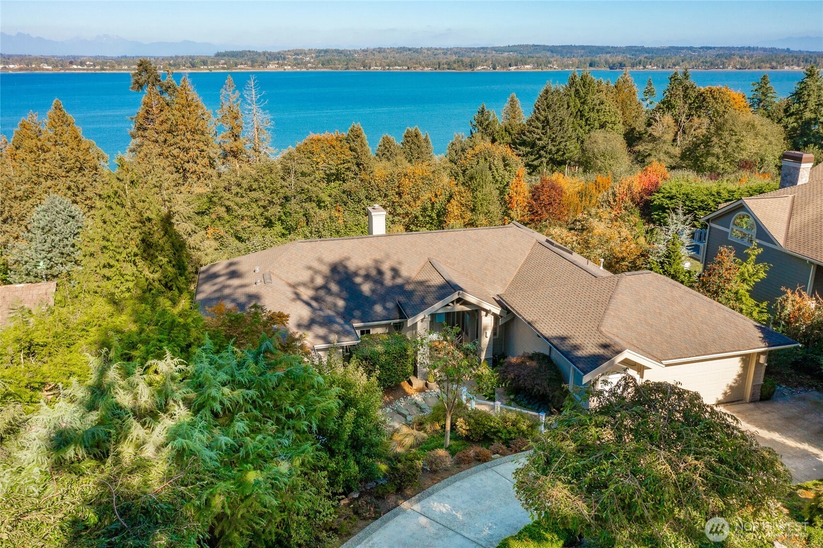 Perched above Drayton Harbor in the coveted Semiahmoo Resort Community, a premier master-planned Arnold Palmer golf course neighborhood, this stunning custom home captures sweeping city, water, & snow-capped mountain views while offering the rare combination of gated security & unmatched seclusion. One of the best features of this home is its ultra-privacy within the St. Andrew’s Green gated neighborhood & unparalleled view. Enjoy miles of scenic walking trails, tennis & pickleball courts, gym, & a private marina accommodating boats up to 60 feet, all just moments from your door. Designed for effortless main-floor living, the home features a luxurious primary suite with spa-inspired bath, sauna, & expansive dual organized closets, along with a dedicated office warmed by its own fireplace & laundry room with sink, drying area & large dog bath. The vaulted living room showcases breathtaking views & a dramatic stone fireplace, seamlessly connecting to a spacious dining room, morning nook, & chef’s kitchen complete with walk-in pantry, truly ideal for entertaining. The refinished lower level offers exceptional flexibility with two fully appointed guest suites with private baths, a generous bonus room with second kitchen, abundant storage, & an additional office, perfect for multi-generational living, guests, or hobbies. Complete this move-in ready retreat, thoughtfully designed to impress, yet truly relaxing at every turn.