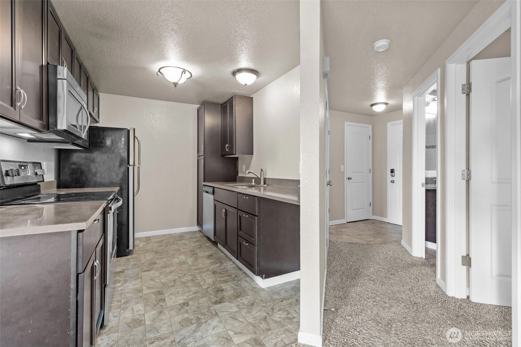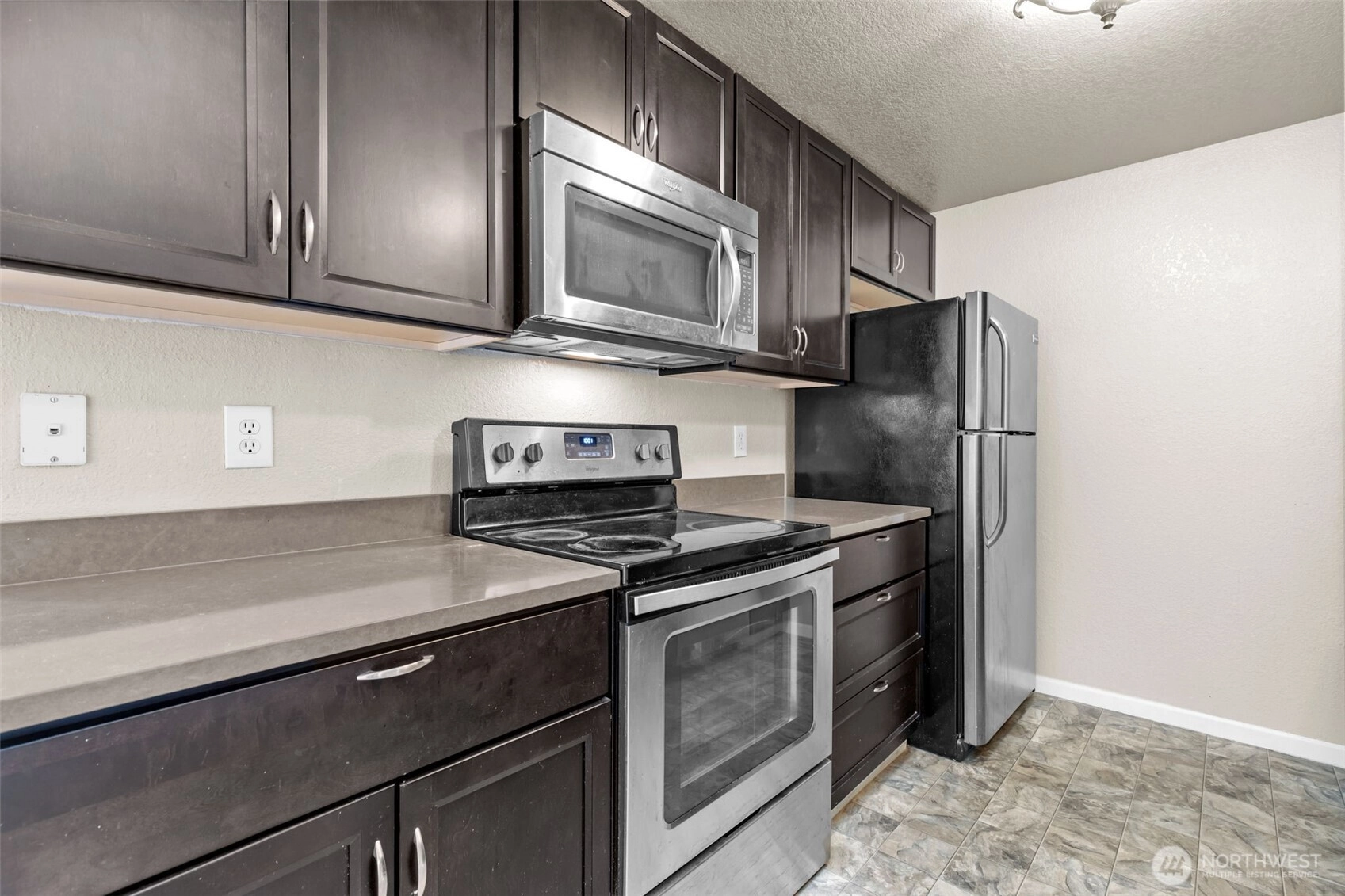 Welcome home to this updated and affordable 2 bed 2 bath spacious condo with in-unit washer & dryer. Kitchen and bathrooms have quartz counters throughout and newer cabinets. Quiet, gated community and conveniently located close to highways, public transportation, parks, Paine Field, Boeing and everything you need nearby! Located within walking distance to an elementary, middle and high schools in the Mukilteo School District. Needs nothing, new water tank a couple years ago and move-in ready! Clean and inviting space feels much larger with the large bedrooms with several closets + plenty of extra storage. Desirable open layout and tons of natural light w/private balcony. Ample guest parking in small community, don't miss this opportunity!