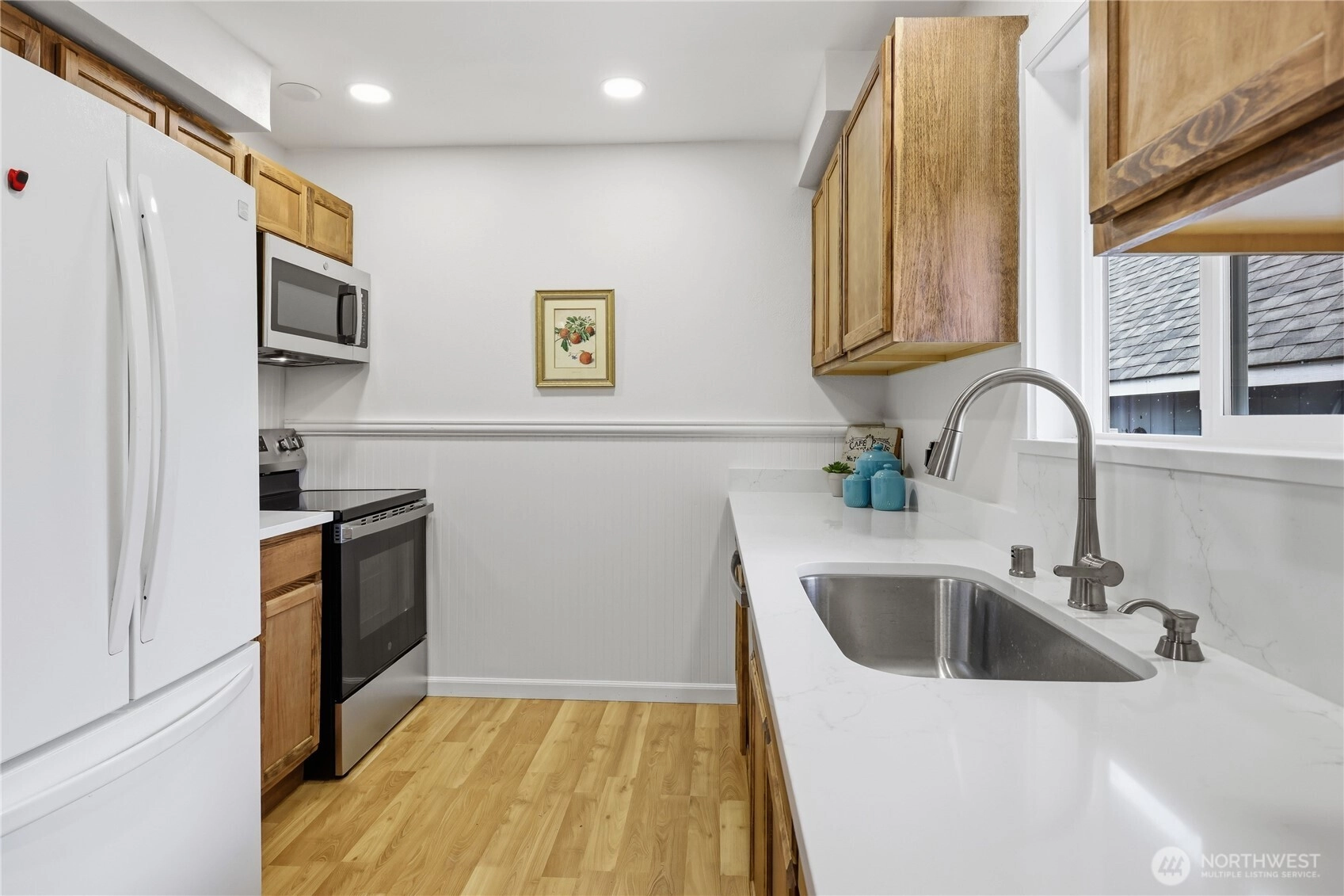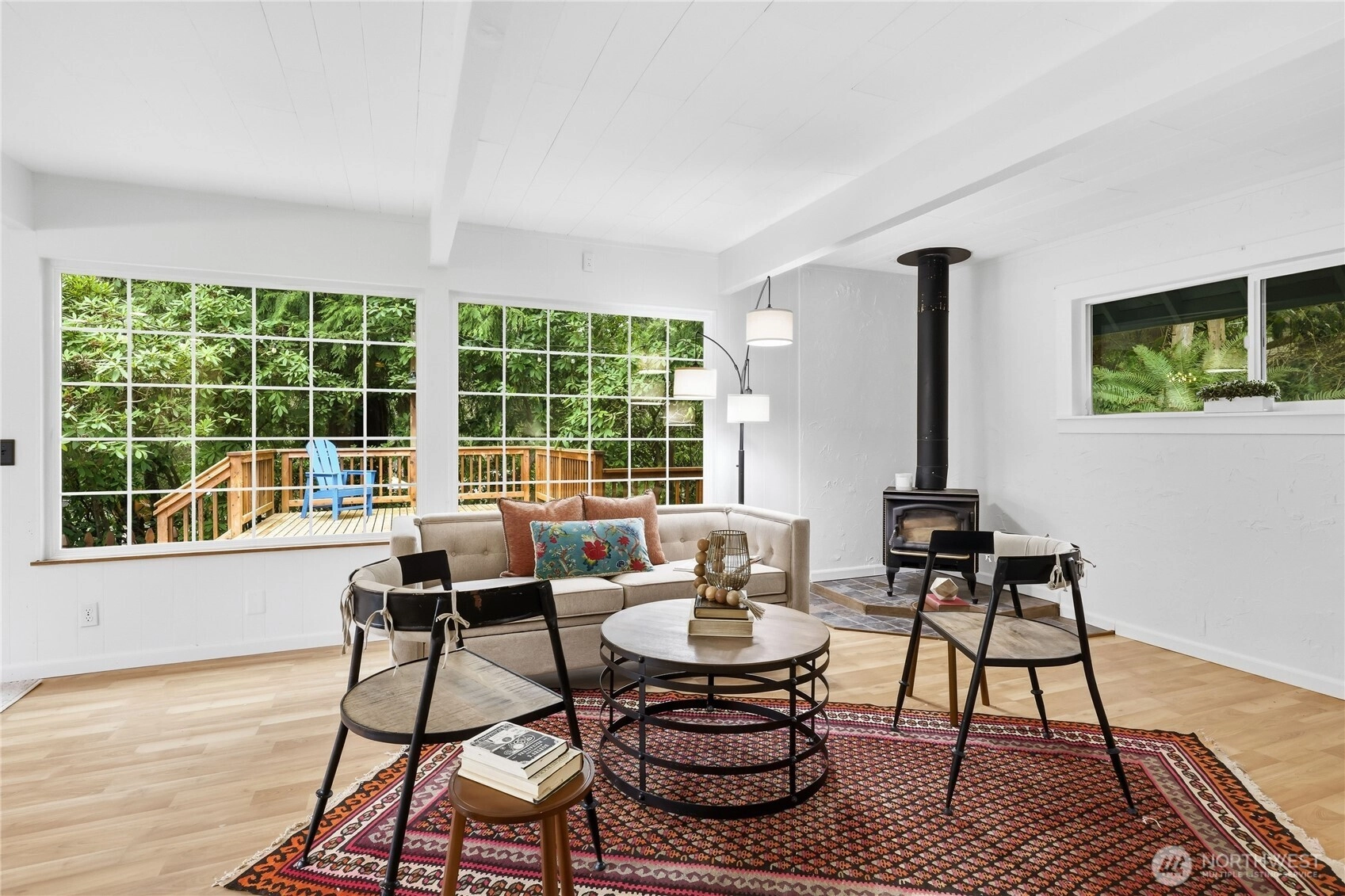 You won’t want to miss your opportunity to own one of the original homes built in the Gamblewood Community! Backing to a lush greenbelt that borders Gamble Bay, this property offers exceptional privacy and a true Pacific Northwest setting, surrounded by mature trees and natural beauty. Enjoy expansive decks throughout the property, perfect for soaking up bits of sunshine, entertaining guests, or birdwatching in your own backyard wonderland. Just a short stroll to the community waterfront park, you’ll love easy access to kayaking or boating, hosting gatherings, open green space, and a playground. Five minute drive to Port Gamble trails. Recent updates provide both beauty and peace of mind, including fresh interior and exterior paint, brand-new carpet, and a new roof installed in December 2025 by Hood Canal Roofing. Two bedrooms but sleeps like 3 with a huge additional room upstairs, can be used for office, guest room, or home gym. The fully remodeled kitchen features new cabinetry, countertops, fixtures, stove, microwave, and dishwasher. Ductless system was updated may of last year. A detached garage offers fantastic flexibility, ideal for parking, extra storage, workshop use, or the perfect shop space for hobbies and projects. Incredibly friendly neighbors add to the home’s welcoming community feel. If you’re looking for a well loved property full of character and charm, with thoughtful updates already completed, this is the one.