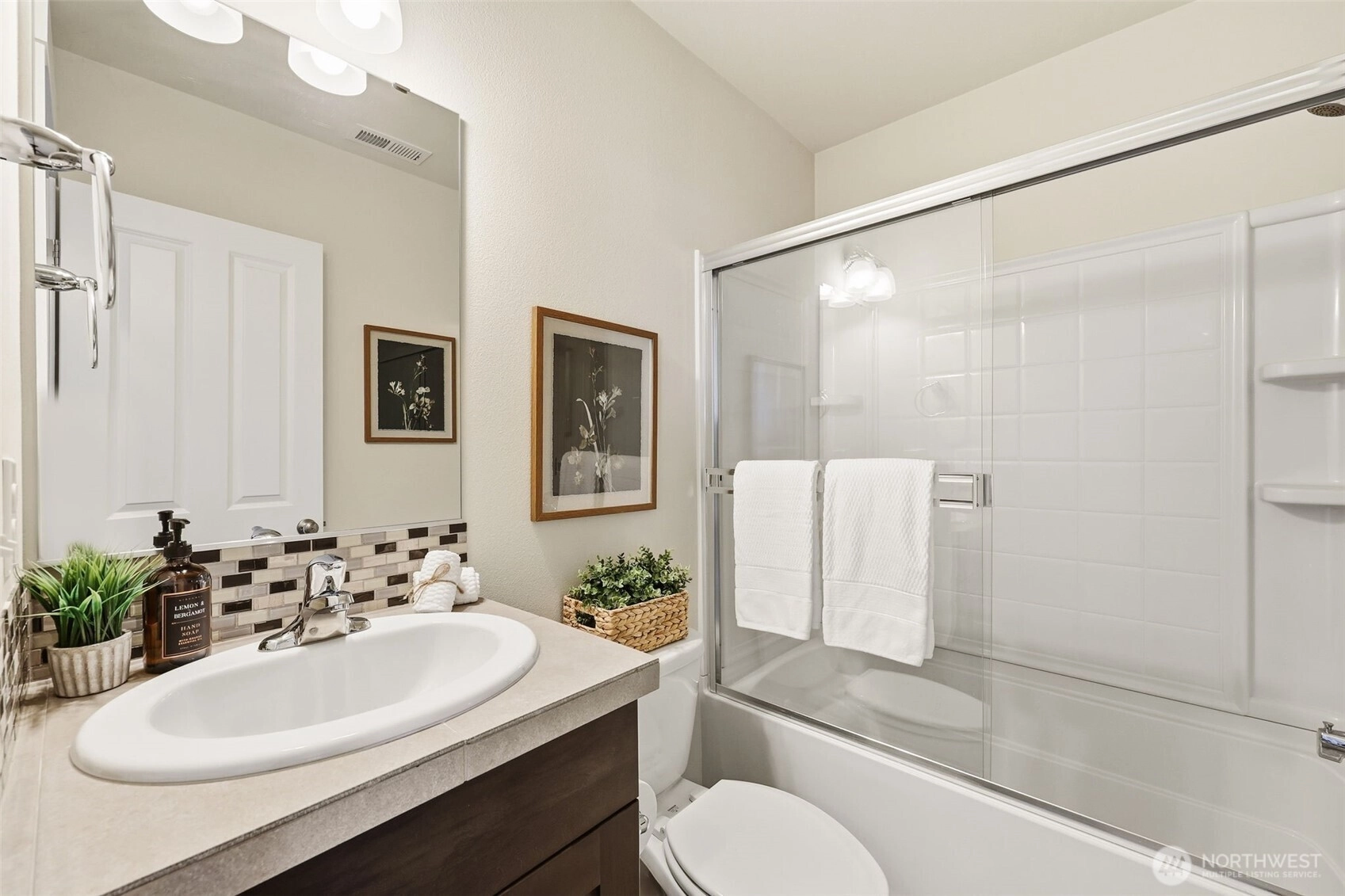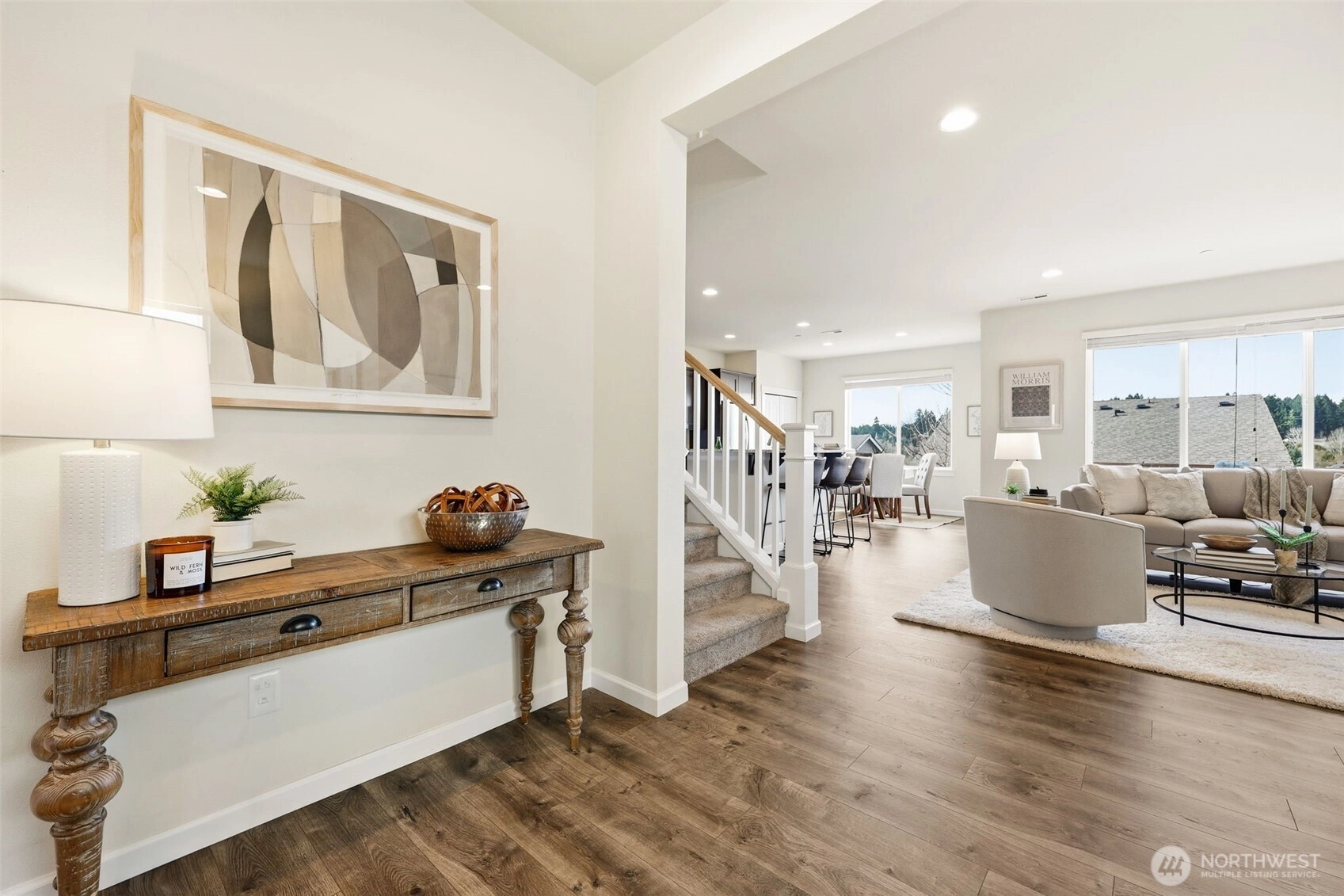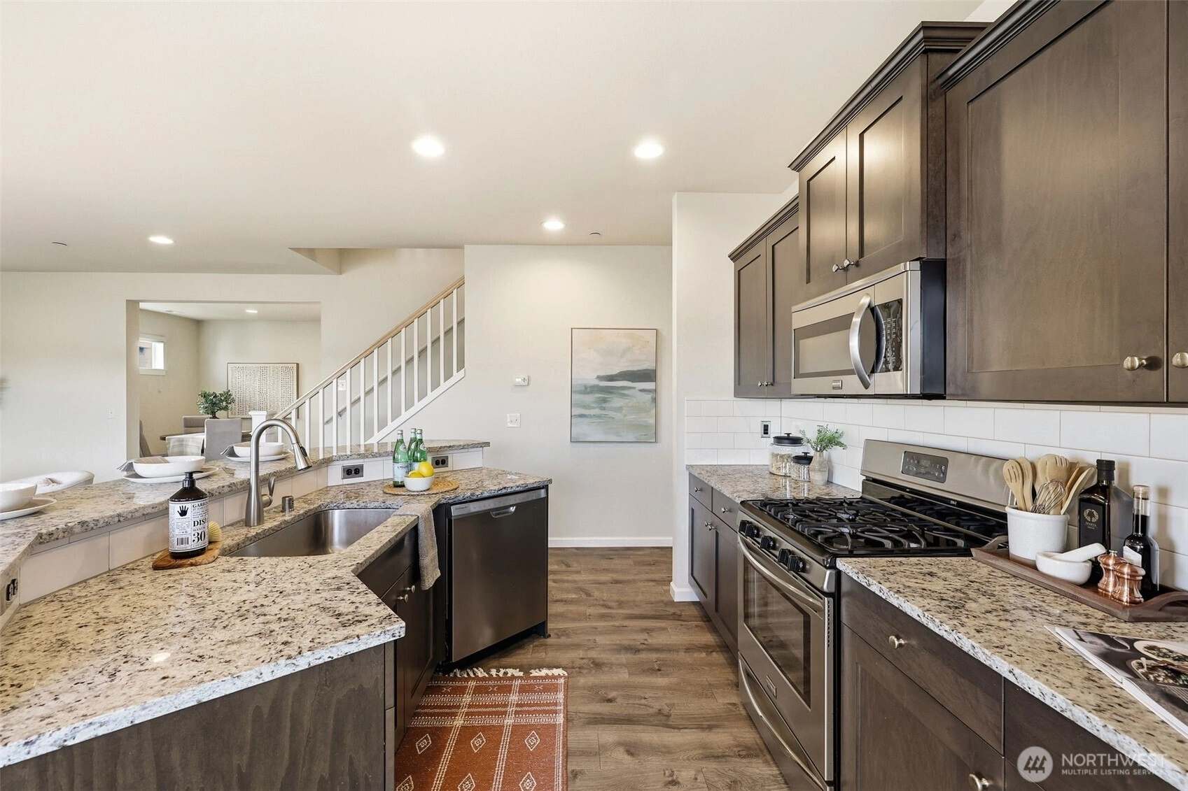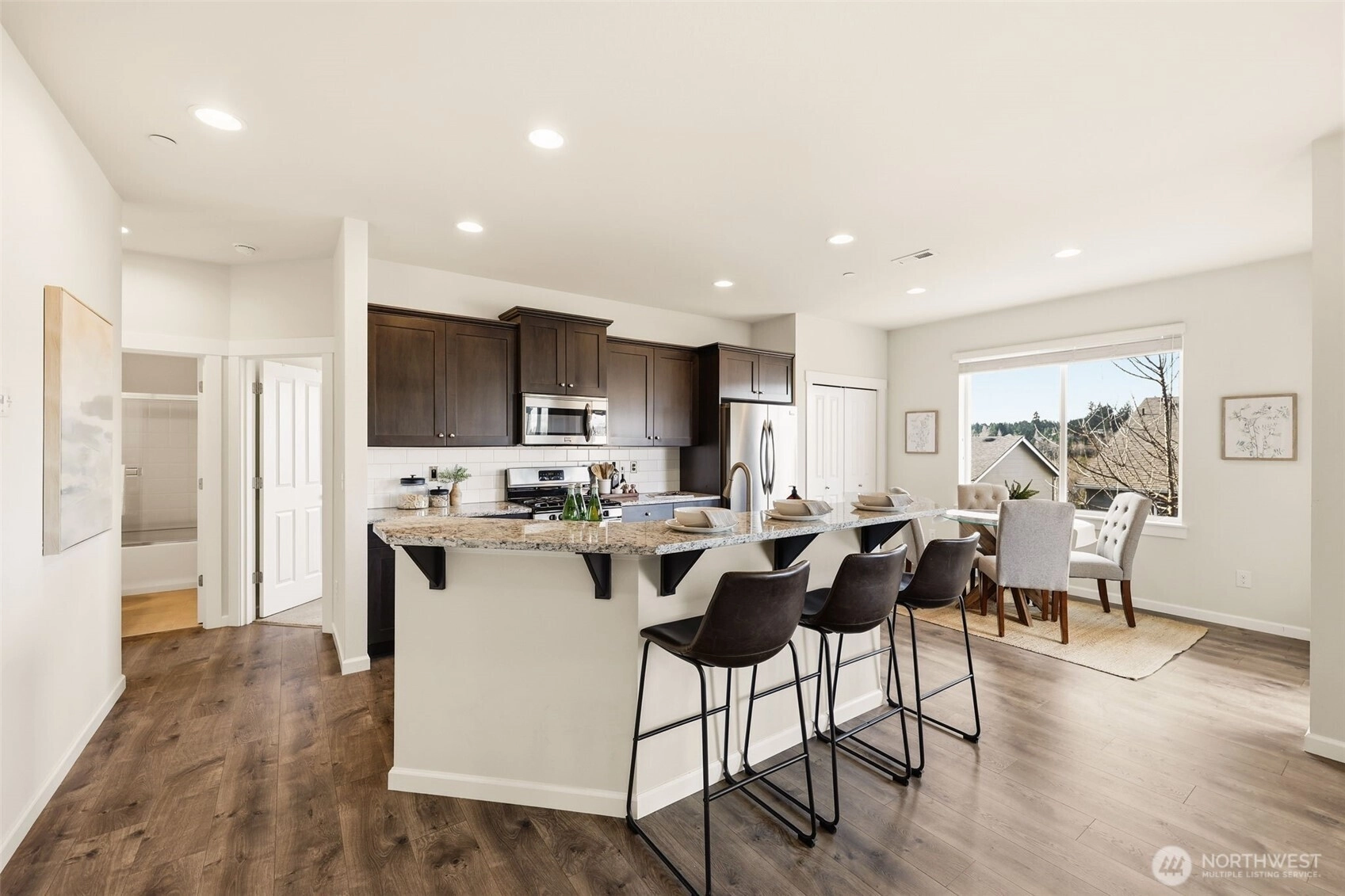 Welcome to this beautifully maintained home in the heart of University Place. The main level offers a smart, flexible layout with a dedicated office plus a private bedroom and full bath—an ideal setup for guests or multi-generational living. Natural light fills the open kitchen and living area, where seamless indoor-outdoor flow to the deck creates an inviting space for everyday living and entertaining.Upstairs, the spacious primary suite features a 5-piece bath and walk-in closet, complemented by two additional bedrooms and a generous bonus room perfect for work, play, or relaxation. Enjoy cool summers with AC and cozy evenings by the gas fireplace as the seasons change.Set on a quiet street just steps from two neighborhood parks and minutes to Chambers Bay Golf, shopping, dining, and major commuter routes—this home delivers comfort, convenience, and an unbeatable UP lifestyle.