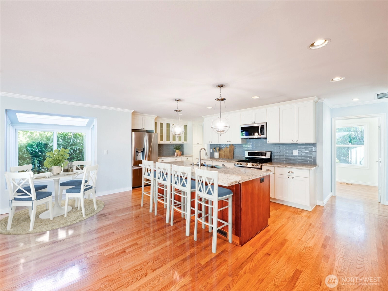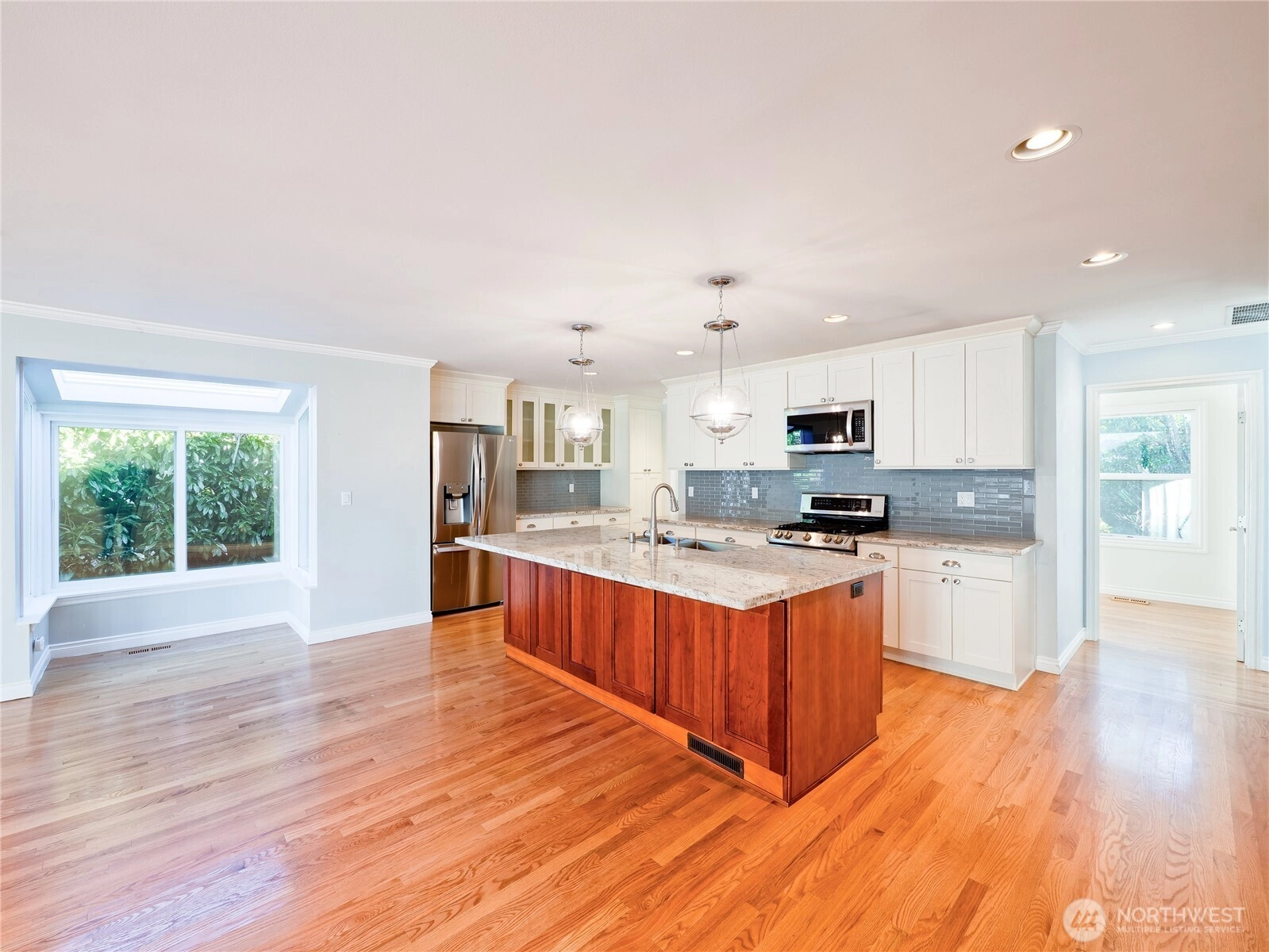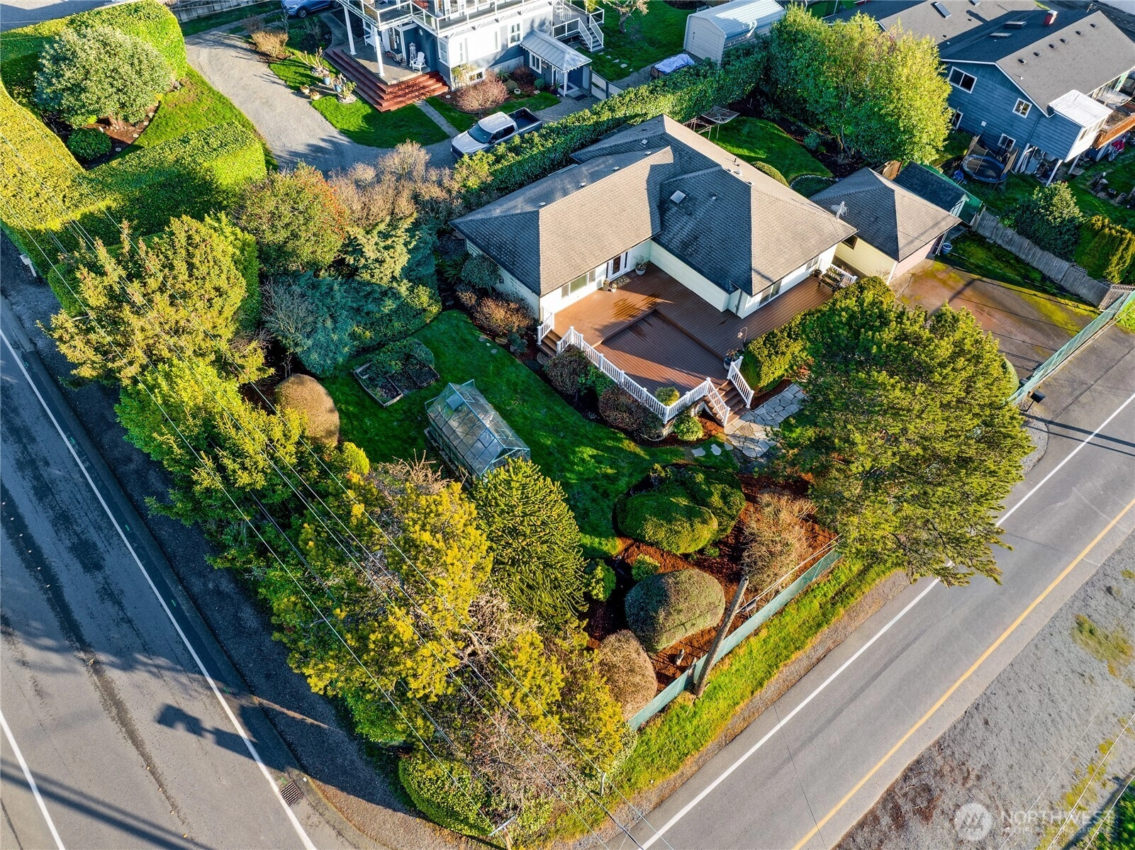 This beautifully updated single-story home blends comfort, charm, and location. Start your mornings on the spacious deck taking in sweeping views of Puget Sound and the Olympic Mountains, or unwind there in the evening as the sun sets. The thoughtfully maintained garden with a functional greenhouse create a peaceful outdoor space you can enjoy year-round. Inside, warm hardwood floors and a bright, open layout create an easy flow between the large living area and the updated kitchen, making the home feel both welcoming and practical for everyday living or hosting friends. The generous primary suite offers a quiet retreat with ample closet space and a private bath. Outside, the fully fenced yard with an automatic gate adds privacy, while the detached garage and shed provide valuable storage and workspace. This home offers a rare balance - a tranquil garden setting just steps from downtown Des Moines shops, restaurants, and the marina.