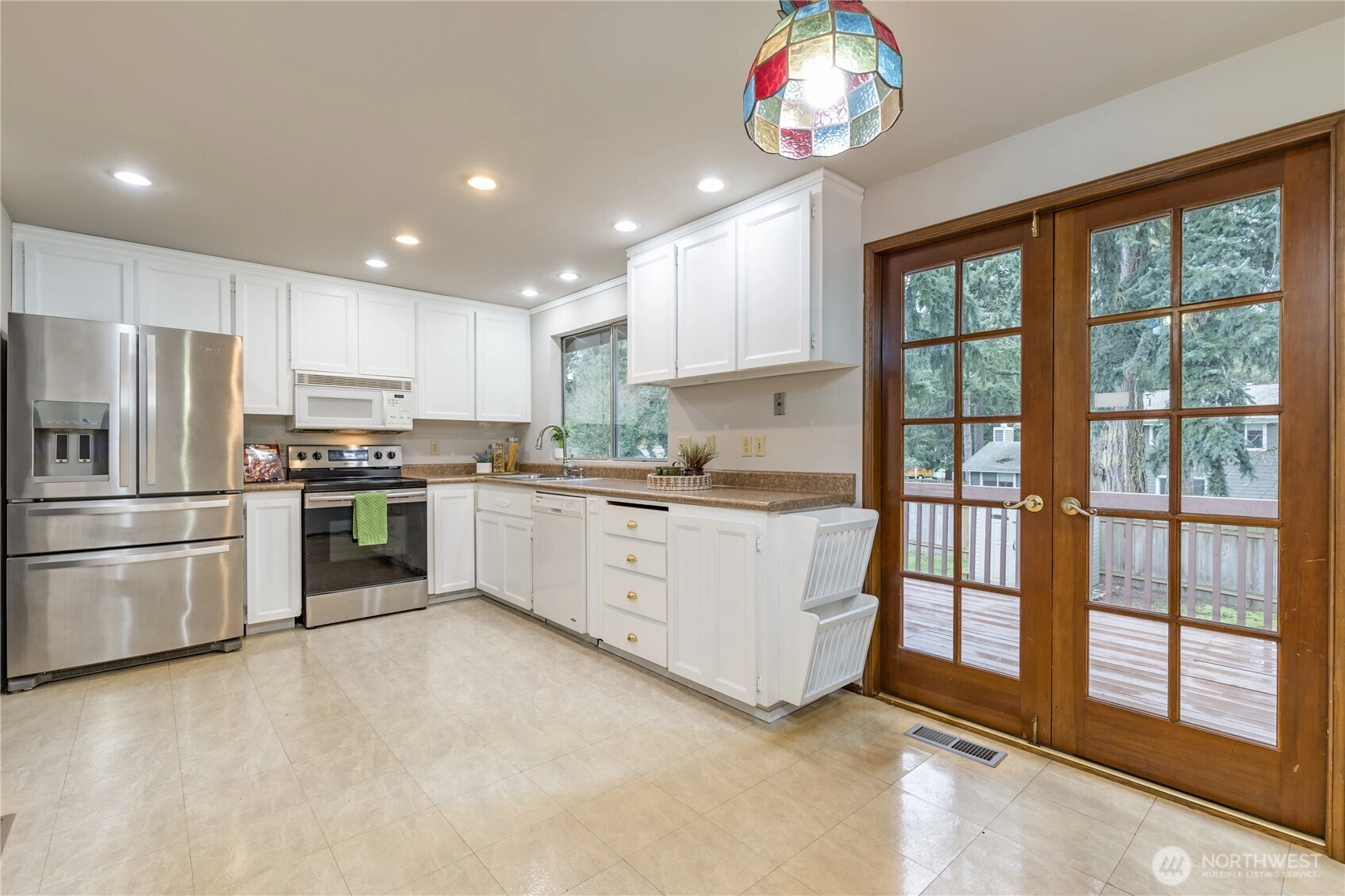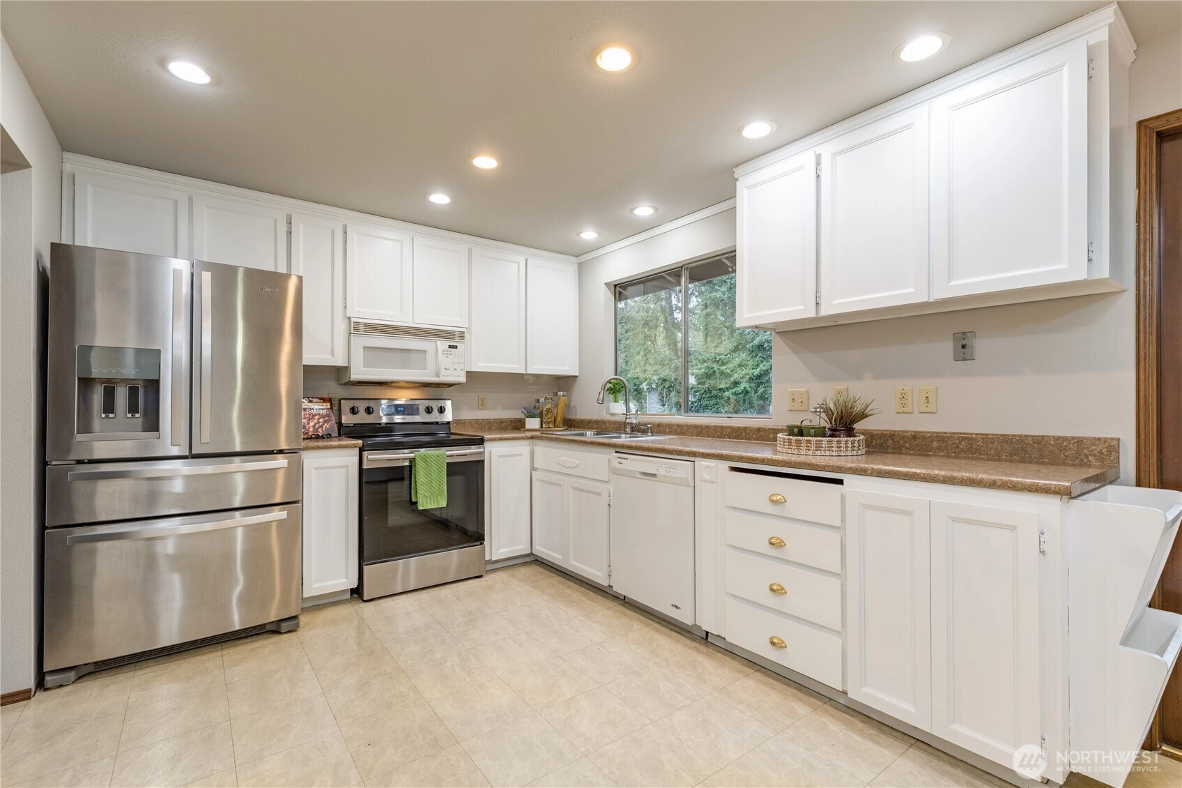 This Federal Way home features major system updates that provide immediate peace of mind. The heavy lifting has already been done with a new roof installed in 2022, along with a newer furnace and water heater, plus fresh interior paint throughout. Situated on a large lot across from the elementary school, this home is perfectly positioned for those who want a solid functional start in a fantastic location near Dash Point State Park with beach access and miles of forested hiking trails. The upper level includes a spacious kitchen with freshly painted cabinets and a living room centered around a brick gas fireplace. Downstairs, a massive rec room with a second fireplace, a fourth bedroom, and a 3/4 bath offer endless possibilities. Enjoy the outdoors from the expansive back deck overlooking the large fully-fenced yard – there’s plenty of space here to play or relax! The attached garage is fully equipped for projects year-round with a built-in workbench, 220V outlets and a dedicated heater, plus extra attic storage to keep things organized. For even more utility, the multiple backyard sheds offer additional garden supply storage and a secondary powered workspace. This prime location offers the best of both worlds: a quiet neighborhood feel with easy freeway access and close proximity to a variety of local shopping and dining options. Come see why this should be your next home!