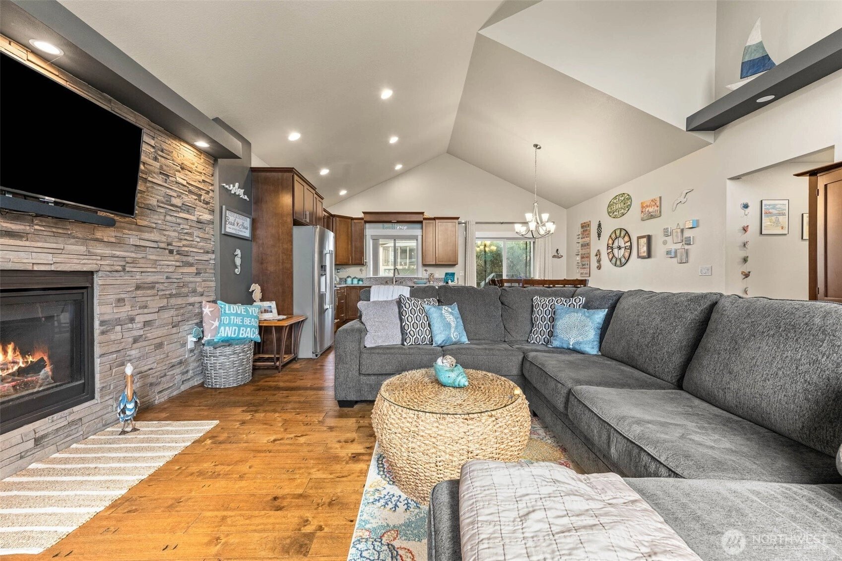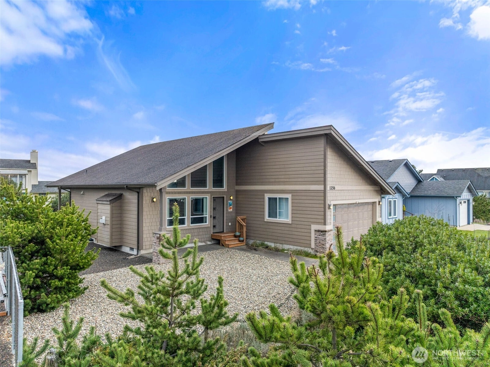 Modern coastal living just minutes from the ocean in Ocean Shores! This stylish 2-bedroom, 2-bath home brings the beach vibe with an open, airy layout and soaring vaulted ceilings. The heart of the home features a striking full-wall stone propane fireplace, perfect for cozy coastal evenings sets the mood for cozy nights after salty air and sandy toes. Granite countertops, soft-close cabinetry, and sleek finishes shine throughout, while tile bathrooms deliver a spa-like feel. Plenty of light fills the space highlighting the clean lines and modern design inside and out. Fire up the BBQ on your back deck, unwind around the outdoor fire ring and relax—you’re on beach time now. Enjoy Community Center perks including an indoor and outdoor pool and a gym, plus a 2-car garage. Whether it’s your full-time escape, weekend getaway, or savvy investment, this home is all about easy, modern beach living—all just moments from the shore.