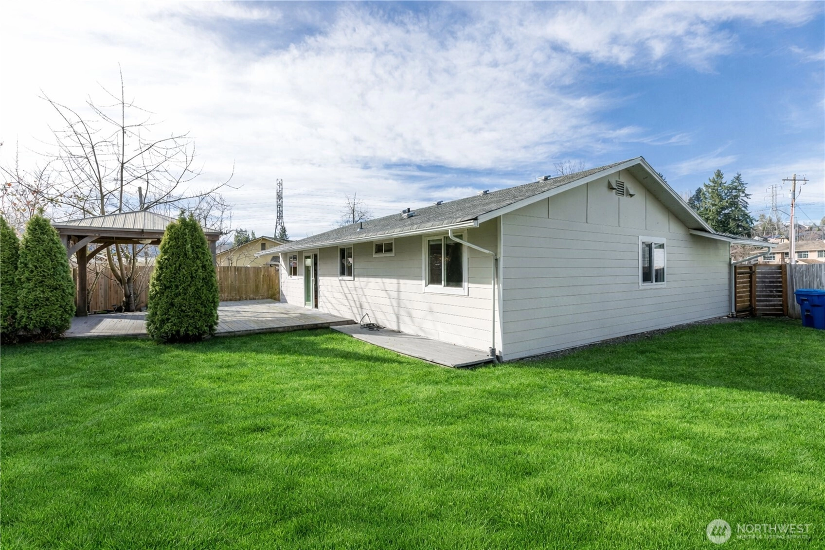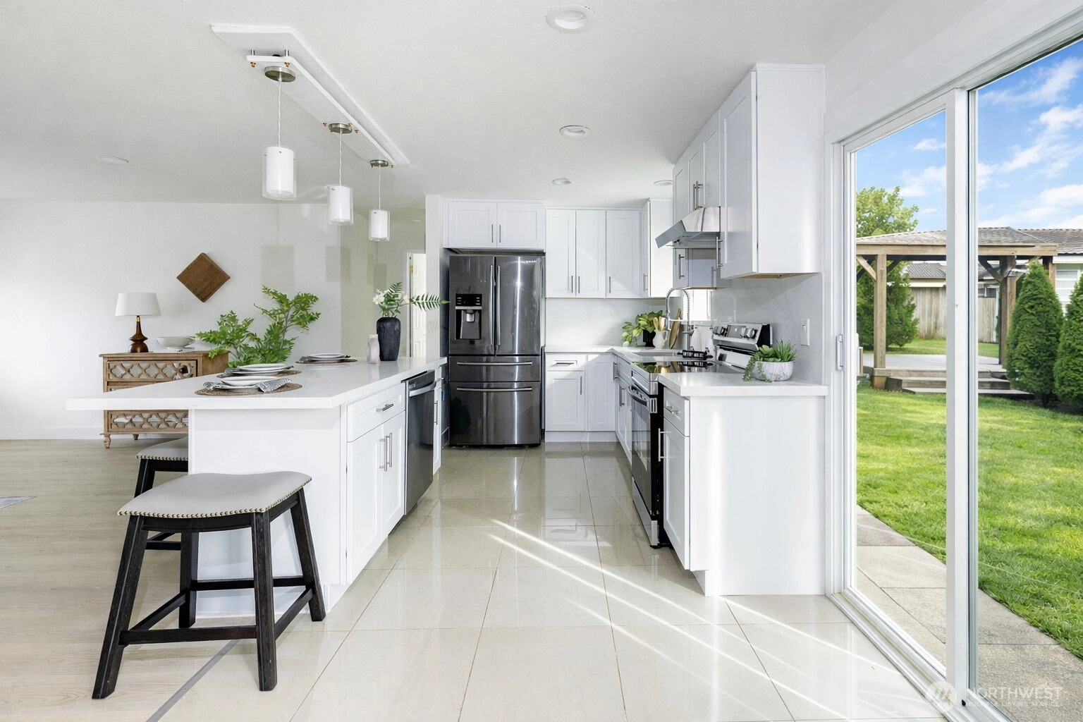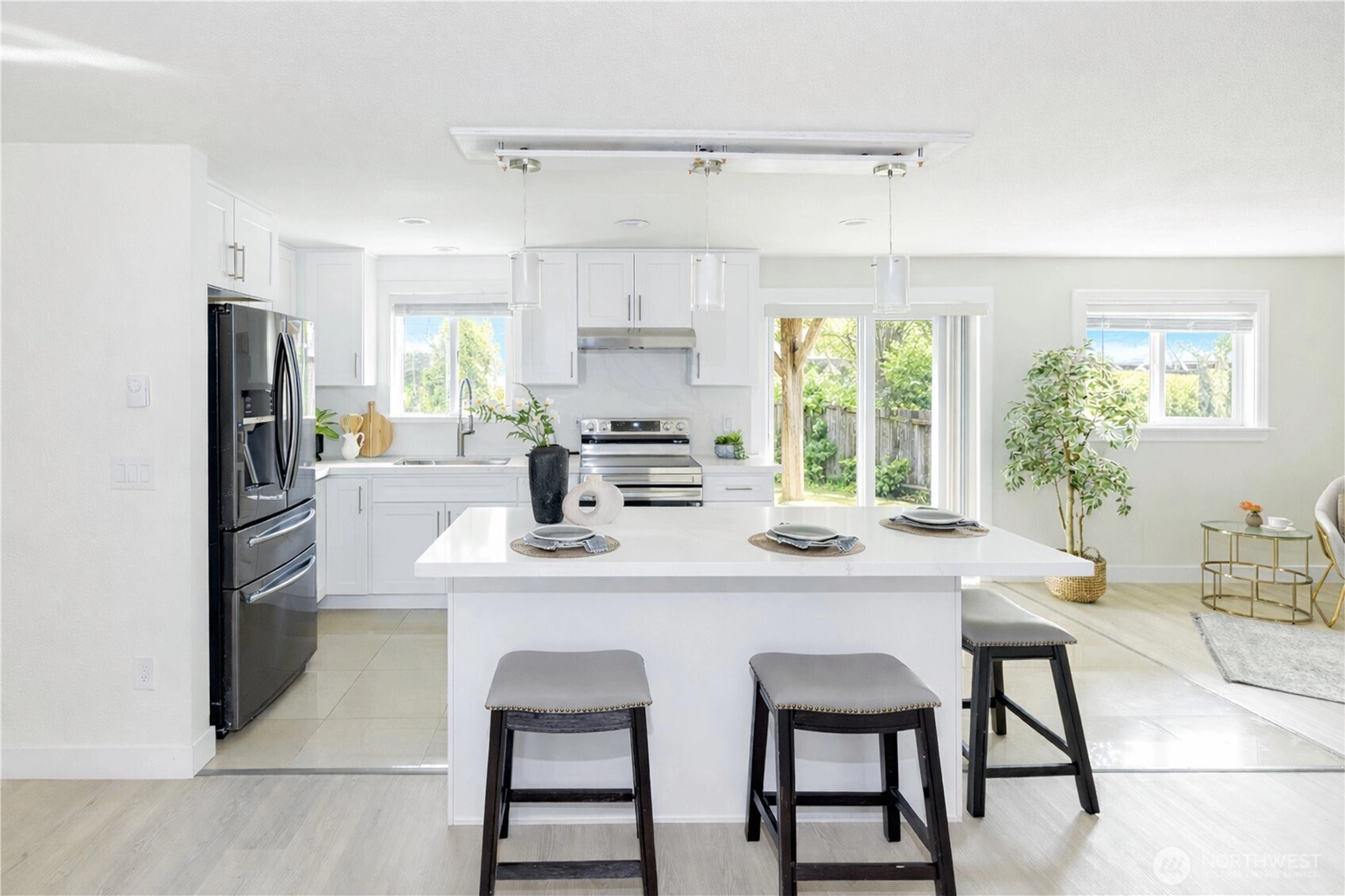 Beautifully updated rambler with stylish open concept living in the heart of South Seattle. The stunning brand new kitchen features quartz countertops, new stainless steel appliances, and a designer tile backsplash. Fresh interior and exterior paint, new flooring, and new gutters add comfort and peace of mind. Step outside to a fully fenced backyard oasis with a 200 sq ft detached office/studio—perfect for remote work or extra storage—and a charming covered gazebo, ideal for entertaining. Just 2 blocks from light rail. Truly move-in ready!