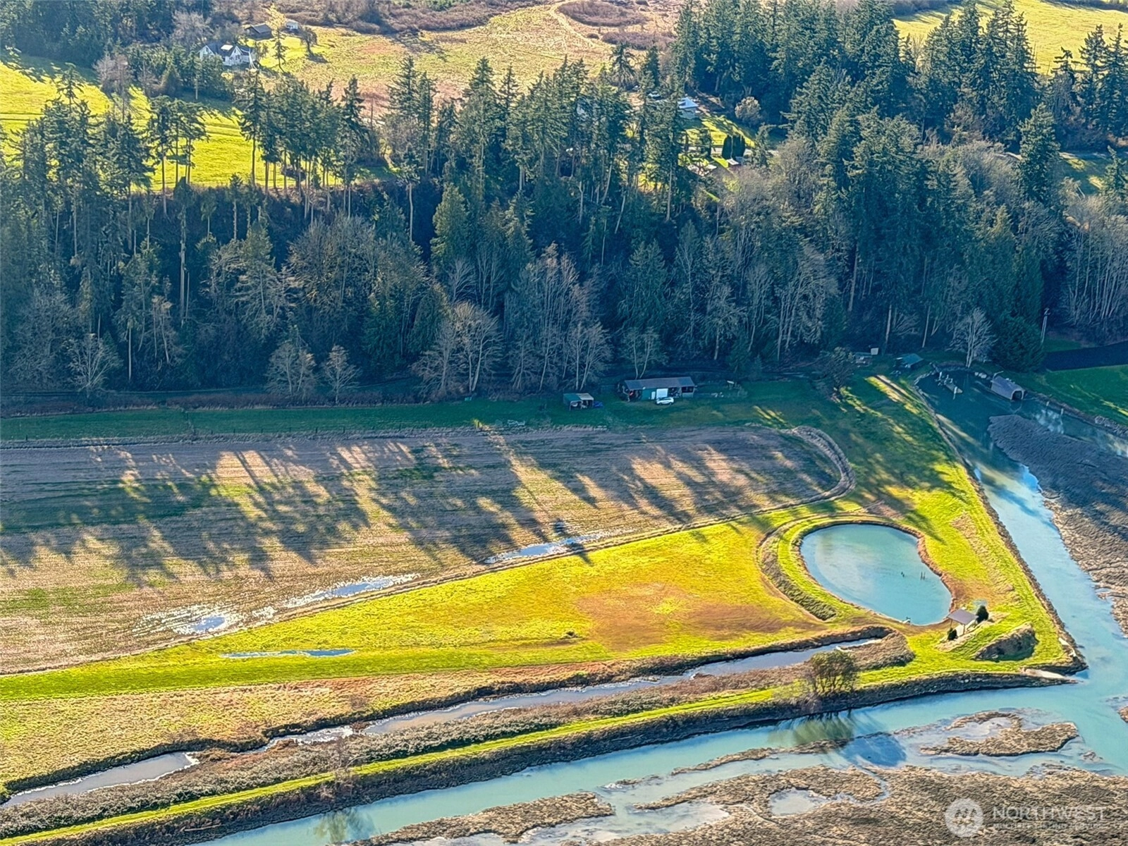 A truly rare Northwest legacy property—an extraordinary multi-use estate offering aviation, agricultural, recreational, and income-producing features in one breathtaking setting on Camano Island. Rare opportunity to own a remarkable multi-use waterfront-adjacent estate on Camano Island, offering sweeping views of Puget Sound and surrounding mountains. This exceptional agricultural and recreational property features a private 2,500’ grass airstrip, making it ideal for aviation enthusiasts, along with established farm income and multiple improvements. The land includes a 24x58 pole barn, charming cabin, 20x35 cabana, grandstand, scenic pond and Boat launch with access to Skagit Bay (half ownership of floating dock with 2 jet ski lifts), creating a truly unique setting for private enjoyment, events, or agricultural operations. An established RV campsite with hookups adds versatility for guests, seasonal use, or additional income. Farmers lease income $14,500 annual for crops, and is enrolled in agricultural use. The open pastureland, level topography, and expansive acreage offer endless potential for farming, equestrian use, recreation, or a private aviation retreat. Enjoy breathtaking Sound and mountain views, peaceful privacy, and the rare combination of aviation, agricultural, and recreational.