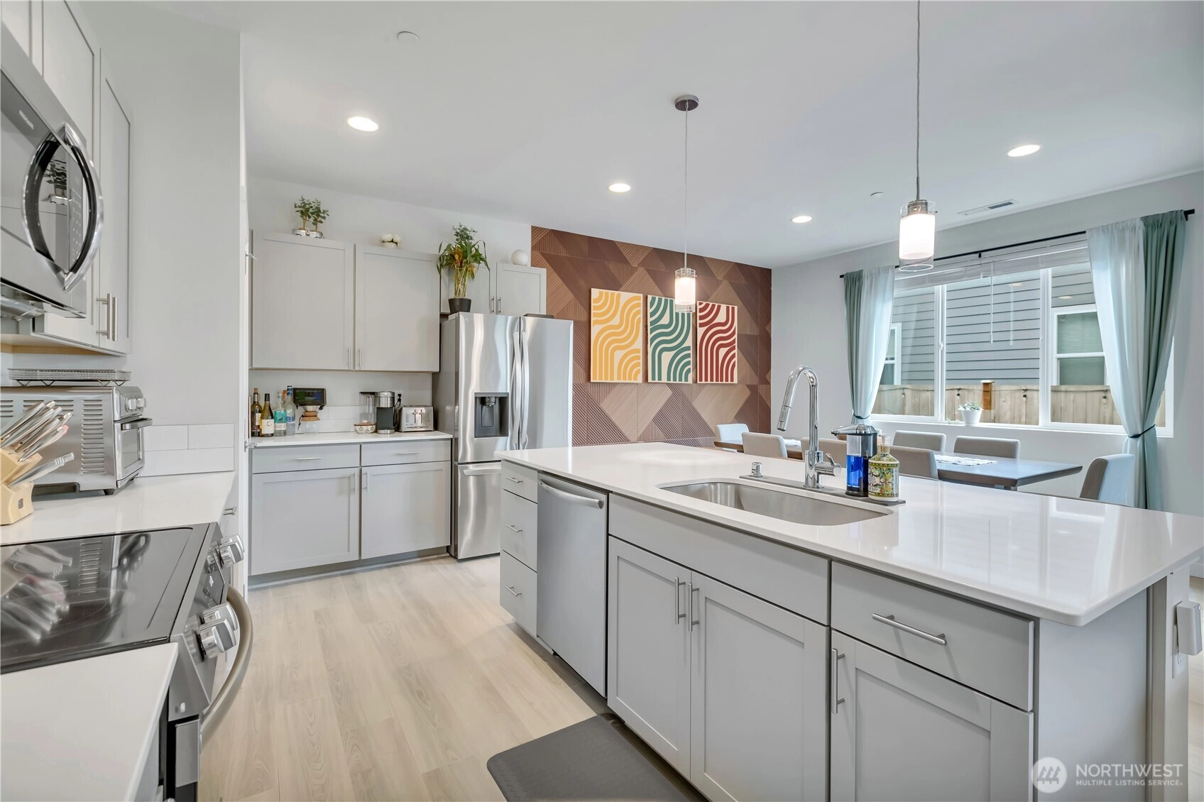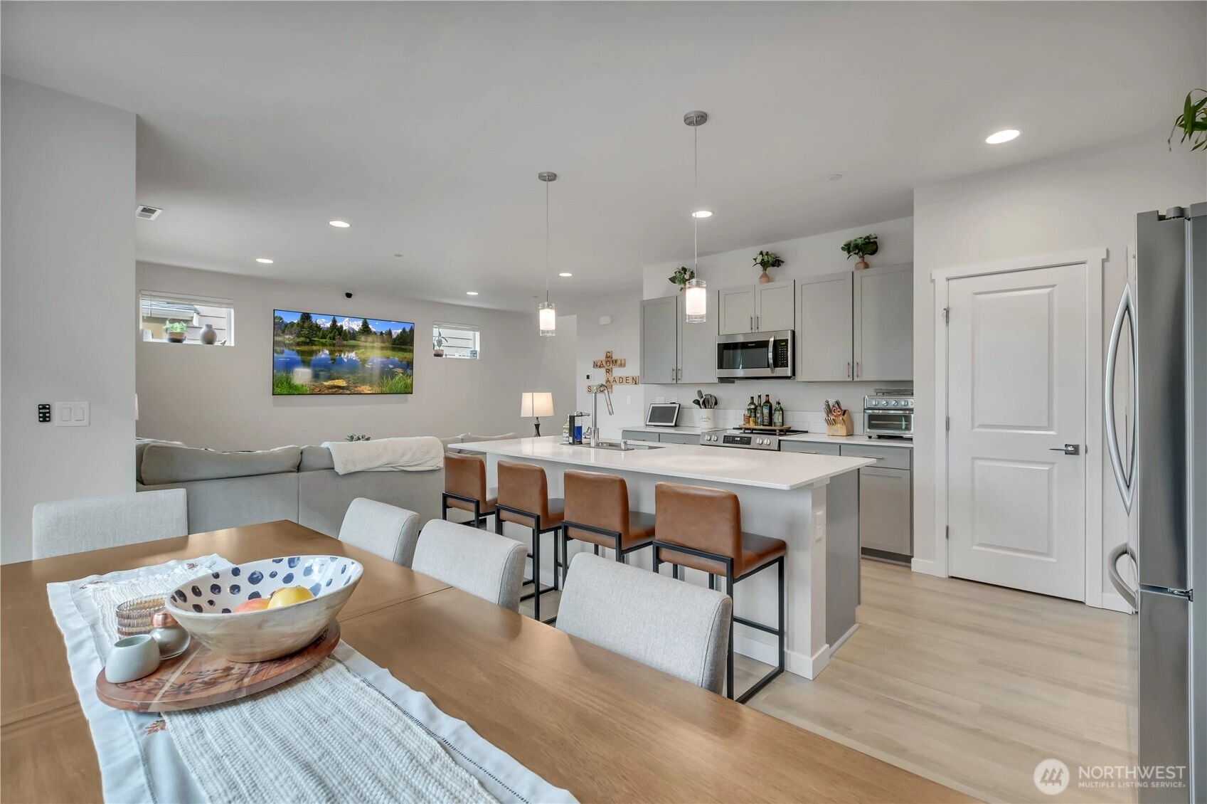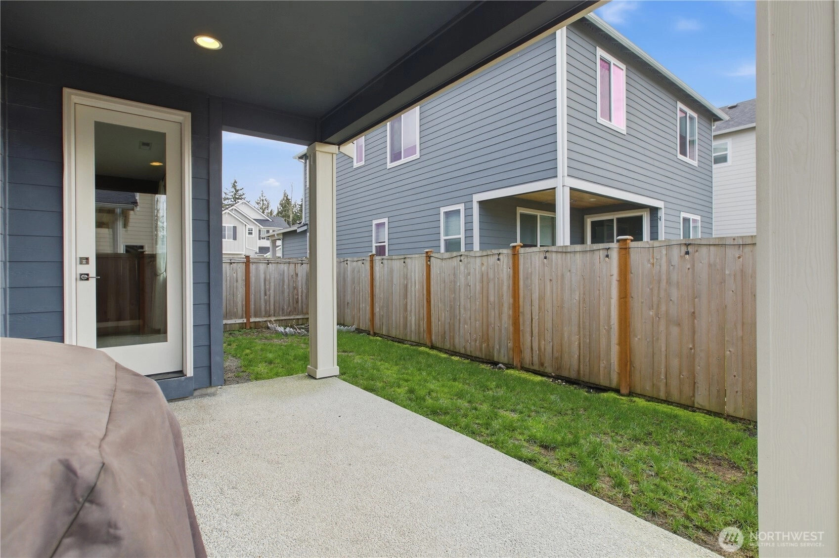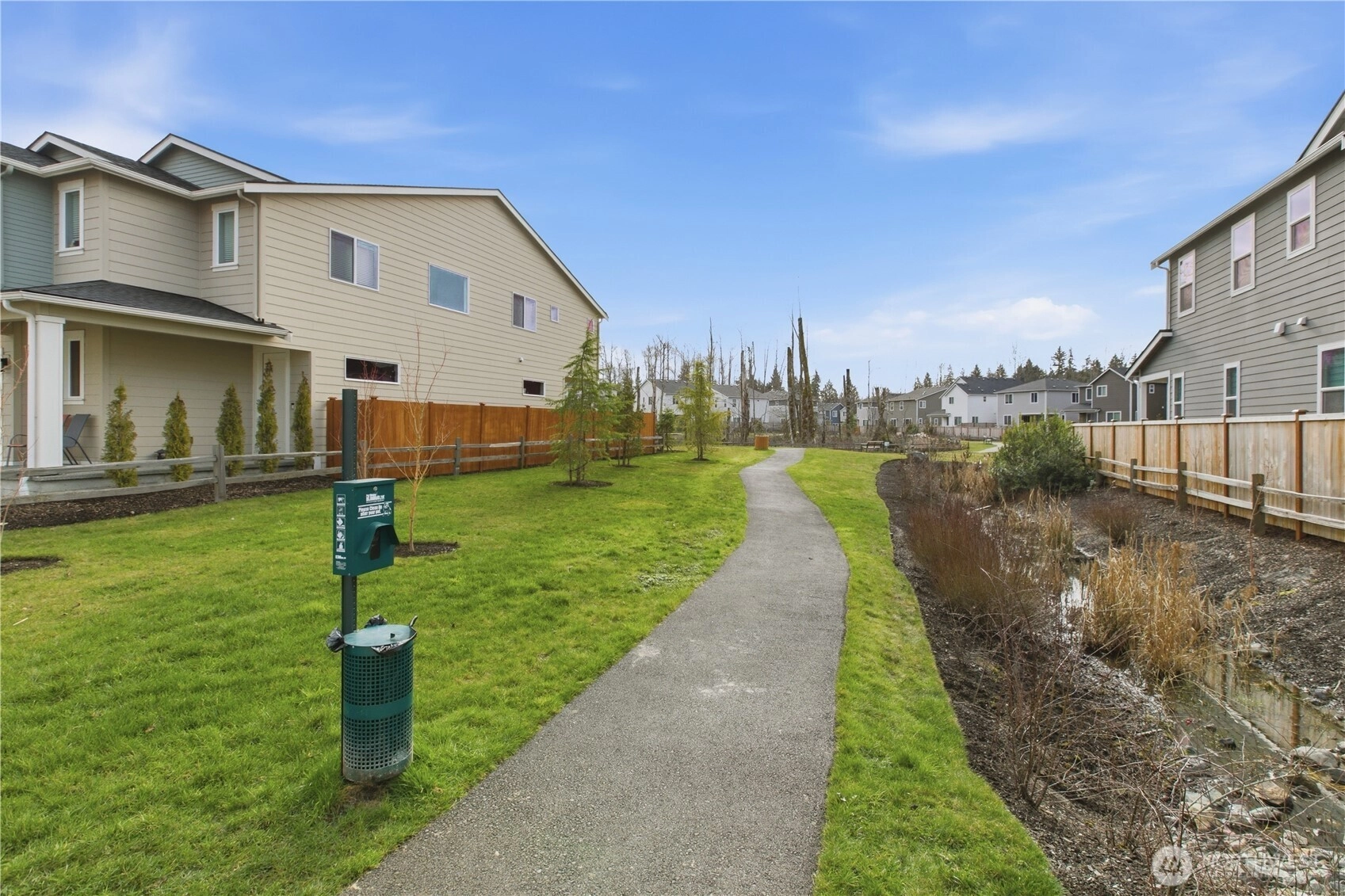 BEAUTIFUL & spacious FIVE bedroom Marysville home just like new! This 2 year old home has a fantastic layout, including soaring ceilings in the long, wide foyer as you enter, a main floor bedroom with a 3/4 bath ~ perfect for a home office OR guest suite! Open concept great room with 9'ceilings, kitchen has stainless steel appliances, a large island w/quartz countertops, eating bar & dining area with wood accent wall with lighting. Lots of counter space & a big pantry! Upstairs is a large bonus room, an office/desk nook, a huge primary bedroom & bath with double sinks, a soaking tub, walk-in shower, & pass-through walk-in closet that's also connected to the laundry room! 3 more nicely sized bedrooms, plus another full bath, this 2600 SF home plan was thoughtfully designed. Covered front & back patios for year-round use, backyard is fully fenced & looks out to the community park with walking trails.
