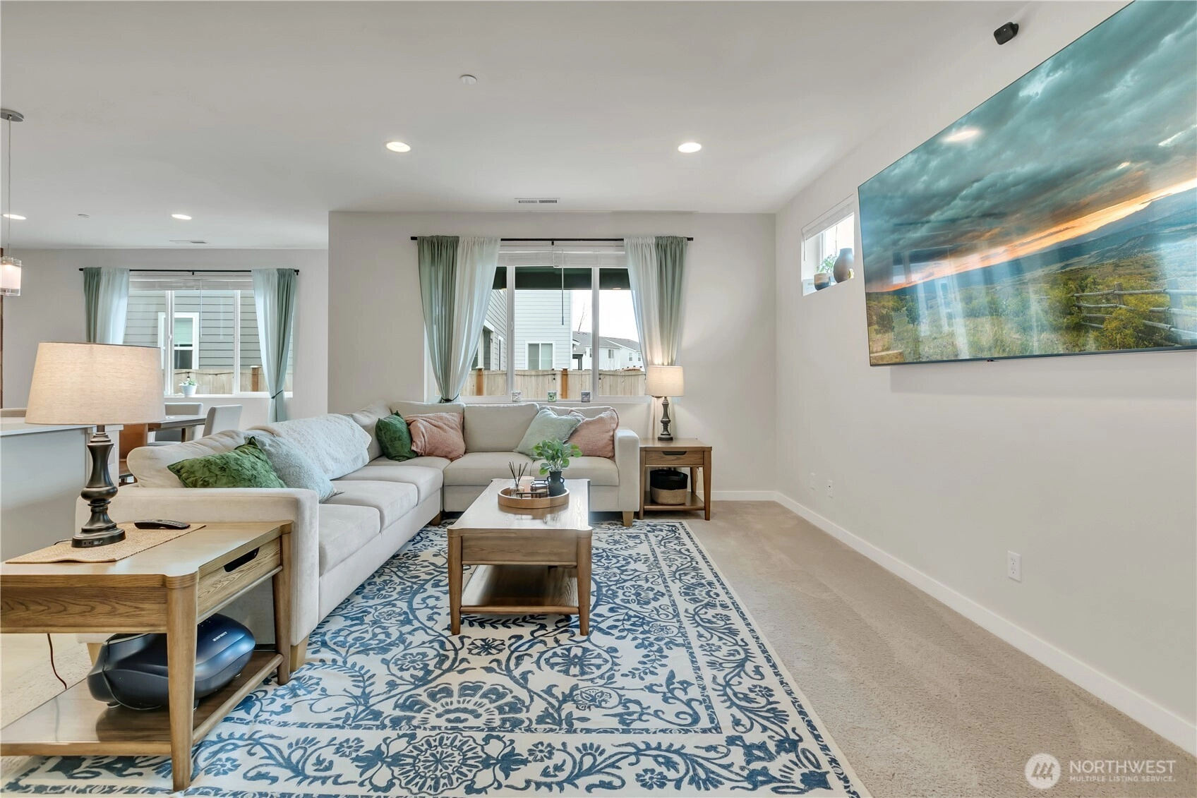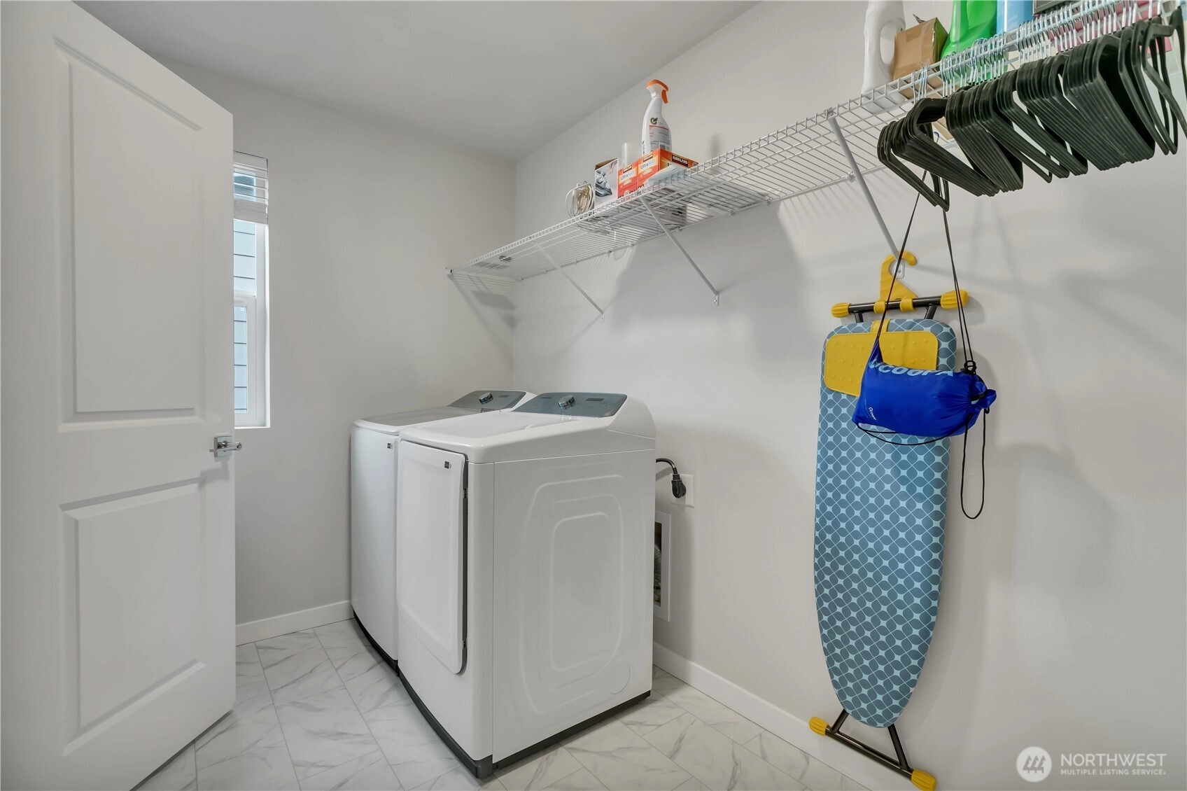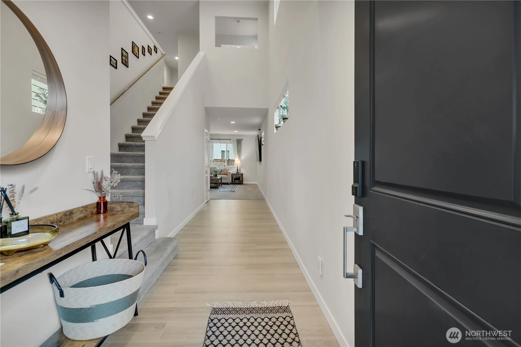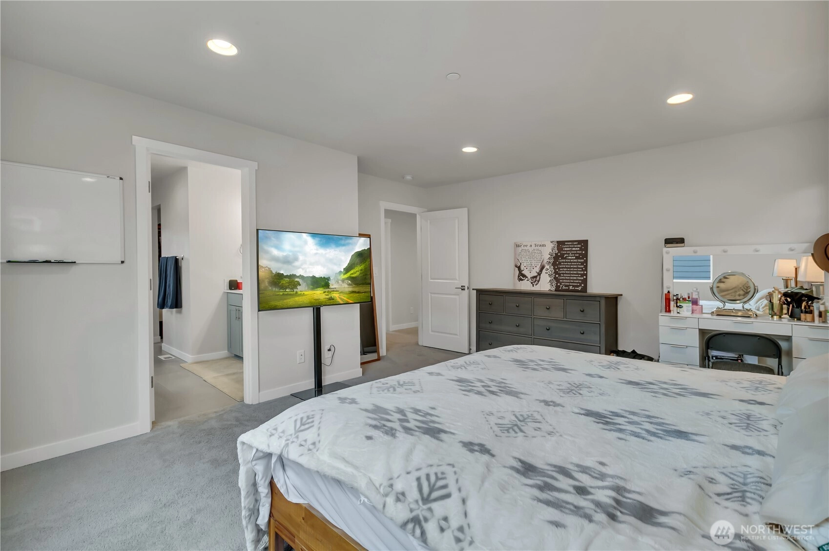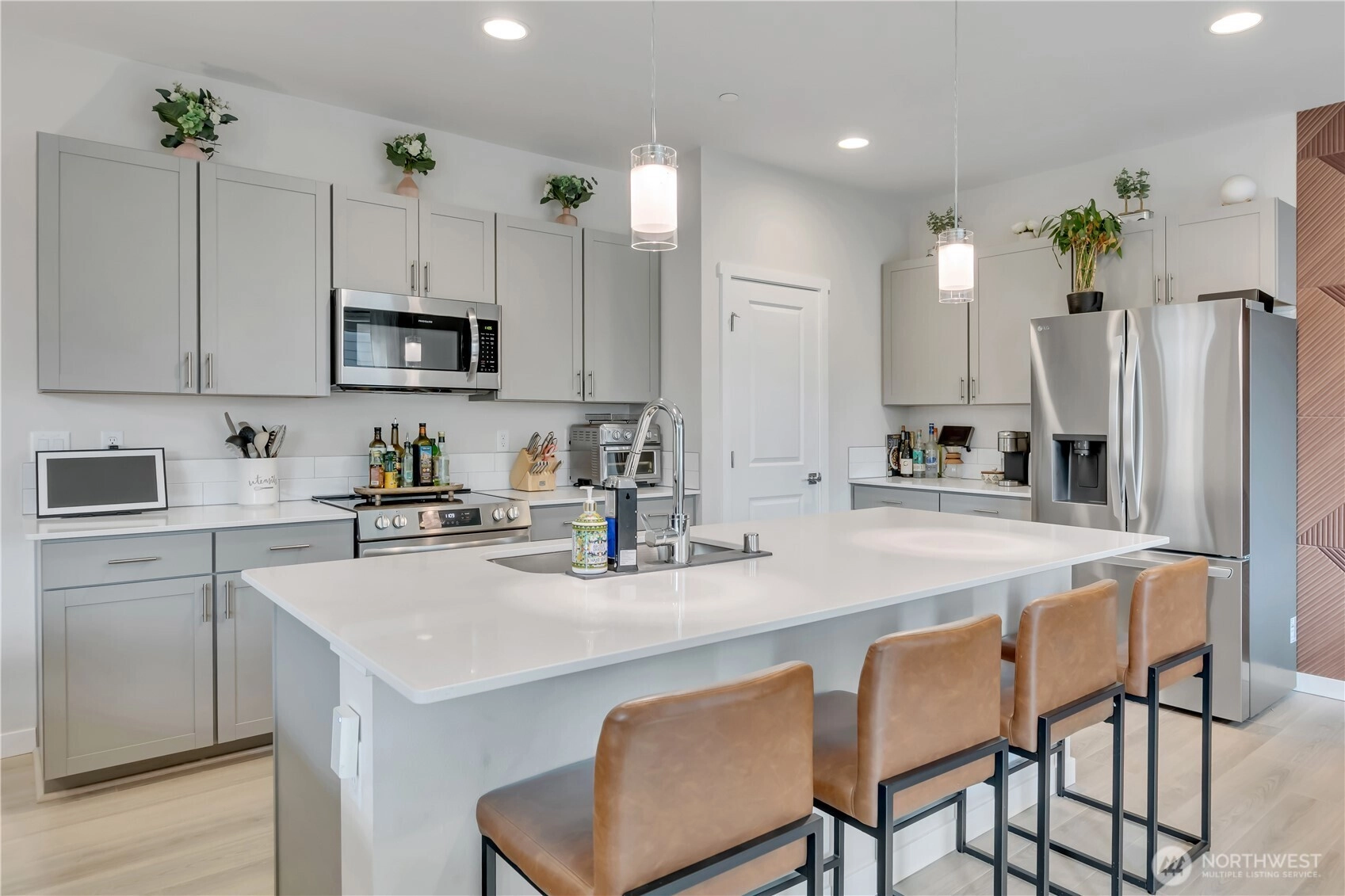 BEAUTIFUL & spacious FIVE bedroom Marysville home just like new! This 2 year old home has a fantastic layout, including soaring ceilings in the long, wide foyer as you enter, a main floor bedroom with a 3/4 bath ~ perfect for a home office OR guest suite! Open concept great room with 9'ceilings, kitchen has stainless steel appliances, a large island w/quartz countertops, eating bar & dining area with wood accent wall with lighting. Lots of counter space & a big pantry! Upstairs is a large bonus room, an office/desk nook, a huge primary bedroom & bath with double sinks, a soaking tub, walk-in shower, & pass-through walk-in closet that's also connected to the laundry room! 3 more nicely sized bedrooms, plus another full bath, this 2600 SF home plan was thoughtfully designed. Covered front & back patios for year-round use, backyard is fully fenced & looks out to the community park with walking trails.