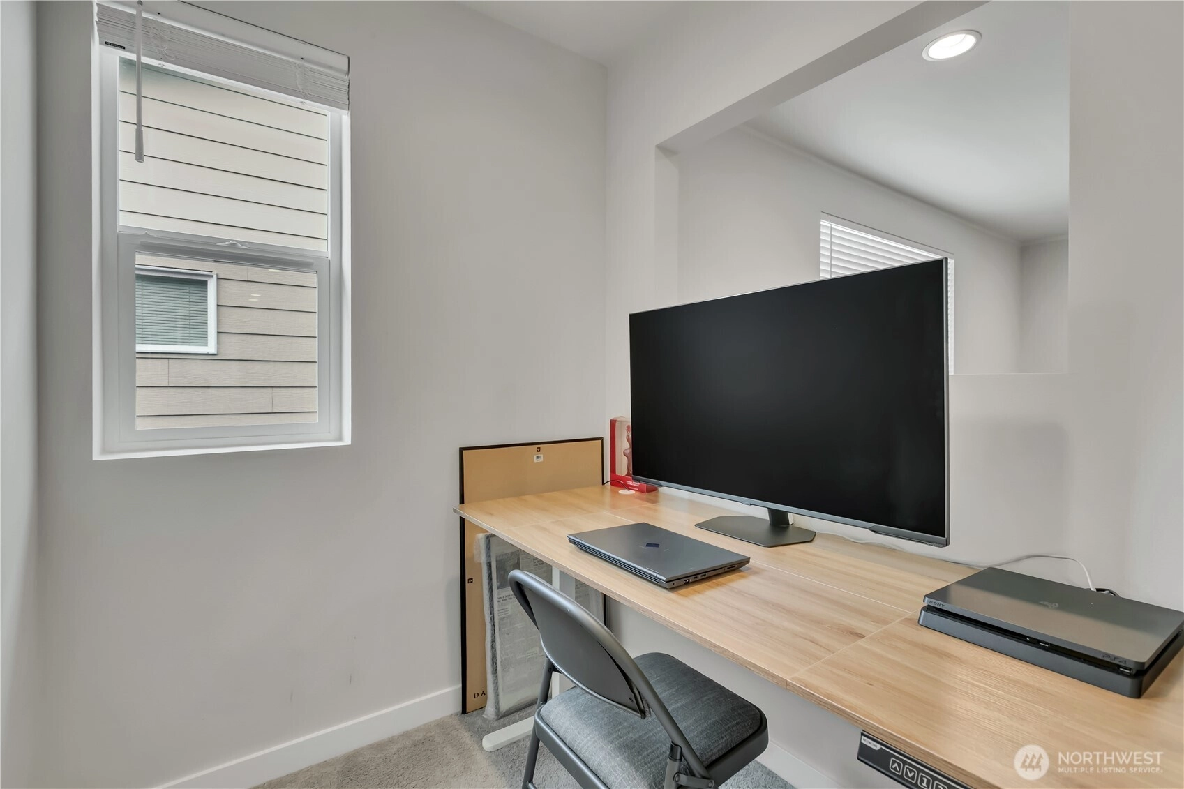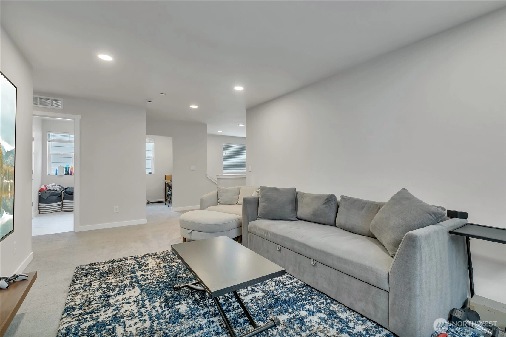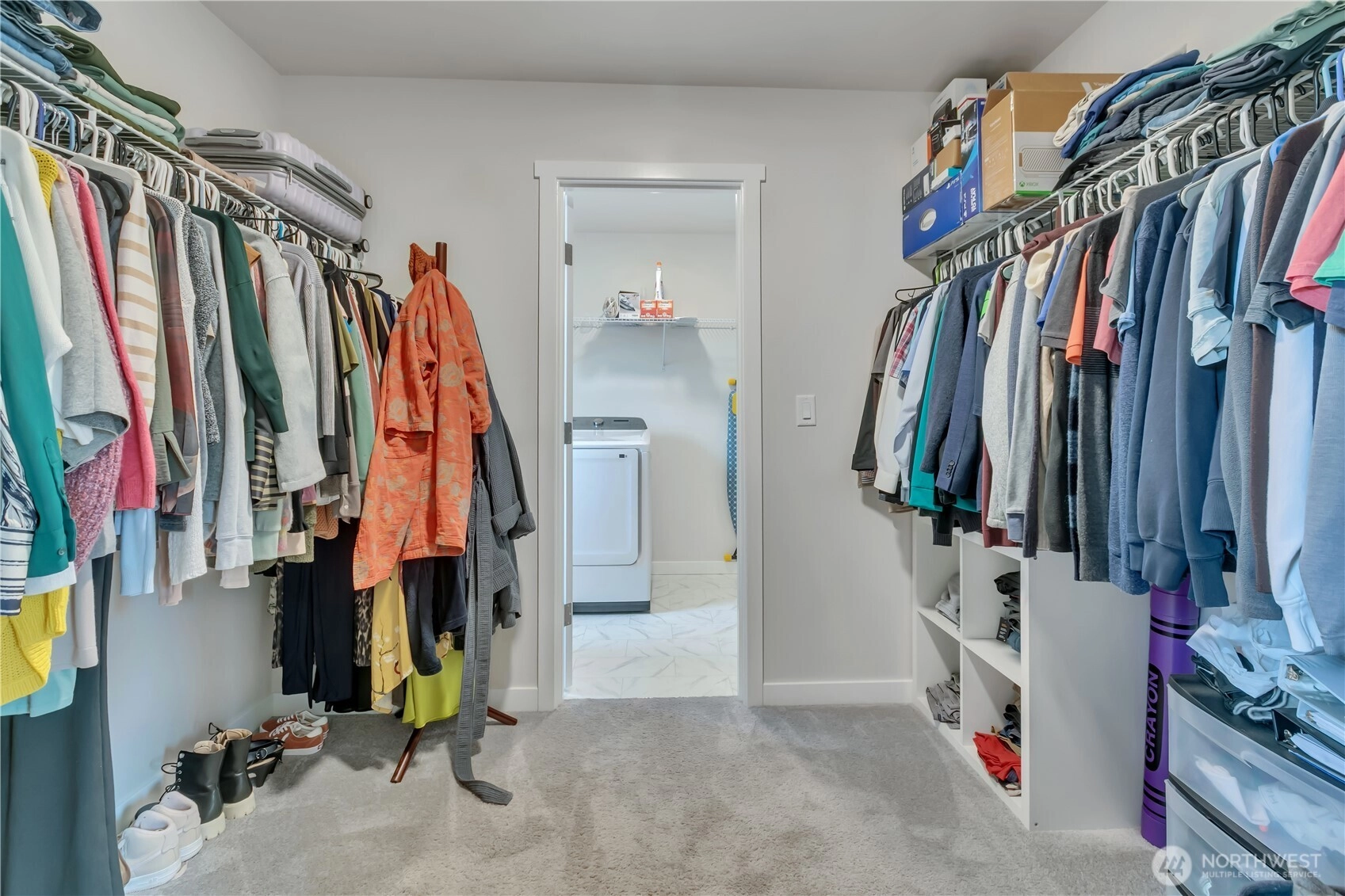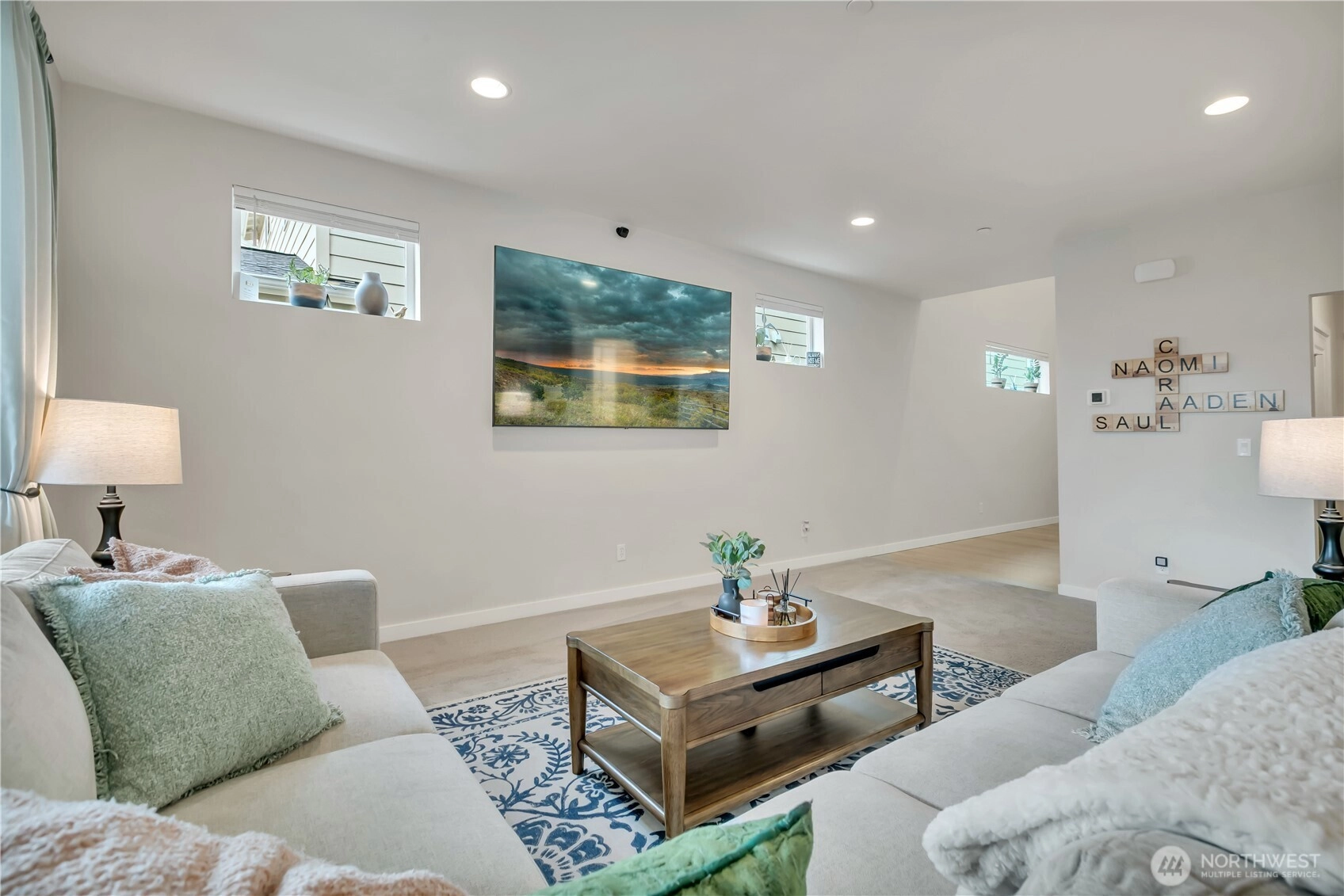 BEAUTIFUL & spacious FIVE bedroom Marysville home just like new! This 2 year old home has a fantastic layout, including soaring ceilings in the long, wide foyer as you enter, a main floor bedroom with a 3/4 bath ~ perfect for a home office OR guest suite! Open concept great room with 9'ceilings, kitchen has stainless steel appliances, a large island w/quartz countertops, eating bar & dining area with wood accent wall with lighting. Lots of counter space & a big pantry! Upstairs is a large bonus room, an office/desk nook, a huge primary bedroom & bath with double sinks, a soaking tub, walk-in shower, & pass-through walk-in closet that's also connected to the laundry room! 3 more nicely sized bedrooms, plus another full bath, this 2600 SF home plan was thoughtfully designed. Covered front & back patios for year-round use, backyard is fully fenced & looks out to the community park with walking trails.