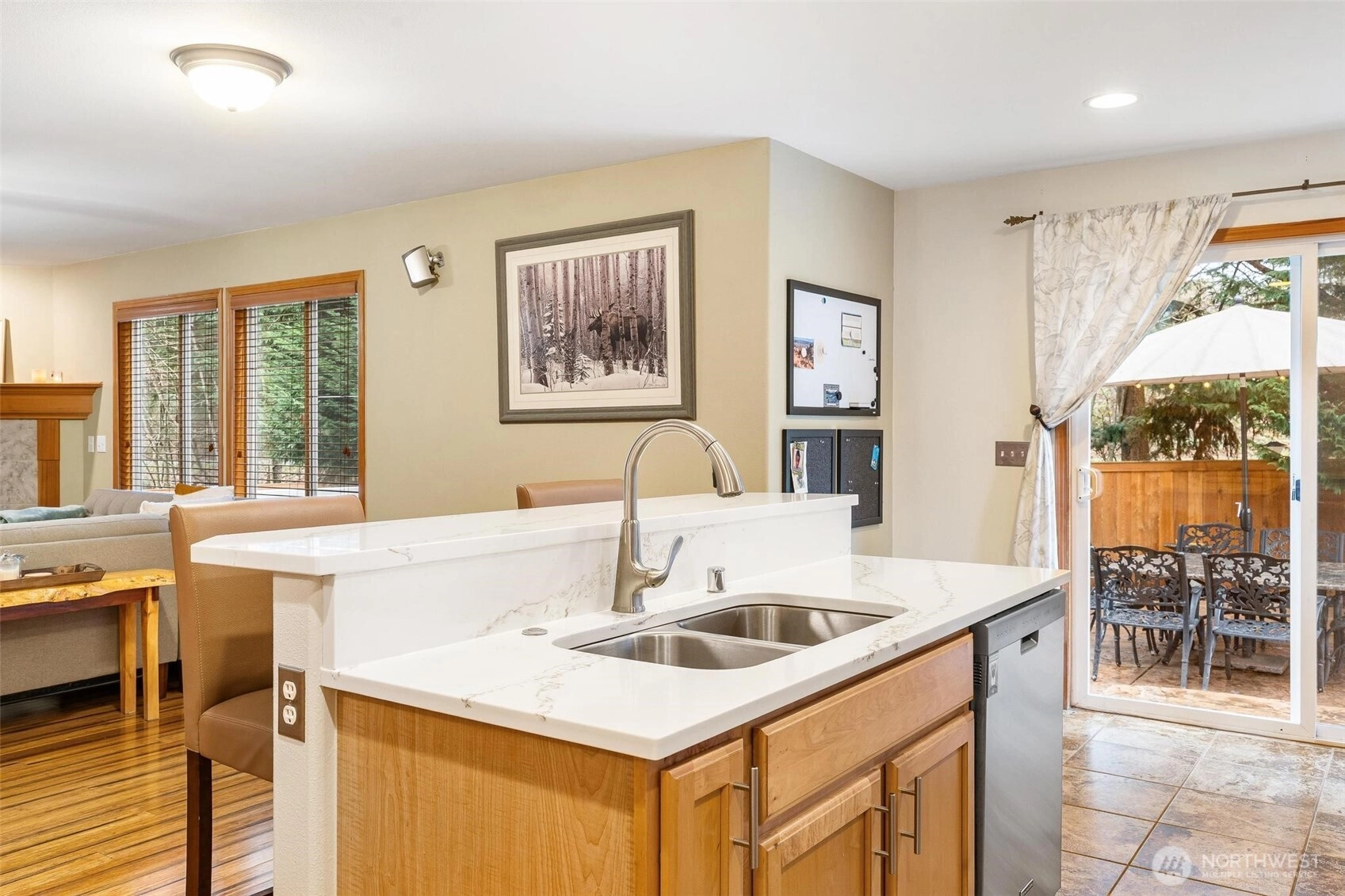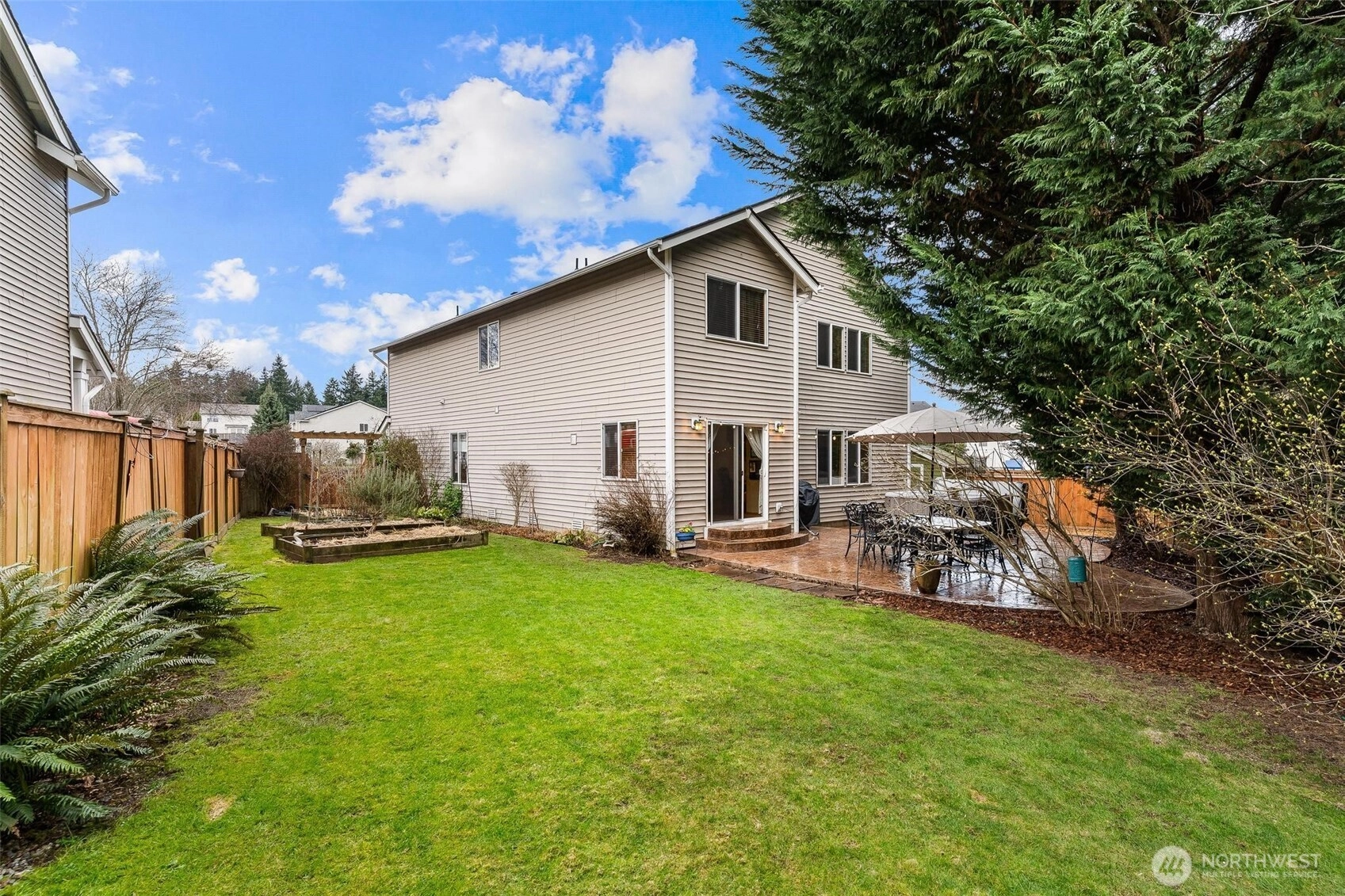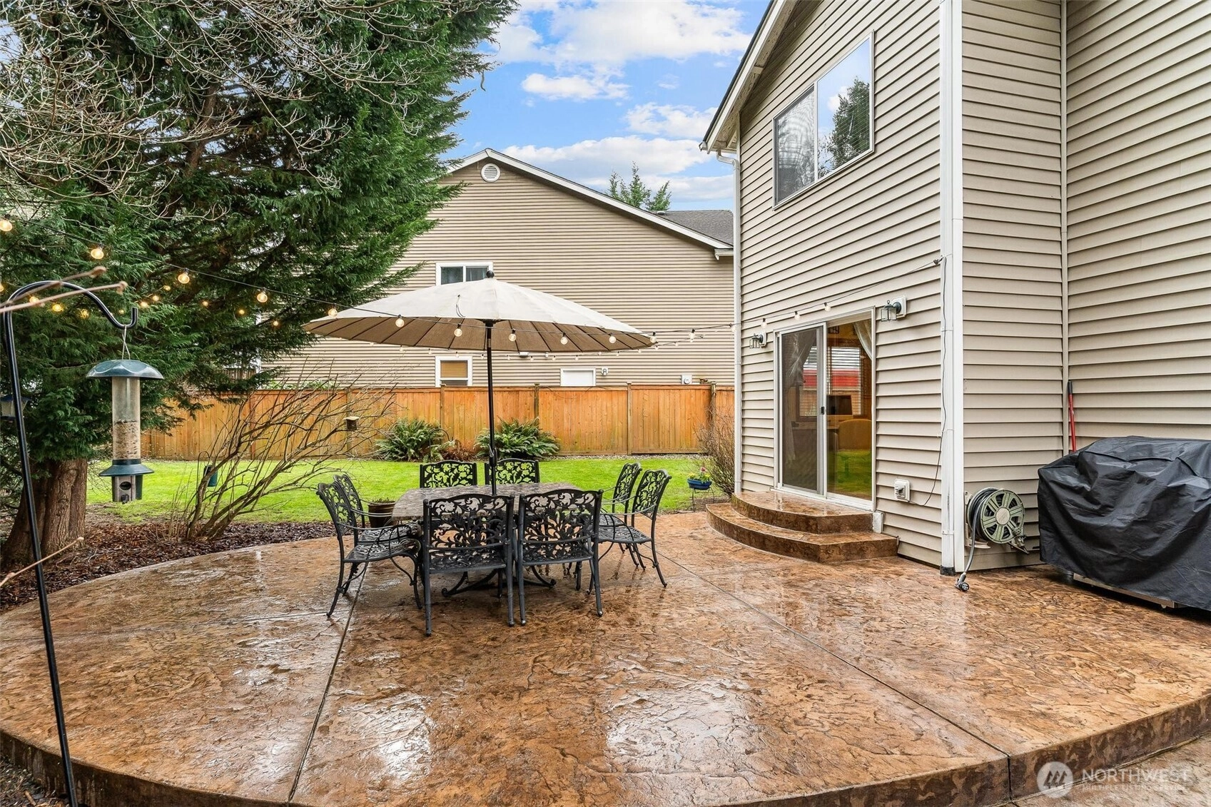 Welcome to the highly sought-after Katesridge neighborhood in the heart of Maple Valley, located within the highly rated Tahoma School District. Tucked away on an ideal cul-de-sac, this beautifully updated home offers open-concept living with a chef-inspired kitchen featuring quartz countertops, stainless steel appliances, heated floors, a walk-in pantry, and spacious island perfect for gathering, all anchored by a cozy gas fireplace and complemented by a dedicated dining room ideal for entertaining. Designed with functionality in mind, the home boasts immense storage space throughout, including several walk-in closets. Upstairs, the grand primary suite showcases a beautifully updated ensuite and spacious walk-in closet, along with a versatile loft perfect for a home office, media space, or play area. Step outside to your lush backyard retreat featuring a custom stamped concrete patio, garden space, hot tub, shed, and private gate access to scenic walking trails. Major updates include a 30-year roof and new hot water tank installed last summer, plus refreshed bathrooms and a modernized kitchen. Enjoy unbeatable convenience just minutes from Four Corners shopping, dining, the popular summer farmers market, and easy access to Hwy 169—this is Maple Valley living at its finest.
