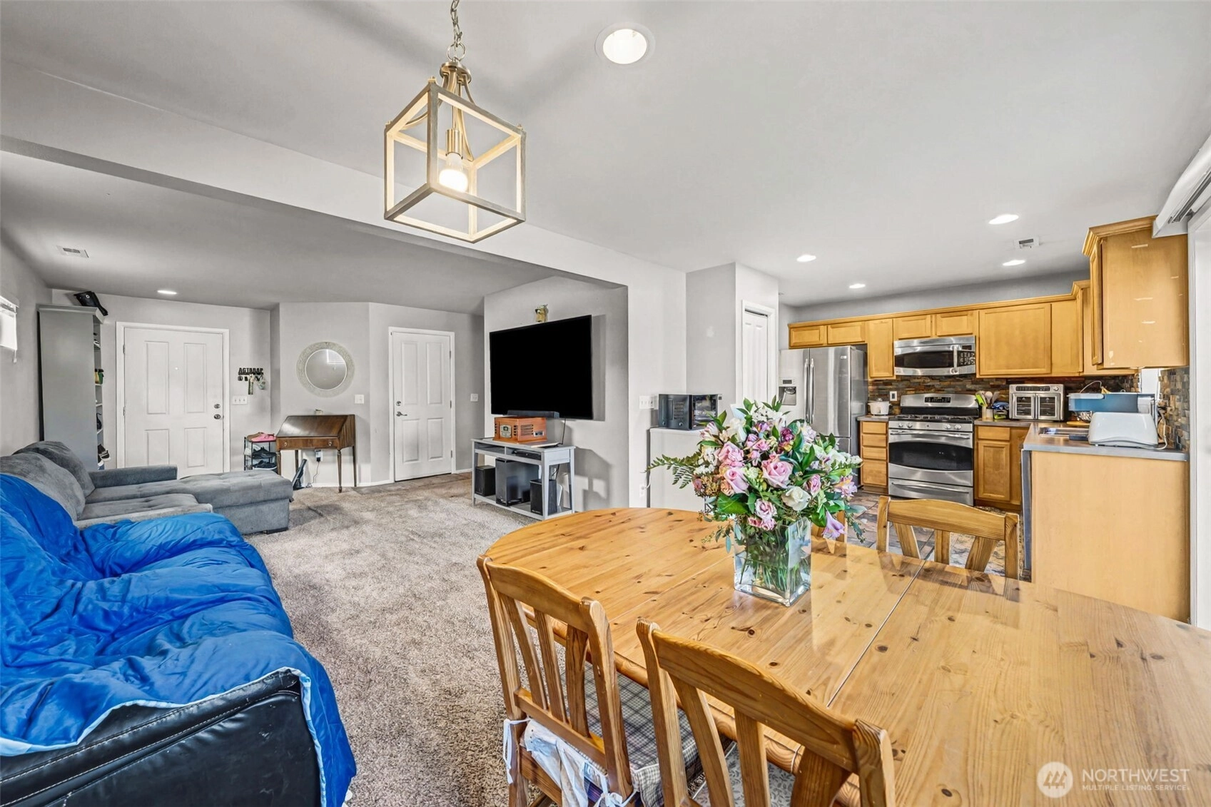 Have you been looking for a great home in the Fife School District? This two-story home offers 3 bedrooms and 2.5 baths with a comfortable, functional layout that fits everyday life. The kitchen features slate floors and stainless steel appliances and opens to the dining and living areas, making it easy to stay connected while cooking or hosting. A sliding door leads to the back patio and fully fenced backyard—perfect for playtime, pets, and summer BBQs. With newer exterior paint, a sprinkler system, gas forced air heat, gas hot water, and a two-car garage, this home checks the practical boxes too. Located in the Radiance community with 7 parks, walking trails, and close proximity to schools, it’s a place where you can truly settle in and feel at home.