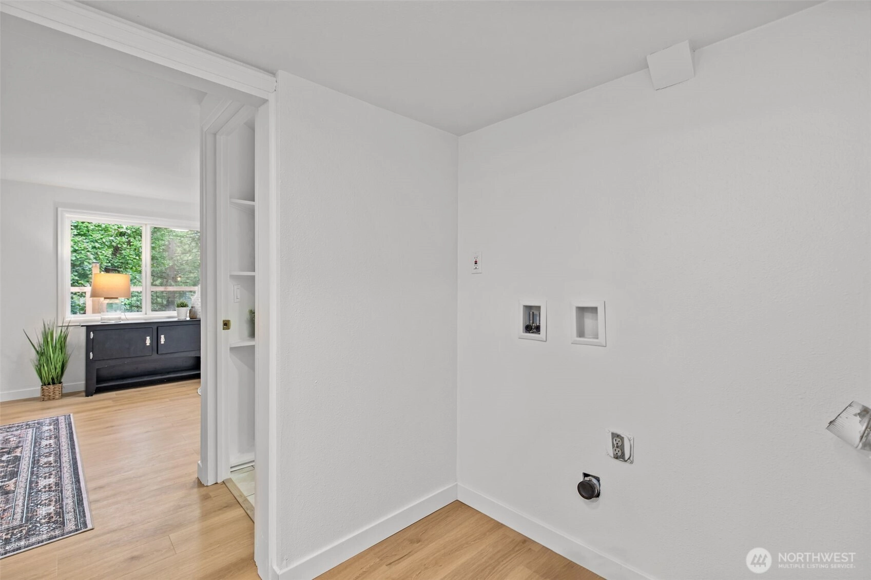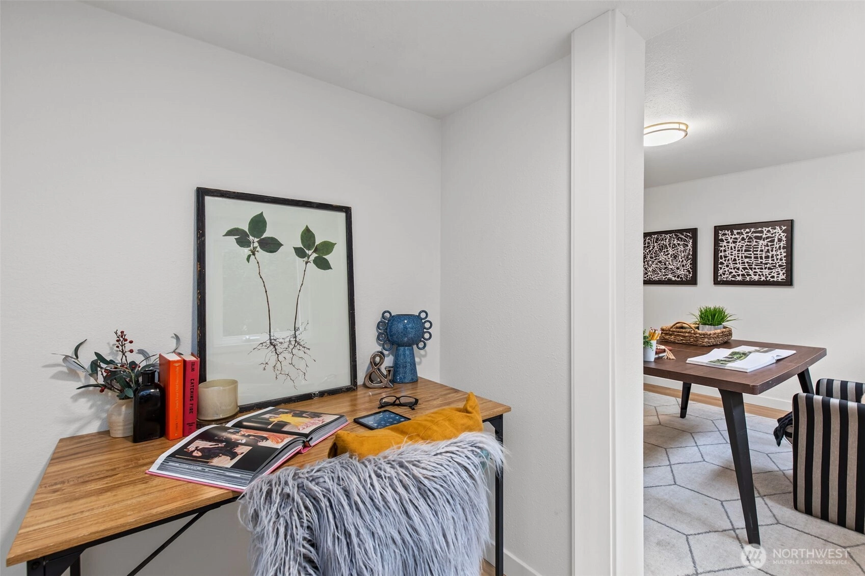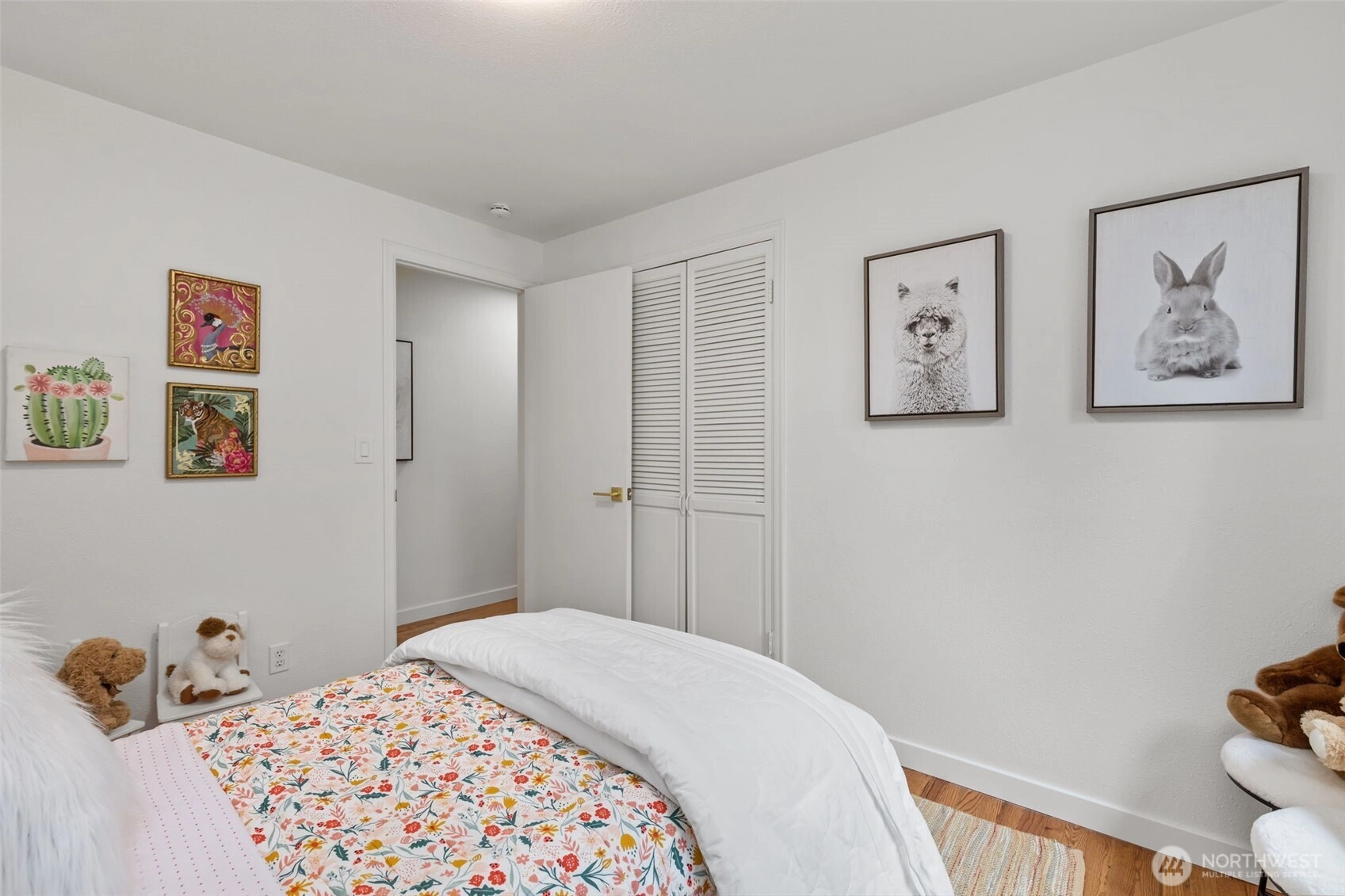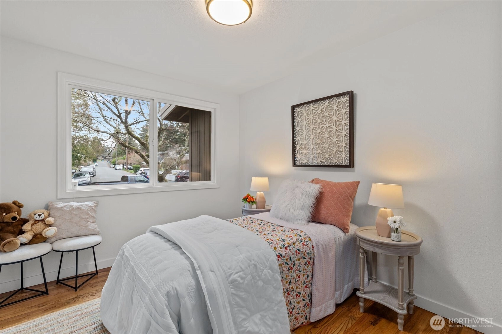 Nestled at the end of a quiet cul-de-sac, this warm and sophisticated Shoreline retreat blends elevated design with effortless livability. Perched on a private lot with woodland views, the home invites you to gather in the bespoke kitchen or unwind on the newly built BBQ-ready deck. Dramatic double-door entry with soaring ceilings sets the tone, opening to hardwood floors that flow throughout the main level. The kitchen is a true showpiece—anchored by a 9' honed quartz waterfall island and wrapped in wood cabinetry with clean, modern lines. Thoughtful mood and task lighting, custom vent hood, designer tile backsplash, and a dedicated beverage station elevate both form and function. A dreamy walk-through butler’s pantry with arched openings, extended cabinetry, generous counter space, wood floors, and a sunny window adds charm and practicality. The spacious living/dining areas continue the airy feel with hardwood floors and abundant windows framing lush greenery. The main-level primary suite offers comfort and privacy, complete w/ ensuite bath featuring a floating vanity and custom tilework. Two addl' bedrooms and a large bathroom w/ skylights complete the main floor. Downstairs, an extended family room/flex space opens to the yard, accompanied by a spacious fourth bedroom, full bathroom, and ample storage. Outside, enjoy refreshed landscaping and new fence. Modern refinement meets everyday comfort in this exquisite space—minutes from parks, dining, and shopping. Welcome home!