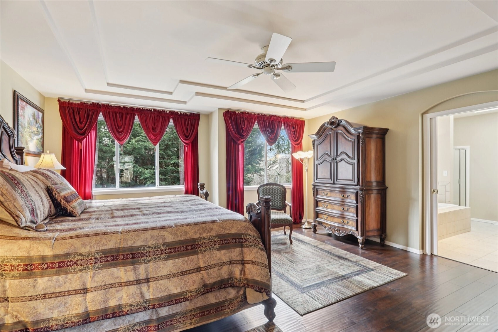 Luxury Living in the Heart of Mill Creek’s Coveted Juniper Community. Welcome to this exceptional 5-bedroom, 3,153 square foot residence, meticulously maintained and beautifully presented. This home makes a lasting impression from the moment you arrive. Perfectly positioned at the end of a quiet cul-de-sac, the home showcases commanding curb appeal and is filled with breathtaking natural light. Inside, soaring vaulted ceilings create an airy, grand atmosphere, while the thoughtfully designed floor plan offers both elegance and functionality. The spacious kitchen, dining nook, and inviting family room seamlessly blend into one expansive living area—ideal for both everyday comfort and effortless entertaining. Upstairs, you’ll find five generously sized bedrooms, including a serene and beautifully appointed primary suite designed for rest and retreat. Step outside to a stunningly landscaped backyard featuring an expansive deck—perfect for hosting gatherings or enjoying your own private outdoor oasis. Located just steps from the scenic trails of the Mill Creek Nature Preserve and minutes from the vibrant Mill Creek Town Center, along with countless parks and walking paths, this home offers the perfect balance of luxury, comfort, and convenience. A rare opportunity to own a pristine home in one of Mill Creek’s most desirable communities.