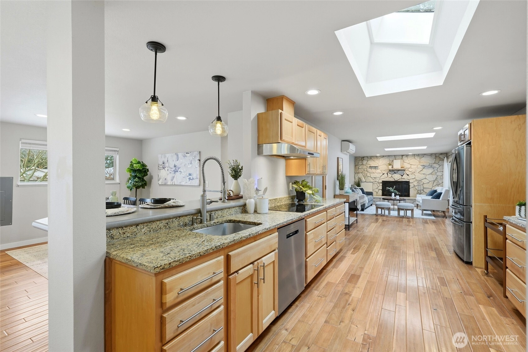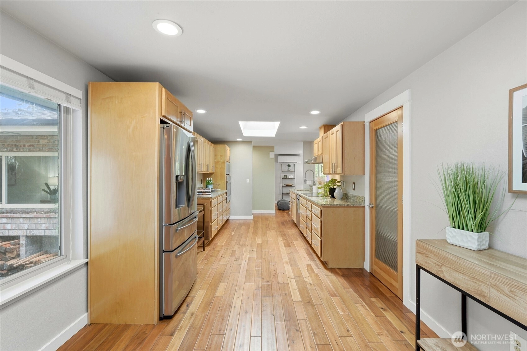 Welcome to easy, single-story living in this charming brick home in Lynnwood near Edmonds College. Discover an ideal blend of comfort, style, and convenience with 3 spacious bedrooms and 1.75 baths. The engineered hardwood flooring adds warmth and elegance, while ductless heating and cooling ensure year-round comfort. Enjoy added attic insulation for greater efficiency and a fully remodeled kitchen that’s perfect for everyday meals and entertaining guests. Outside, you'll enjoy a landscaped yard featuring mature trees, vibrant plants, and flowers with large containers ready for your own flower or vegetable garden. Important updates, like the roof and gutters replaced in June 2025, provide peace of mind and add real value to the home. Located just 3 miles from the light rail and you’ll love being just about 15 minutes from either Seattle or Everett, making commuting and exploring the area effortless. Come see this move-in-ready home in person and imagine how seamlessly your next chapter could fit here.