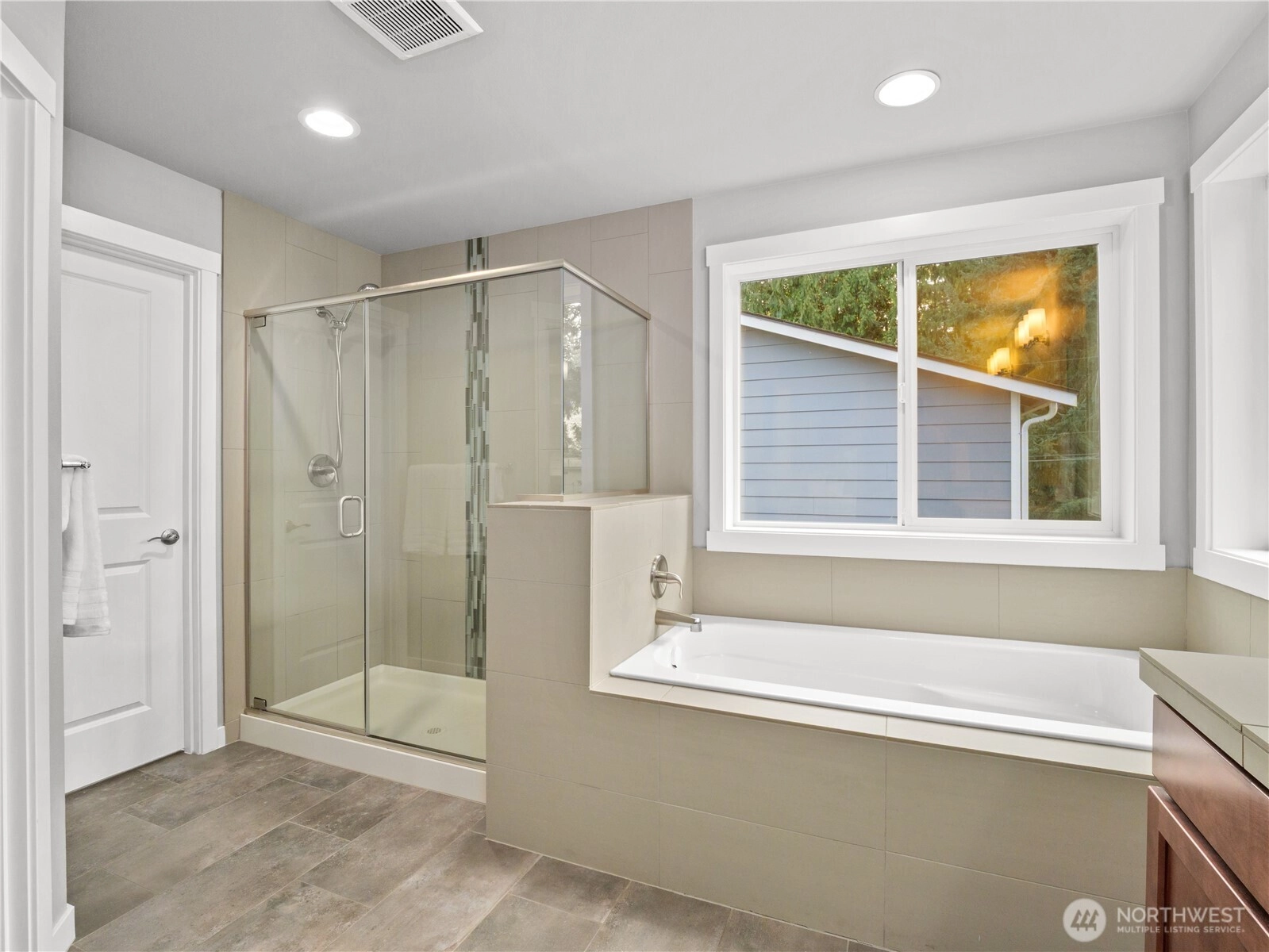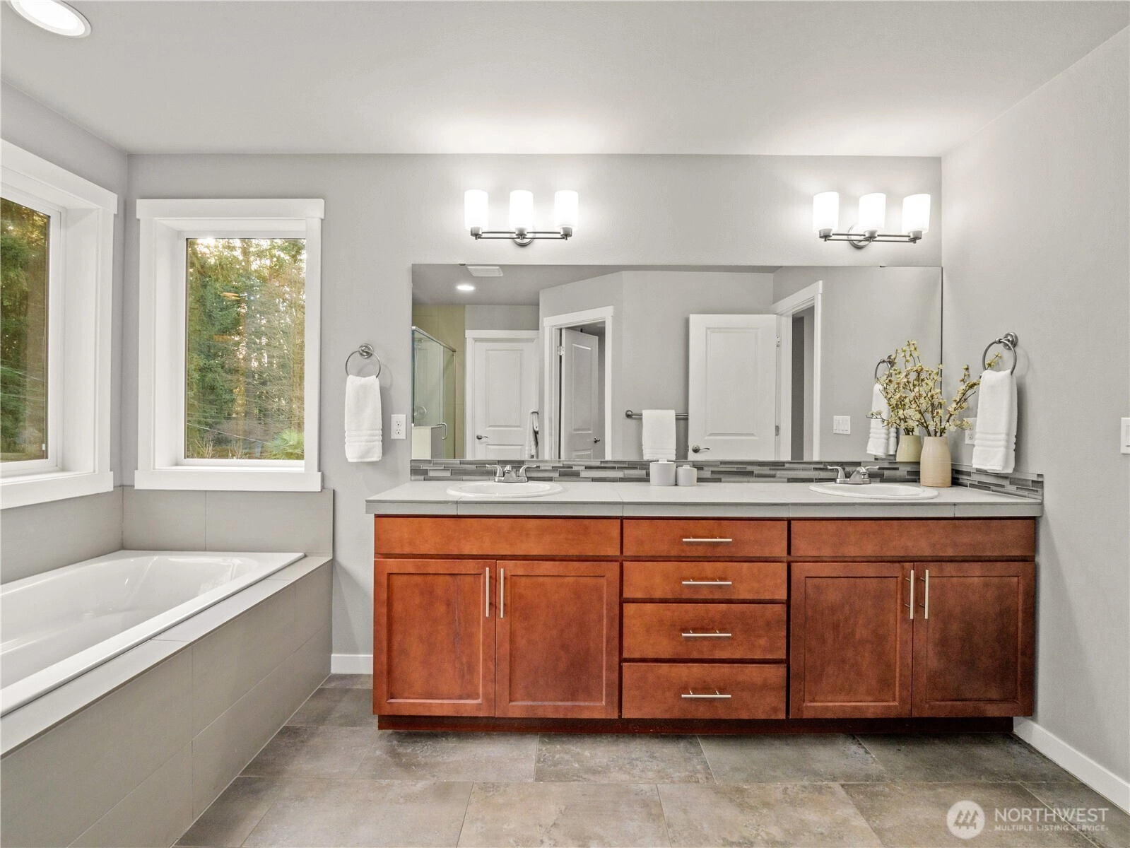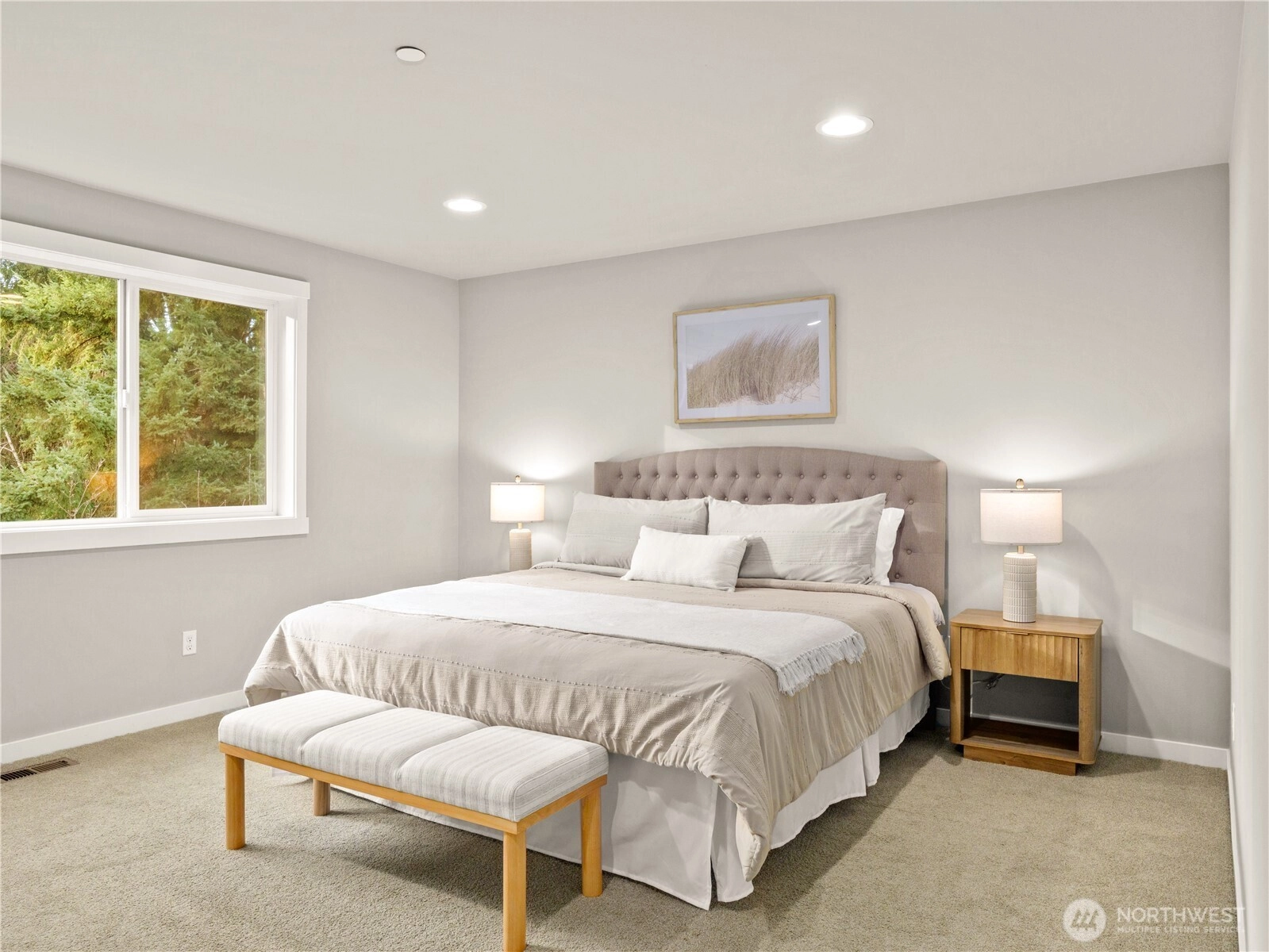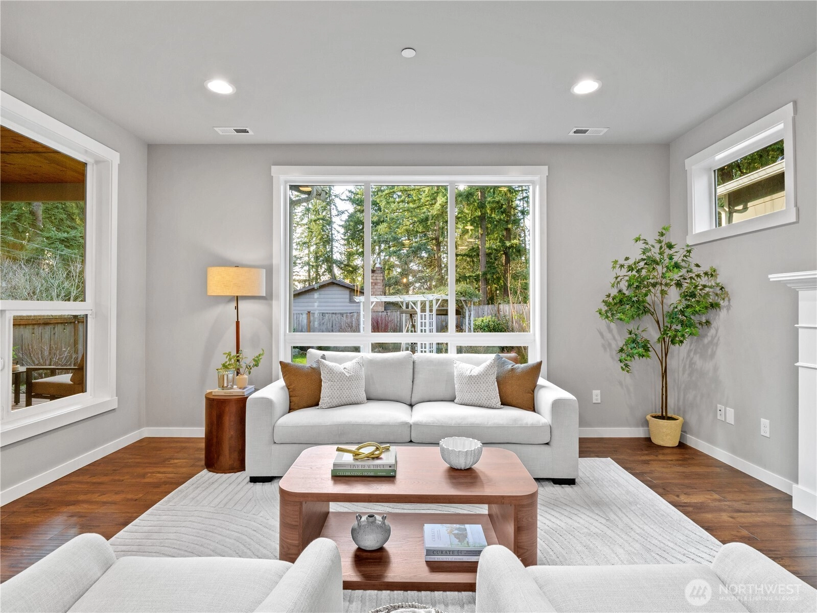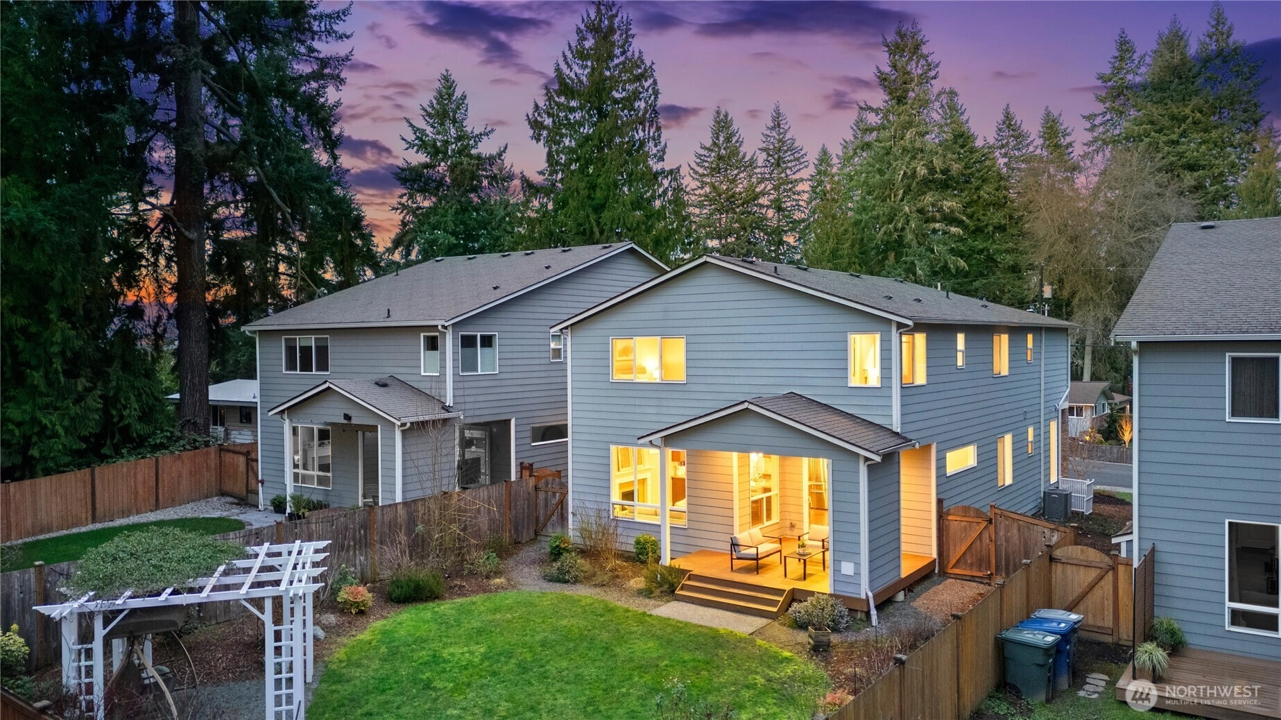 Welcome to modern luxury living in Kenmore within the highly sought-after Northshore School District! This pre-inspected, move-in ready home offers over 2,700+ sq ft of beautifully designed living space featuring a dramatic open-concept floor plan with tons of natural light. Thoughtfully updated with all-new lighting throughout and fresh interior paint, the home feels bright, stylish, and turnkey. Boasting 5 bedrooms, 2.75 bathrooms, and a spacious bonus/flex room. The chef’s kitchen is the heart of the home with a large island, stainless steel appliances, generous cabinetry, big pantry, and seamless flow into expansive living and dining areas—perfect for entertaining. Enjoy year-round comfort with central A/C and an oversized 2-car garage with tall ceilings and ample storage. Step outside to a beautifully landscaped, fully fenced, low-maintenance backyard perfect for all occasions. Conveniently located near parks, scenic trails, shopping, dining, and easy commuter access to Bothell, Kirkland, and Bellevue. A rare opportunity to own a spacious, updated Kenmore home in a top-rated school district!