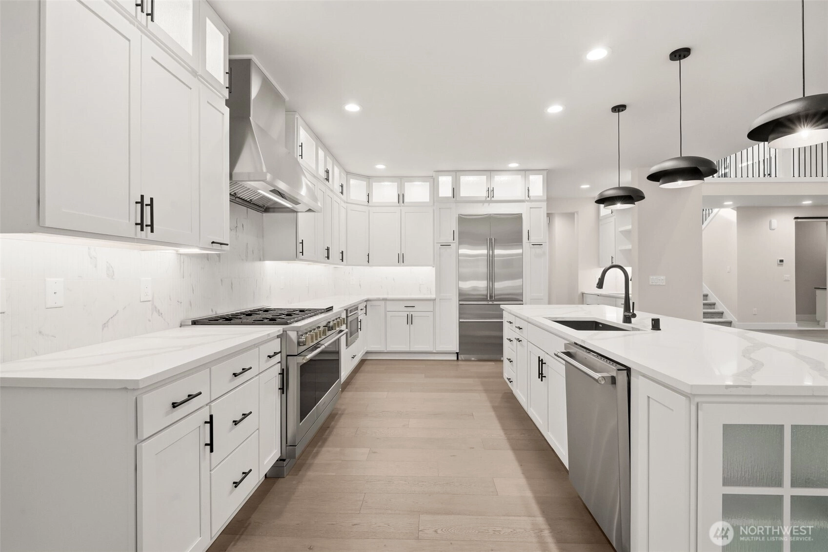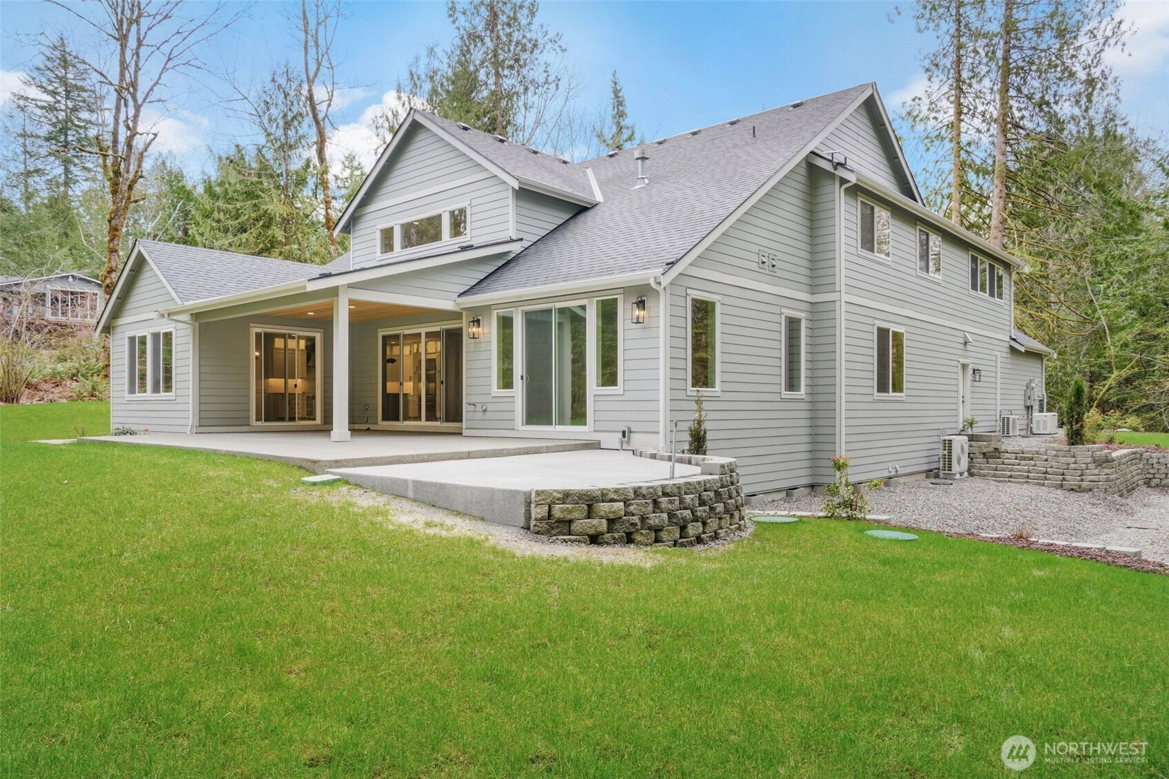 Stunning new construction residence nestled on a picturesque 1-acre setting in West Olympia. Spanning 4,035 SF, this home blends luxury and livability with thoughtful, high-end design throughout. The chefs kitchen features quartz countertops, a GE Monogram appliance package, oversized island with display shelving, custom White Maple cabinetry with pull-outs, under-cabinet lighting, and a butlers pantry with beverage cooler. Soaring cathedral ceilings and a linear fireplace flanked by built-ins anchor the great room in style. The main-level primary suite offers a private retreat with vessel tub, full tile shower, quartz counters, and direct patio access. Additional highlights include a 26kW standby generator, mini-split heat & A/C in the garage, RV parking, and hot tub-ready setup. Fully landscaped and irrigated, this exceptional property is designed for comfort, connection, and effortless Northwest living welcome home. Home is surrounded by beautiful forest views. Located on dead in road in beautiful Cooper Point