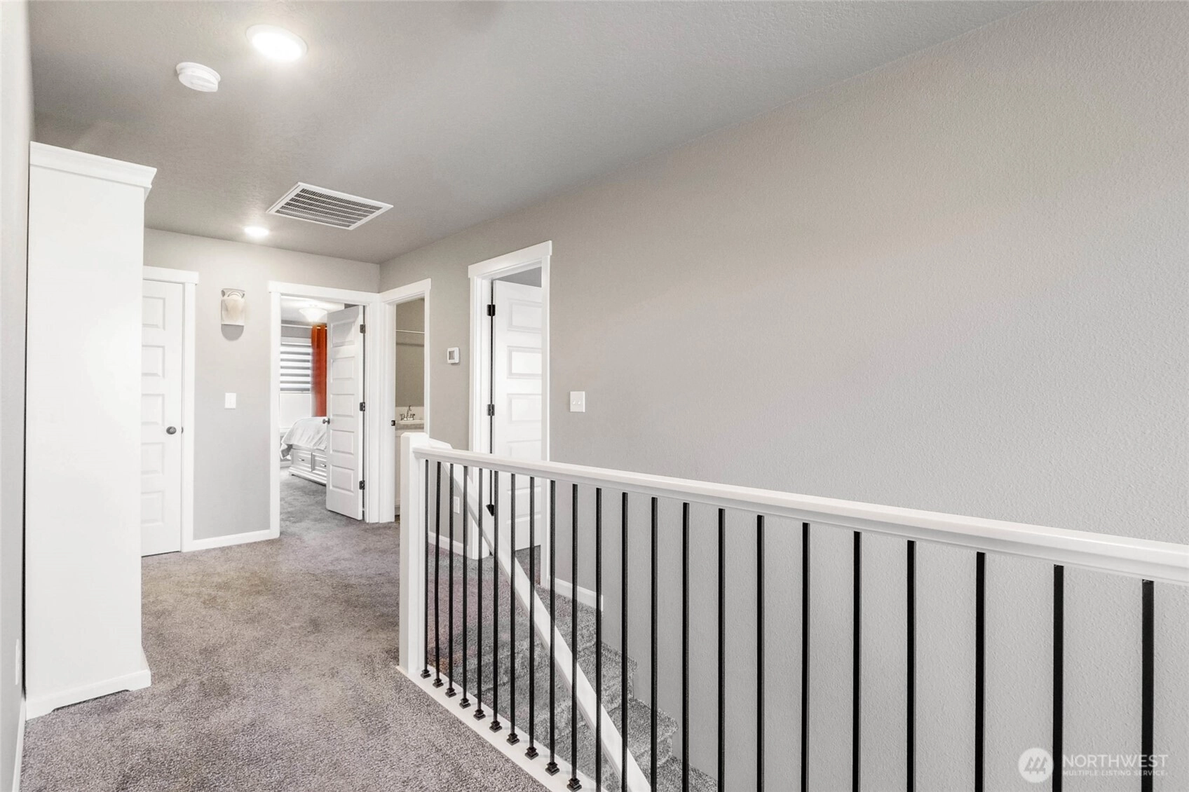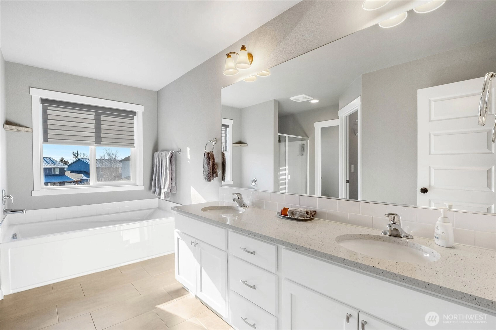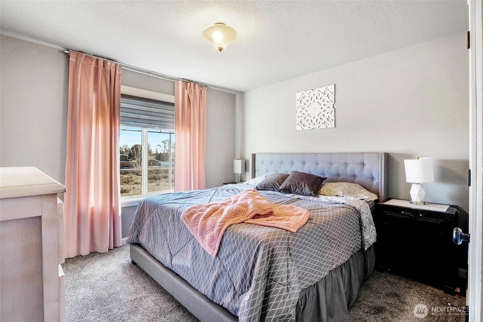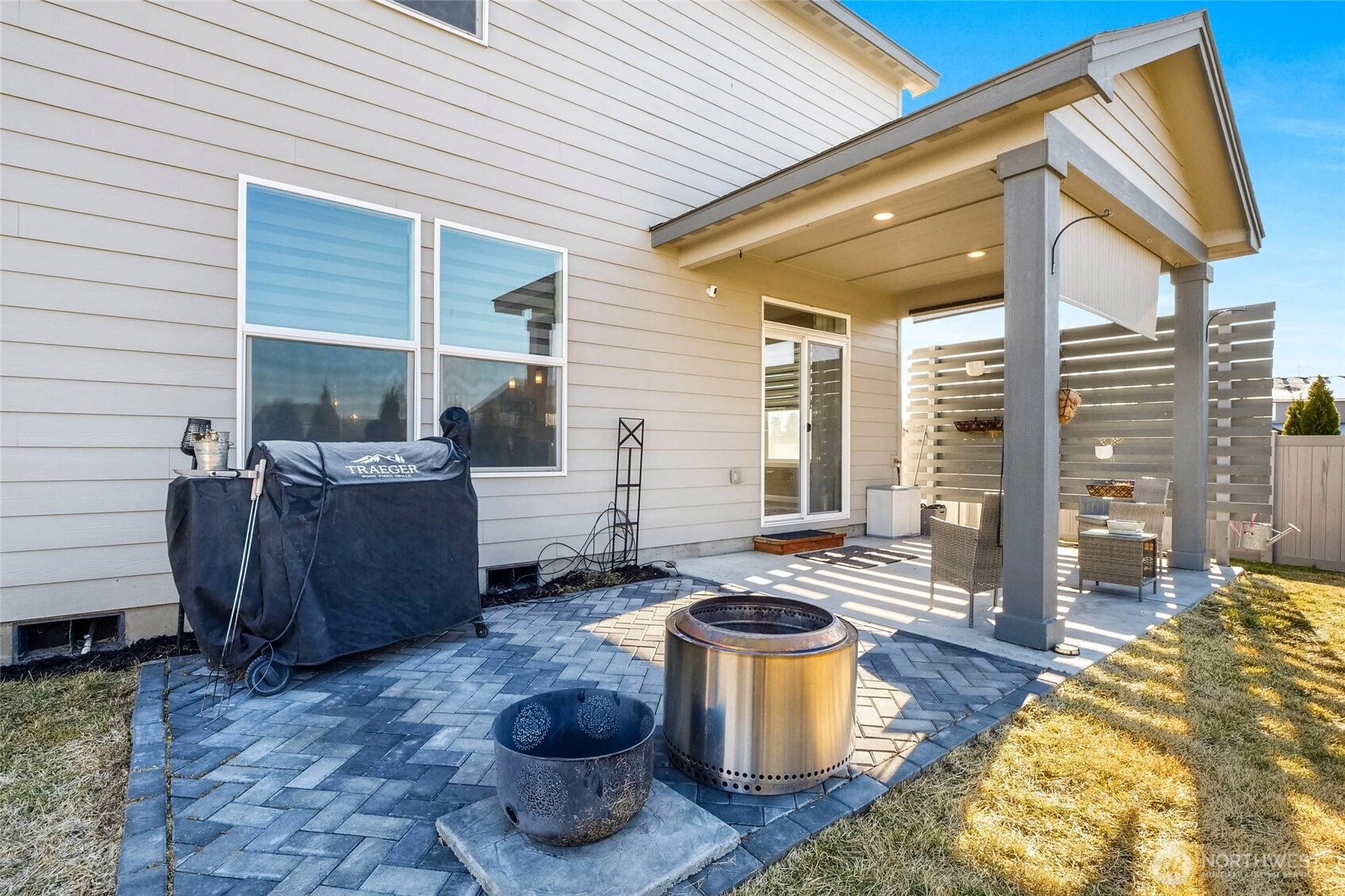 Built in 2020 and impeccably maintained, this stylish modern home sits on a desirable corner lot in a fabulous neighborhood just steps from a 5-star golf course with clubhouse and restaurant. Offering 2,372 sq ft, this 4 bedroom, 2.5 bath home features a versatile den/flex space perfect for a home office or bonus room. The bright kitchen showcases quartz countertops, on-trend white cabinetry, stainless appliances, under-cabinet lighting and is open to the living space with LVP flooring and a cozy electric fireplace. The spacious primary suite includes a luxurious 5-piece en suite bath and generous closet space. Enjoy outdoor living on the covered back patio overlooking the fully fenced yard with UGS. Custom blinds throughout, washer & dryer included. An expansive 5-car garage with epoxy floor provide both style and function for the mechanic, car restoration, artist, toys, boat, workshop or home gym. Close to Blue Heron Park for recreation and water sports with easy I-90 access—this home truly offers the perfect blend of comfort, convenience and lifestyle.