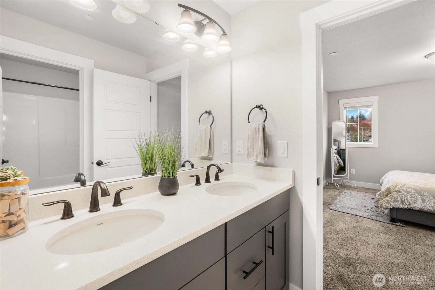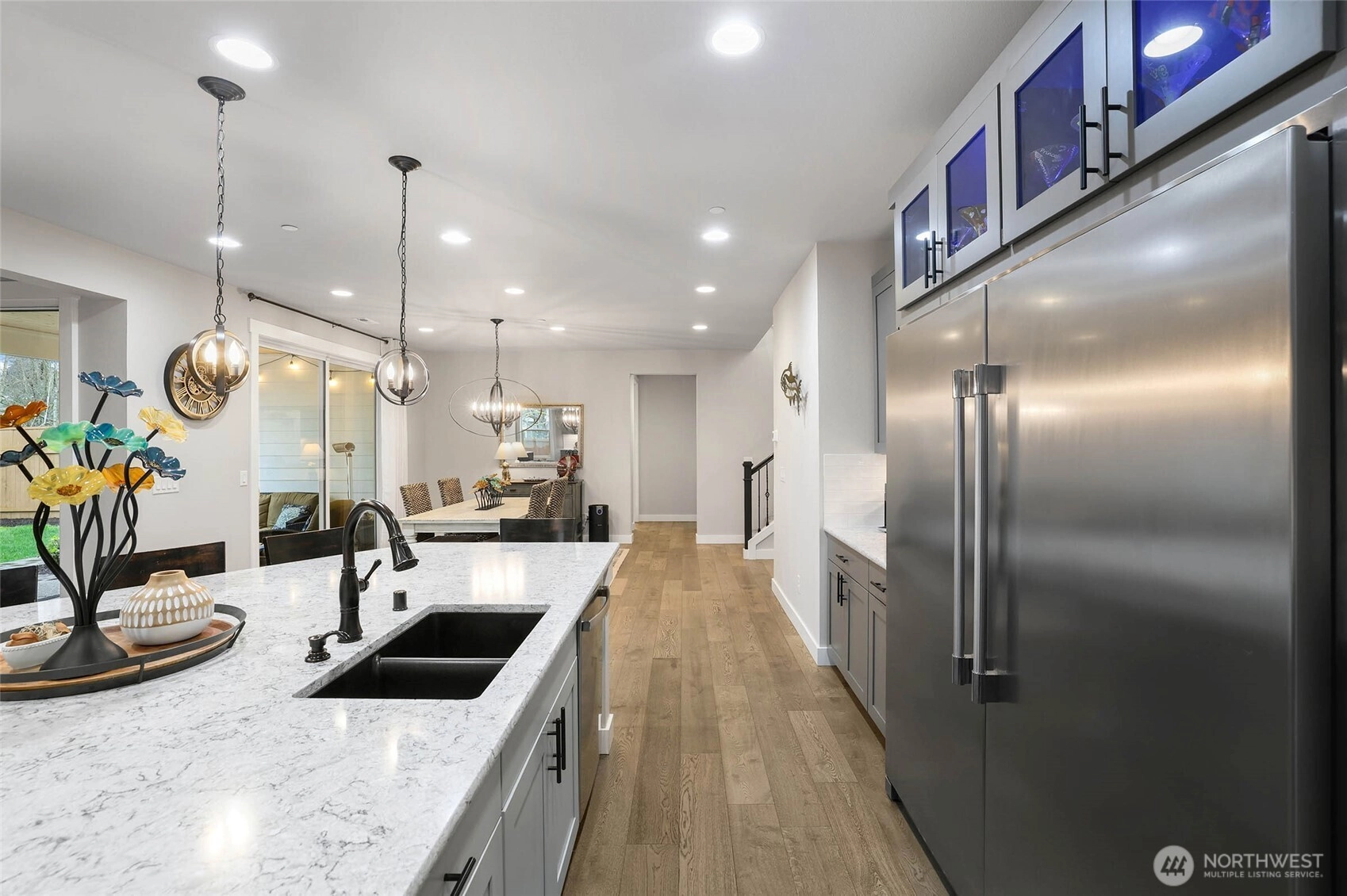 Discover a rare level of luxury in The Reserve at Silver Brook, where over $150,000 in curated upgrades transform this residence into something truly exceptional. Designed for both everyday comfort and unforgettable entertaining, the open-concept layout centers around a stunning gourmet kitchen featuring a chef’s refrigerator, expansive quartz island, and premium finishes that invite gathering, connection, and celebration. A main-floor guest suite with full bath offers flexibility for guests or multi-generational living. Upstairs, the expansive primary suite is a true retreat, featuring a spa-inspired bath with dual vanities, oversized walk-in shower, and an impressive walk-in closet. Walls of windows draw in natural light throughout while the seamless transition from indoor living to the covered outdoor patio creates a natural extension of the home—perfect for warm summer evenings, morning coffee, or hosting under the stars. Beyond, a generous and private backyard with firepit offers space to relax, unwind, and enjoy the beauty of the Pacific Northwest year-round. Every detail reflects quality and intention, delivering a sense of luxury that is both welcoming and functional. Ideally located just minutes to downtown Puyallup, top-rated schools, dining, shopping, and convenient freeway access, this home offers the rare combination of privacy, convenience, and elevated design in one of the area’s most desirable communities. This is more than a home—it’s a lifestyle.