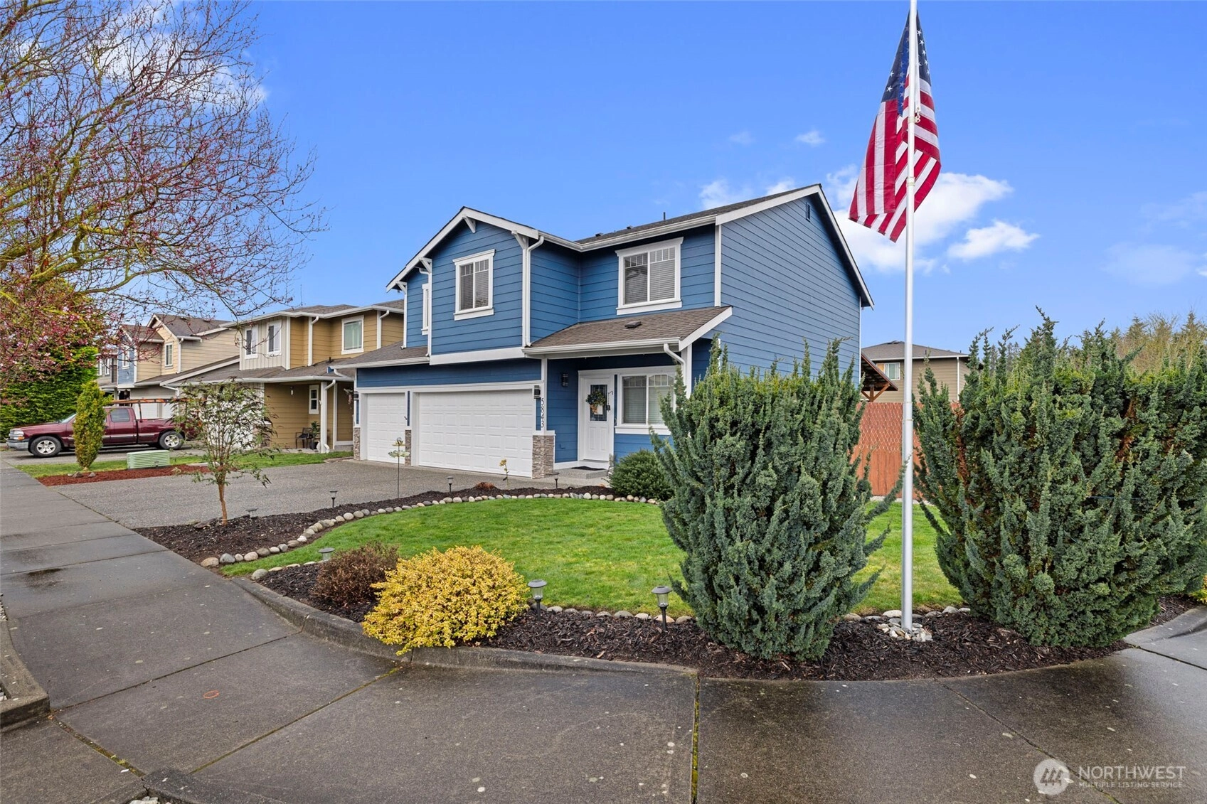 Spacious 5-bedroom home on a corner lot for comfort and function. Freshly painted interiors & brand-new carpet create a clean, move-in-ready feel, while ceiling fans in every bdrm & air conditioning keep the home comfortable year-round. The open layout provides flexible living spaces ideal for gatherings, everyday living, or work from home. The large primary suite features a huge walk-in closet, creating a relaxing retreat w/ plenty of storage. Step outside to enjoy the huge covered deck that runs the full length of the house, perfect for entertaining in any season. The fully fenced yard includes a side garden area, flag pole, & room to play, relax, or host summer get-togethers. The fire table and patio furniture stay, making it easy to settle in & start enjoying the outdoor space right away. Practical upgrades add comfort & efficiency, including a tankless water heater, remote-start generator for peace of mind, & suspended storage in the 3-car garage to help keep everything organized. Charming backyard shed with electricity — ready for crafts, projects, or quiet retreat. Parking & storage make this home as functional as it is inviting. Located in a community w/ a neighborhood playground & friendly atmosphere, home offers convenient access to local parks, schools, shopping, dining, & everyday amenities. Commuters will appreciate the easy drive to Boeing, quick I-5 access, & convenient routes heading north toward Arlington, & beyond, this a great location for both work & play.