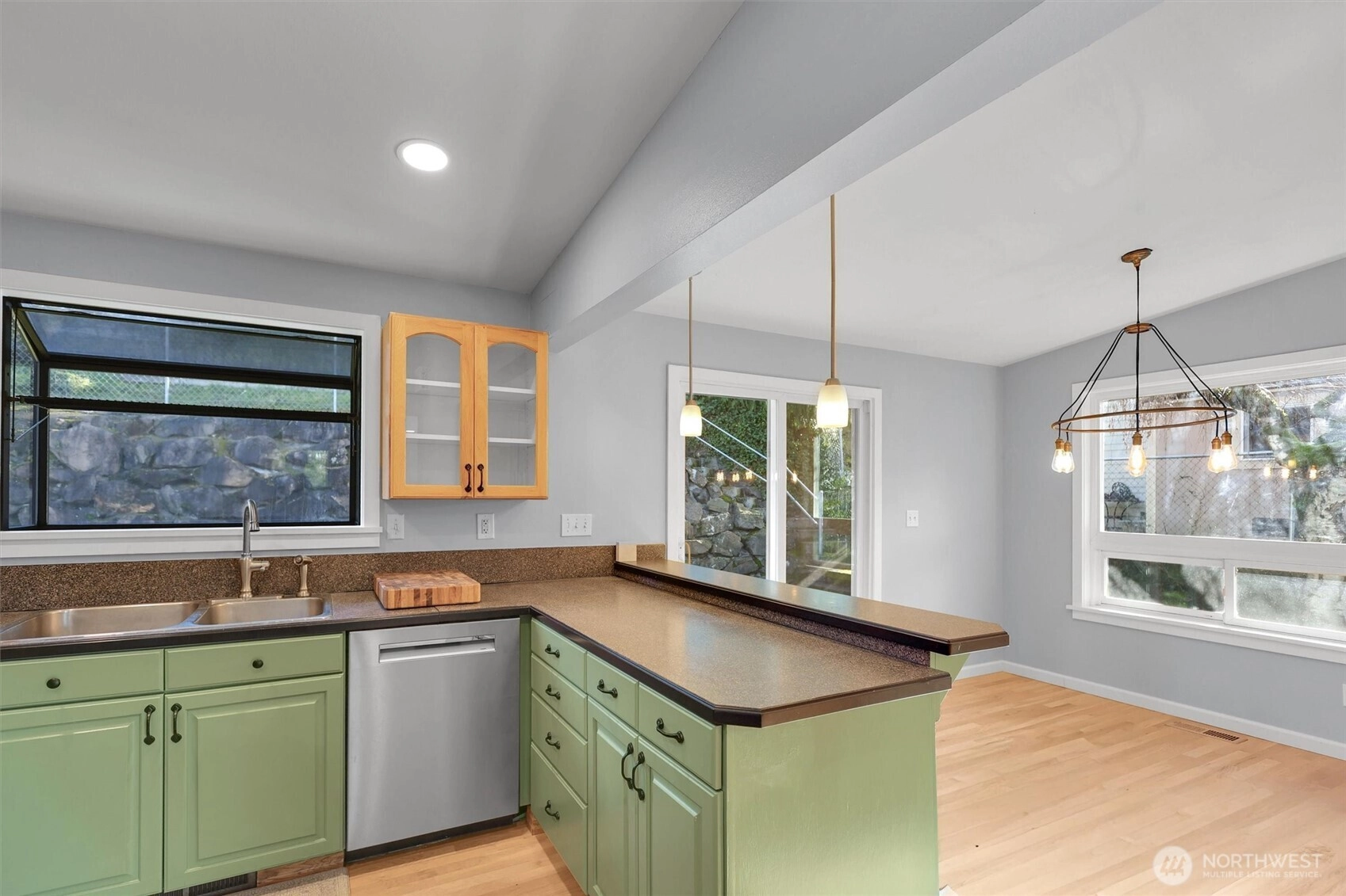 This handsome split level has been given a complete facelift by loving owners over the past 10 years. Vaulted ceiling living room with a floor to ceiling feature fireplace opens to a remodeled kitchen with stainless appliance suite. Fresh paint, remodeled bathrooms and updating throughout. The new metal roof is a mere 3 yrs old and boasts new roof decking & insulation. Second fireplace in family room with light and bright recessed lighting package. Oversized 7600+ sq ft lot is terraced for a high off-street perch that feels private and serene. Olympic Mtns visible from back of lot. Studio room in lower level offers potential for 5th bdrm. Additional storage room off family room offers a myriad of possibilities too. Plenty of room to park multiple vehicles off street. Nearby parks include Westcrest Park, Highland Park Playfield and Roxhill Park.