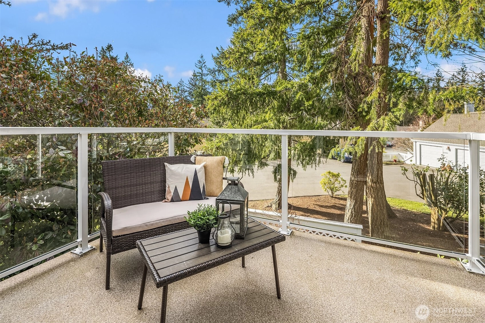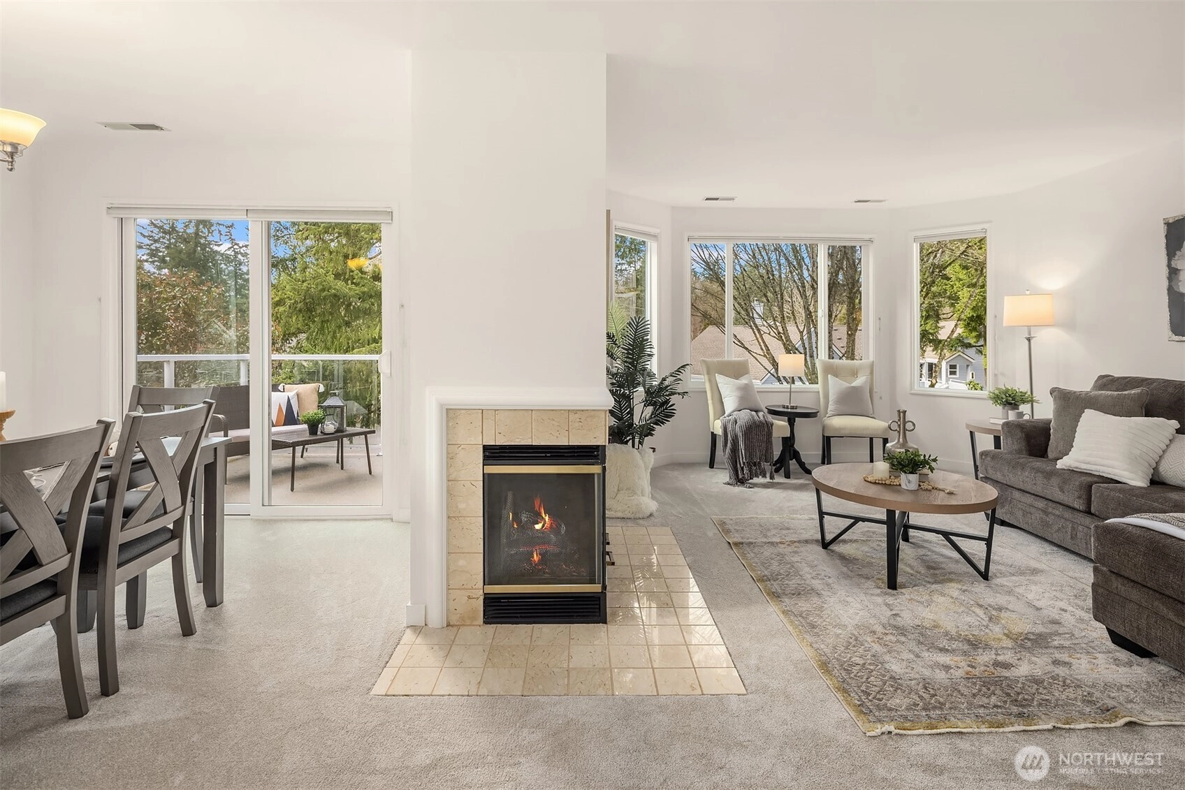 Value priced, light-filled two bedroom, two bath single-level condo in Meadow Village at Providence Point with peaceful territorial views. Freshly painted with brand-new carpet throughout, this home offers a clean and comfortable space ready for your personal touch. The welcoming living room features a cozy gas fireplace and opens to the dining area, where large picture windows bring in abundant natural light. Step out to the private deck—an ideal spot for morning coffee or relaxing evenings. The galley kitchen provides ample cabinetry, stainless steel appliances, and plenty of storage. The spacious primary suite includes an en-suite ¾ bath and double closets, while the second bedroom and additional ¾ bath offer flexibility for guests or a home office. A full laundry room and detached garage add everyday convenience, with flat, paved access to the home. Tucked away on a quiet cul-de-sac near community amenities. Active 55+ Providence Point is known for its vibrant lifestyle, featuring an indoor pool and spa, fitness center, walking trails, pickleball and tennis courts, clubhouse, library, garden space, social clubs, classes, events, and a shuttle to local shopping. You'll want to see this one ASAP!