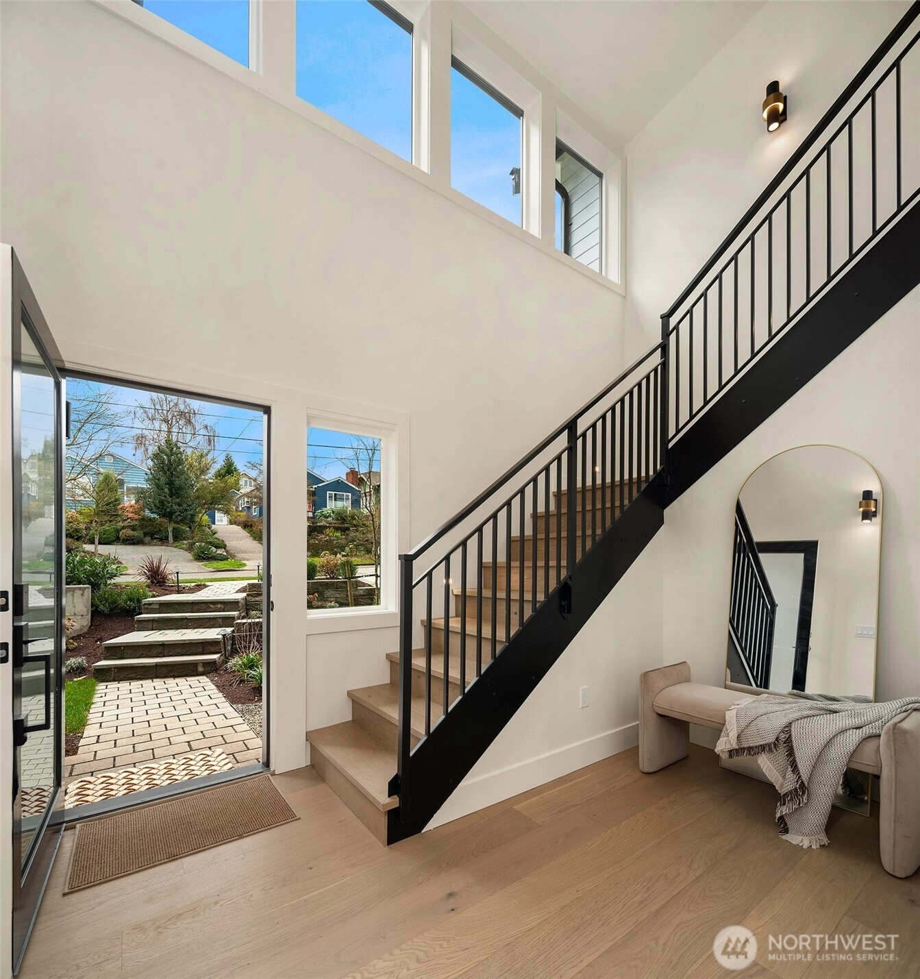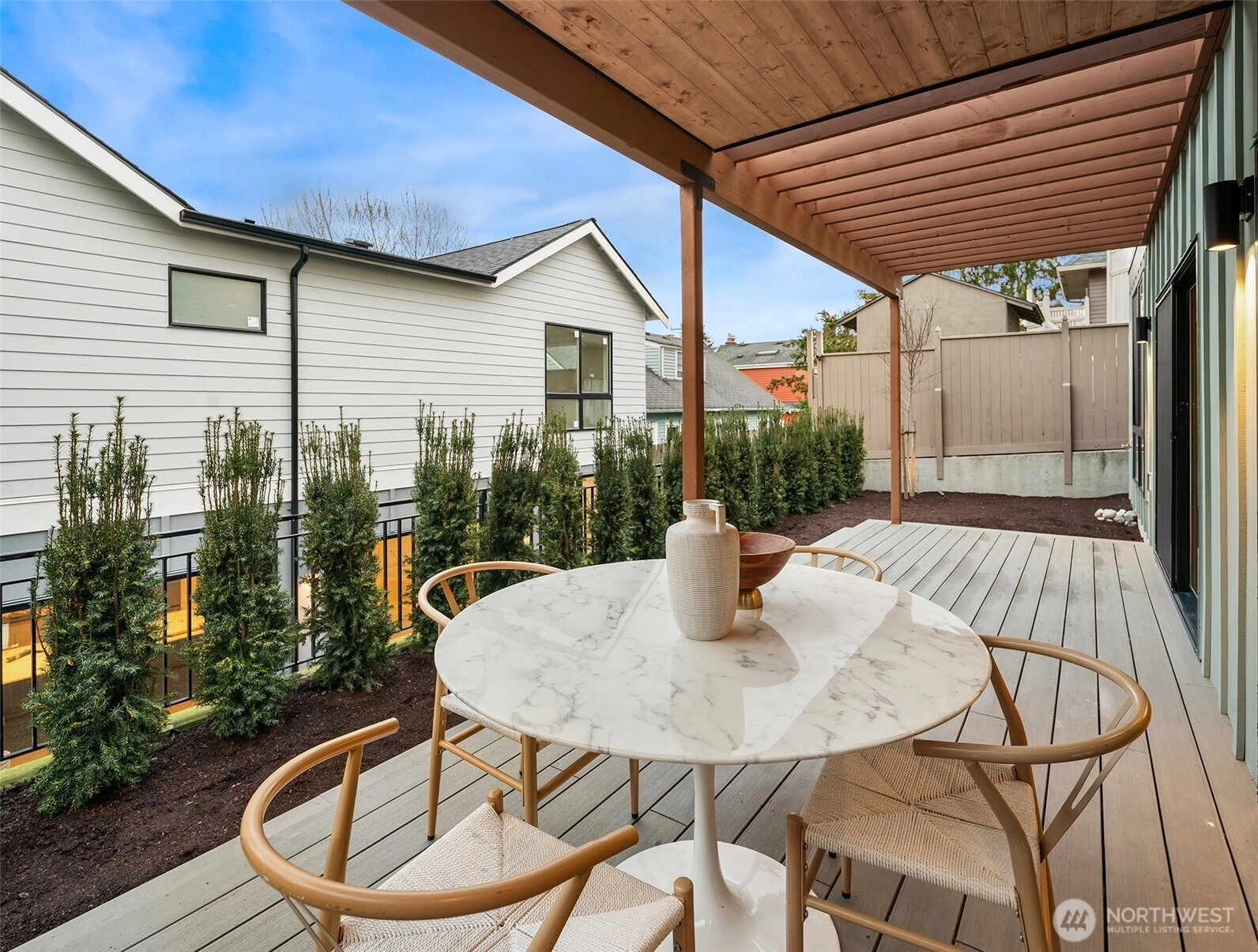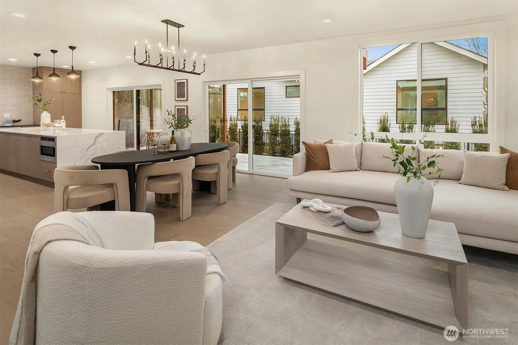 Welcome to your Wallingford dream home! Upon opening the front door, take in a two-story entry with a stunning chandelier and thoughtful drop zone. Through the foyer, enter to the spacious great room that looks out onto a large deck, perfect for grilling or relaxing after a busy day. An oversized center island with a beautiful quartz slab is the focus of the well-designed kitchen, also featuring a 6-burner range and a built-in desk. Abundant storage and plenty of natural light make this kitchen a great place to cook and gather. A convenient main floor bedroom and attached bath allow for multiple uses, perfect for guests or work from home space. Off the foyer, wander up the open-rail stairs where you’ll find a wonderfully laid out four bedroom plus 2 bath design, with the primary bedroom and bathroom made to wow. Upstairs living quarters are completed by a great laundry room and large storage closet. Attached garage and driveway take the guess work out of parking. Live minutes to extensive dining, coffee & boutiques. Recreation abounds with proximity to Green Lake, Burke-Gilman Trail & Gasworks Park. Plus, moments to Univ of WA, Fremont tech & outdoor industry employers, with north-south corridor access for effortless Sound travel.