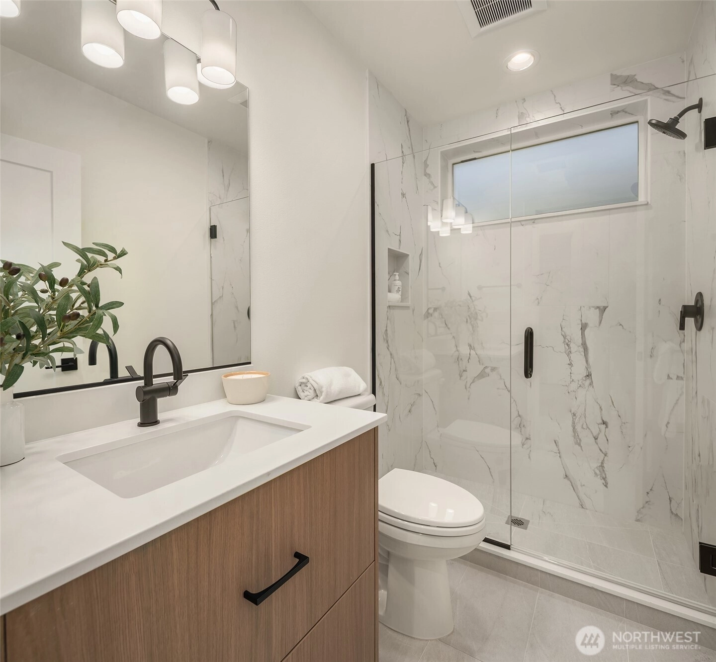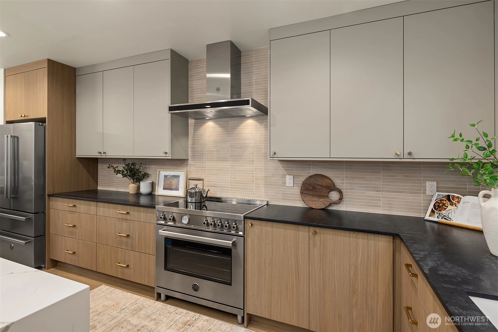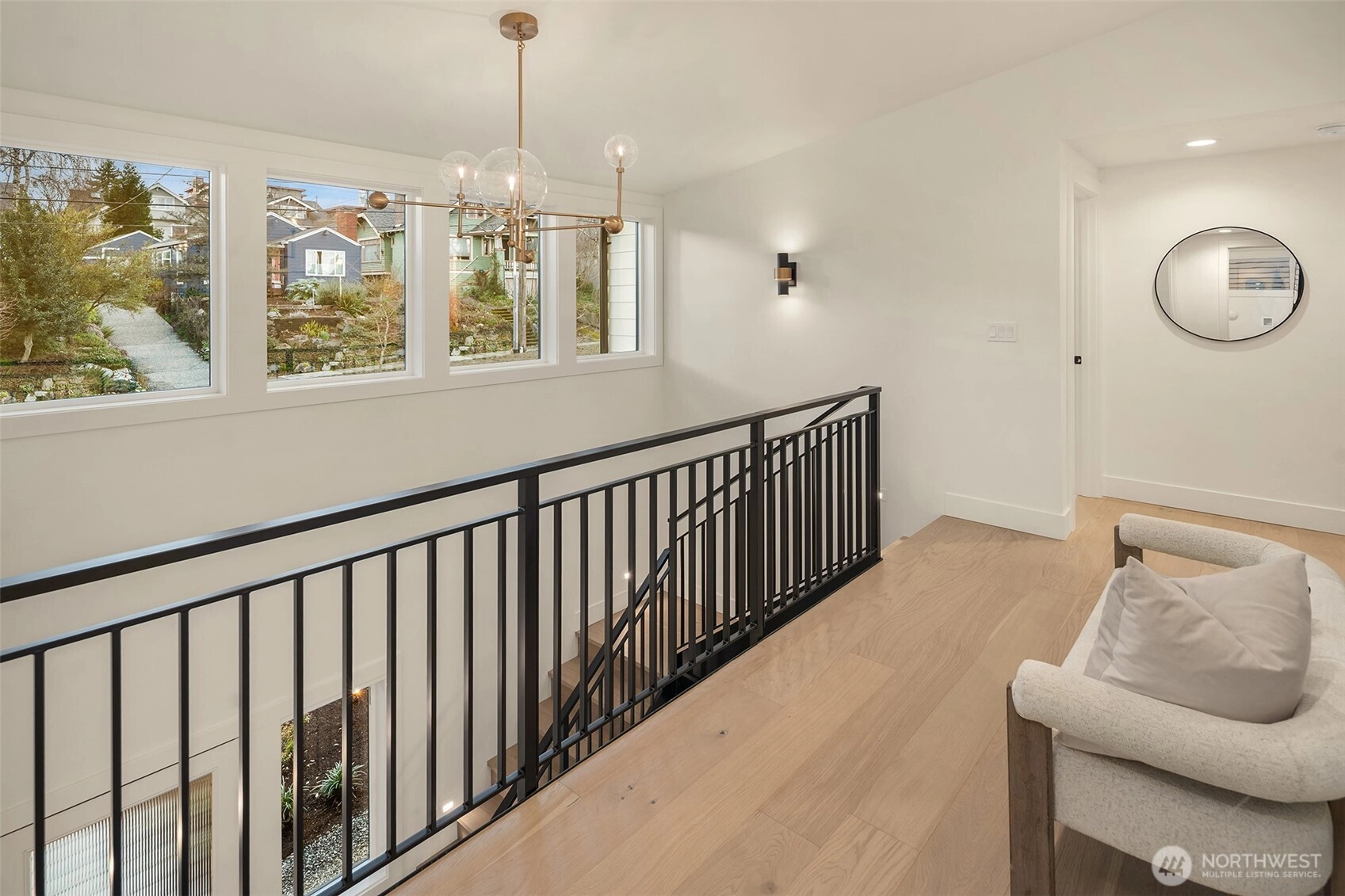 Welcome to your Wallingford dream home! Upon opening the front door, take in a two-story entry with a stunning chandelier and thoughtful drop zone. Through the foyer, enter to the spacious great room that looks out onto a large deck, perfect for grilling or relaxing after a busy day. An oversized center island with a beautiful quartz slab is the focus of the well-designed kitchen, also featuring a 6-burner range and a built-in desk. Abundant storage and plenty of natural light make this kitchen a great place to cook and gather. A convenient main floor bedroom and attached bath allow for multiple uses, perfect for guests or work from home space. Off the foyer, wander up the open-rail stairs where you’ll find a wonderfully laid out four bedroom plus 2 bath design, with the primary bedroom and bathroom made to wow. Upstairs living quarters are completed by a great laundry room and large storage closet. Attached garage and driveway take the guess work out of parking. Live minutes to extensive dining, coffee & boutiques. Recreation abounds with proximity to Green Lake, Burke-Gilman Trail & Gasworks Park. Plus, moments to Univ of WA, Fremont tech & outdoor industry employers, with north-south corridor access for effortless Sound travel.