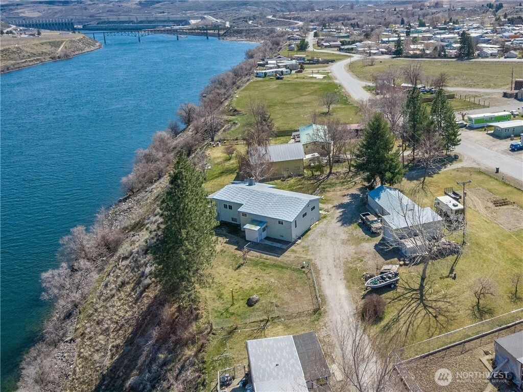 Sitting on the upper bank of the Columbia River, in the small Sportsman's Paradise of Bridgeport, is your next home. The property literally boarders the Columbia River, the fishing is a destination of folks far and near. This 5 bedroom, 3 bath home is on nearly an acre of land in the heart of Bridgeport, the sweet spot of Douglas County. The views from the main floor deck are unobstructed. Enjoy nature's sunsets & the rising of the spectacular sun , both are visible from one spot. This nearly 3000 sf house needs some tender loving care. It has sturdy steel reinforced bones but it's make-up has taken a beating over the years. Cosmetics as we all know usually don't amount to much and they are different for each of our taste...Bring your imagination and your desire to get away from it all, escape to Bridgeport for your new get a way or your next long term life. Guided fisherman fill the waters below with fisherman and women eager for an adventure & to fill their limits....the next owner of this property will not need a guide or a boat to cast your line into the mighty Columbia. Could it get any better than this? Cast your life's line in this direction and begin your next great adventure! This property may qualify as a short term rental, buyer to confirm through due diligence. Besides all of the above, the house has two kitchens, two laundries, all appliances included. Much storage is on site with multiple outdoor structures and a designated well for irrigation needs.