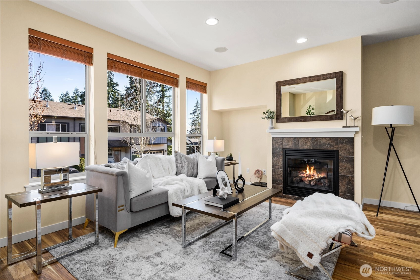 Light-filled townhouse with an ideal layout and fresh updates throughout. Enjoy new interior paint and carpet, spacious bedrooms, and abundant natural light. Main floor enjoys beautiful wood flooring, Chef’s kitchen with great storage, abundant counter space, and great room living with 9-foot ceilings and gas fireplace. Bedrooms are conveniently located upstairs, with primary featuring vaulted ceilings and custom walk-in closet. The lower-level bonus space offers flexibility for a home office, gym, media room, or guest area. One+ car garage adds everyday convenience and lots of extra storage. Easy access to I-5 makes commuting simple. Minutes to shopping, restaurants, and parks. Move-in ready and beautifully refreshed—this home offers comfort, location, and versatility. PET FRIENDLY!