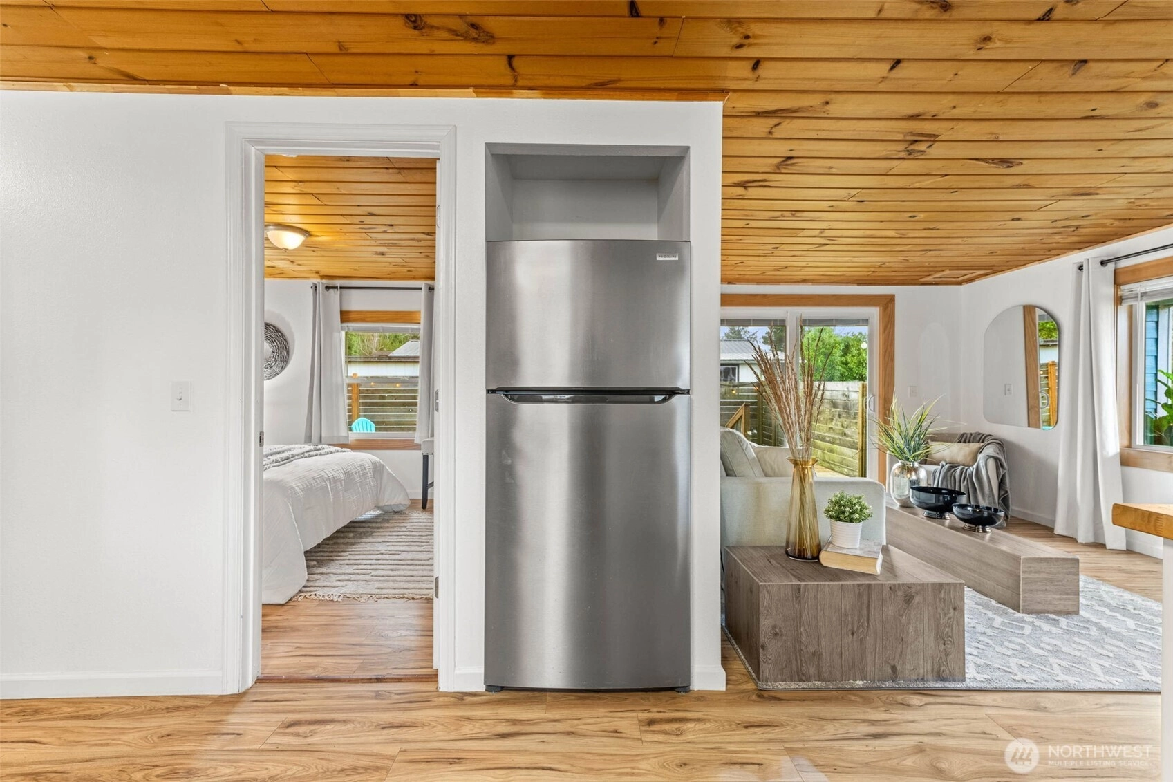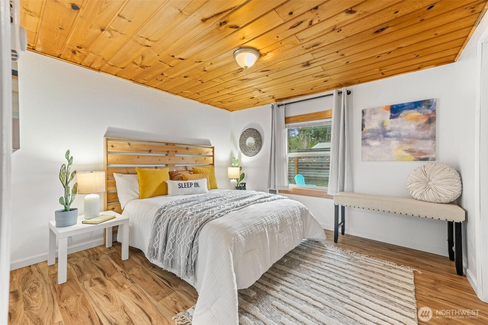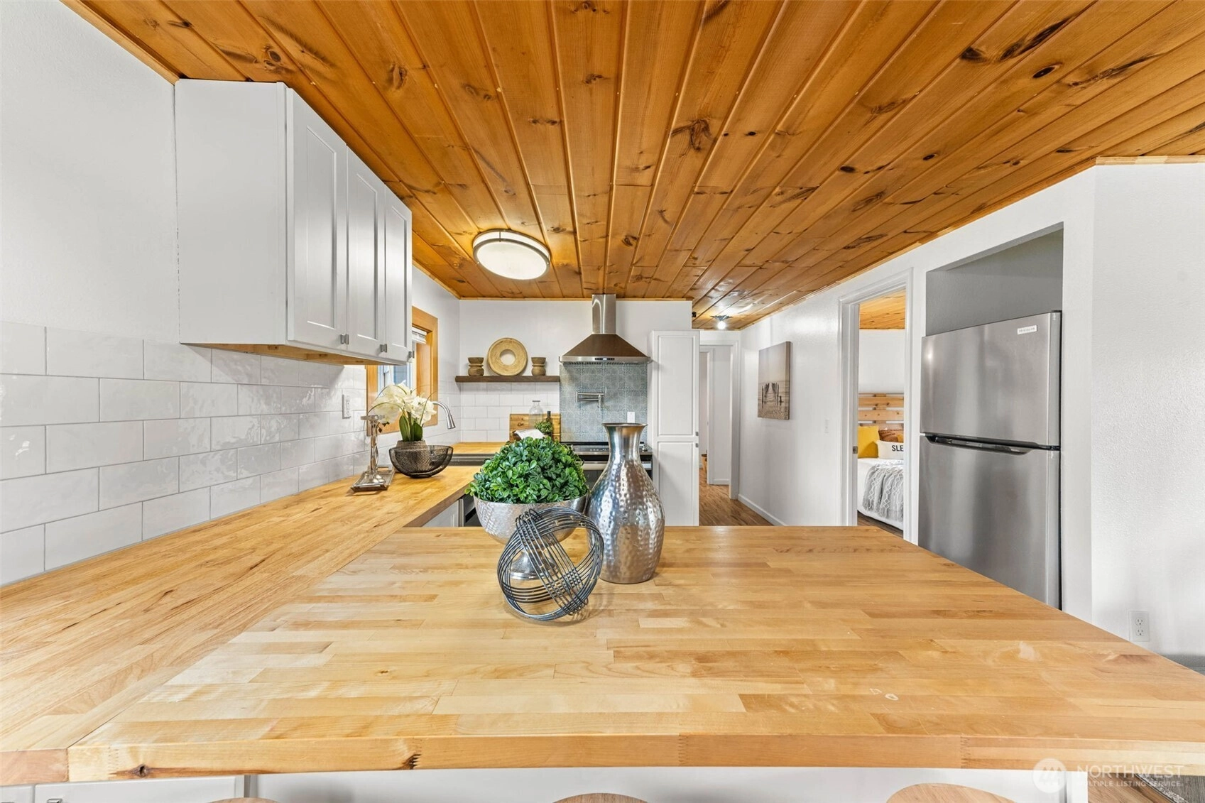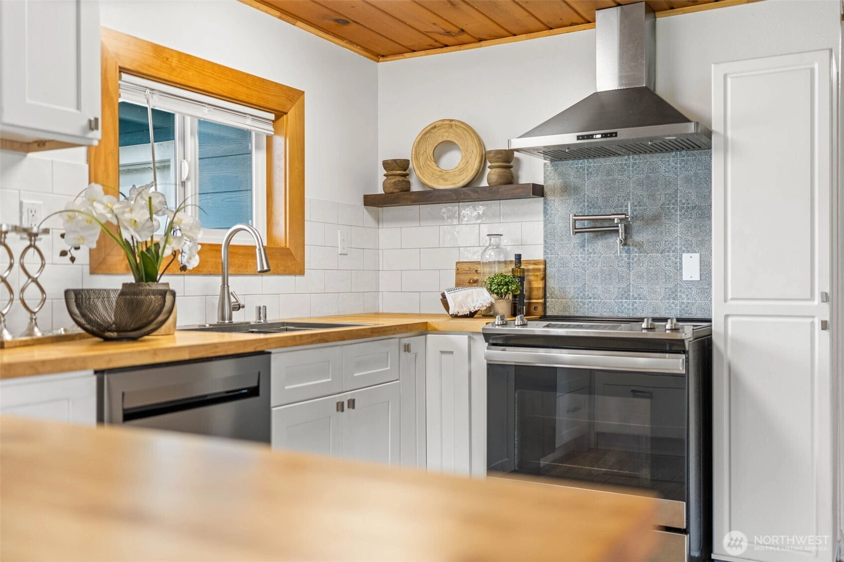 Beautifully updated rambler! This thoughtfully refreshed home showcases new interior paint, charming tongue-and-groove ceiling accents, and durable LVP flooring throughout. The open-concept living area offers seamless flow, featuring a sliding door that leads to the back deck and an inviting kitchen designed for both style and functionality. The kitchen is equipped with stainless steel appliances, crisp white cabinetry, and butcher-block countertops. The home includes three generously sized bedrooms and a full bathroom highlighted by striking tile feature walls, a floating toilet, and a shower/tub combination. A fully finished one-car garage provides additional storage along with a dedicated utility space for laundry. Outside, a spacious front lawn welcomes you, while the fully fenced side yard offers a private retreat complete with a deck, stone and gravel pathways, and a cozy fire pit. Recent upgrades include a newer roof, plumbing, electrical, windows, and siding. With RV parking and ample driveway space, this property delivers convenience and peace of mind. An ideal opportunity for first-time homebuyers or investors, offering strong short-term and long-term rental potential, and perfectly suited for use as a vacation home! An exceptional opportunity you won’t want to miss!