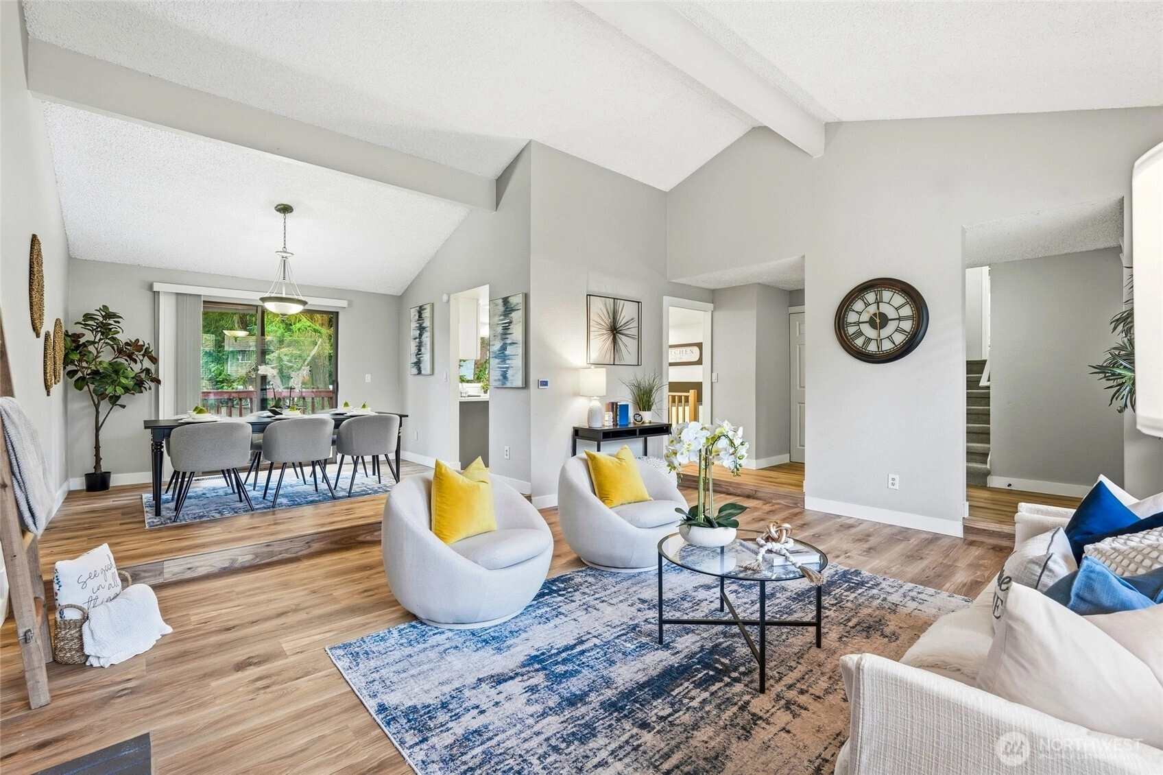 Welcome home to Ridgewood in Bothell! Vaulted ceilings and abundant natural light greet you in the formal living room with cozy fireplace, open dining area with slider to deck, perfect for morning coffee, and an efficient and beautiful kitchen with custom colored cabinetry, gleaming countertops, and newer appliances including refrigerator, range, microwave with hood, and dishwasher. Spacious lower level family room with slider to beautifully landscaped, sweeping backyard. Lower level bedroom and full bath provide excellent space for work from home or guest suite. Main bedroom upstairs with en suite and walk-in closet, plus two additional well-appointed bedrooms. Move in with confidence knowing the home features a newer roof (2022), water heater (2021), and furnace with air scrubber (2019). Charming details such as a covered front porch with views of lush front landscaping and stamped concrete patio in back elevate your outdoor enjoyment year-round. Two-car garage with built-in storage, sizable driveway, and street parking provide ample room for everyone. Located in an established neighborhood, walking distance to top-rated schools, and just minutes to amenities, this home offers the perfect combination of comfort, style, and convenience. Do not miss this opportunity to live, work, and play in Ridgewood!