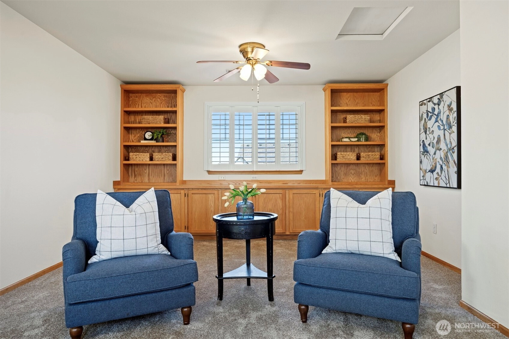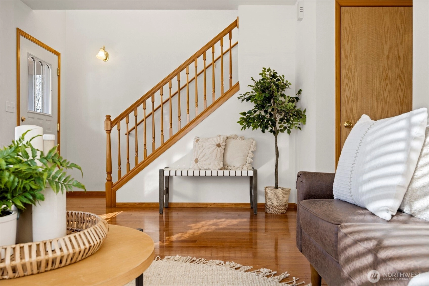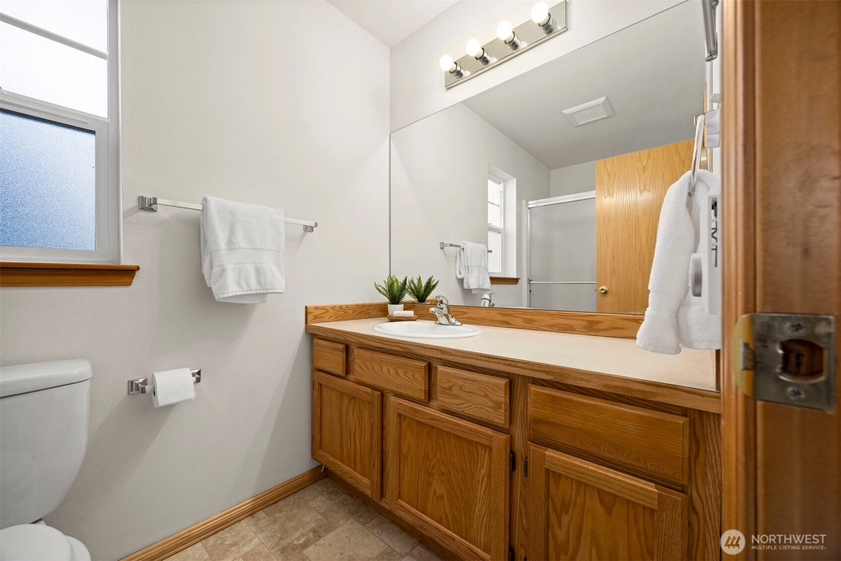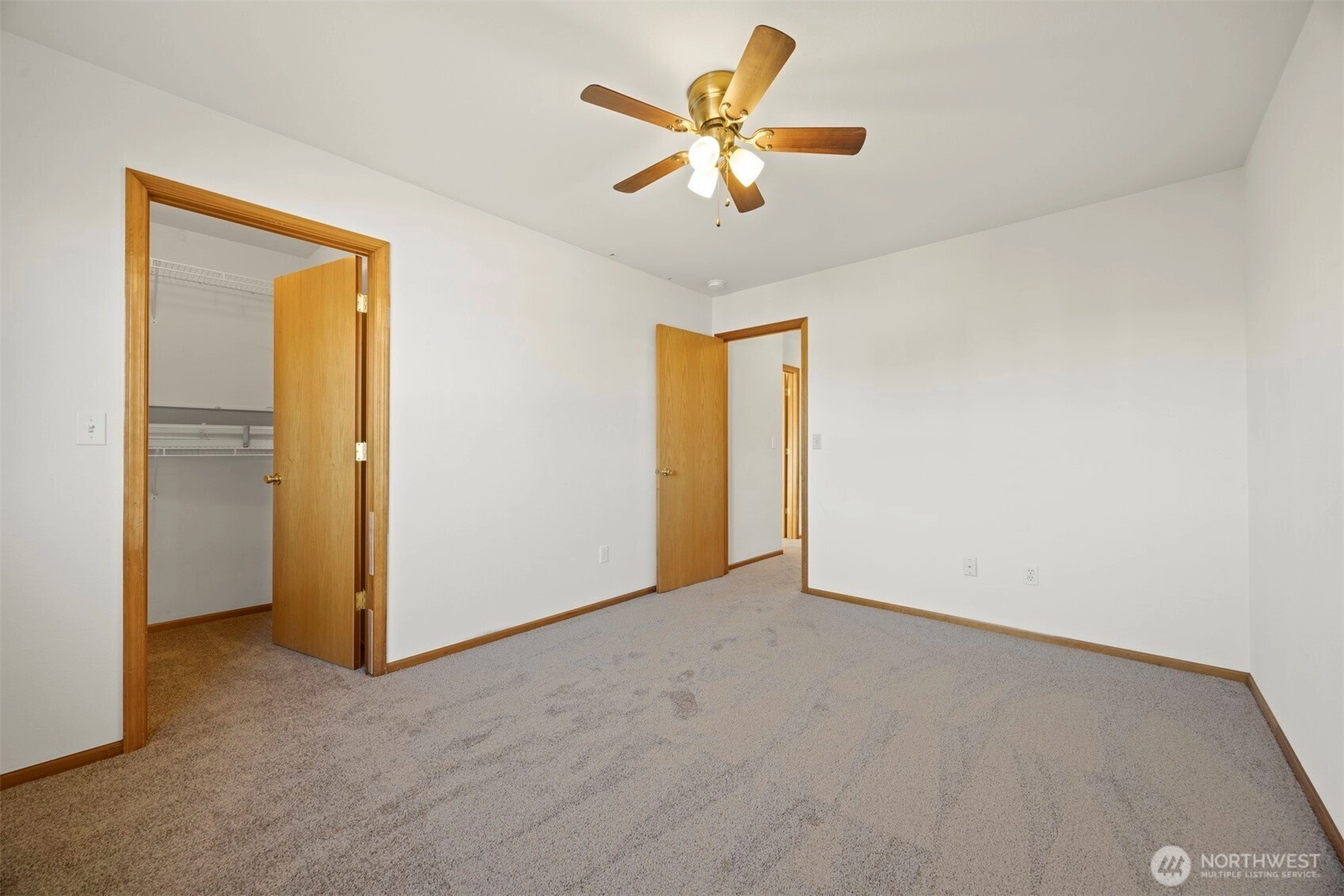 Set in a quiet neighborhood near parks, schools, and downtown Ferndale, this charming 4-bed / 2.25-bath home offers peace, comfort, and space-- all in a great location at an excellent price! Built for main-floor living, you'll be greeted by a cozy front room that leads to a kitchen with bar seating, stainless steel appliances, and connection to living + dining areas. Large living and dining room feature gas fireplace, a cute powder room, lots of natural light, and opens out to the fenced backyard with patio that's great for entertaining. Main floor also features a spacious primary bedroom with walk-in closet and 3/4 en-suite bathroom! Upstairs you'll find 3 good-sized guest beds (2 of which have walk-ins), a full bath, and huge bonus room with built-ins + a closet of its own. Home has been very well maintained, has brand new carpet throughout, and provides plenty of storage. All this plus a covered front porch and an attached 2-car garage with EV charging, alley access, and lots of shelving. Come see!