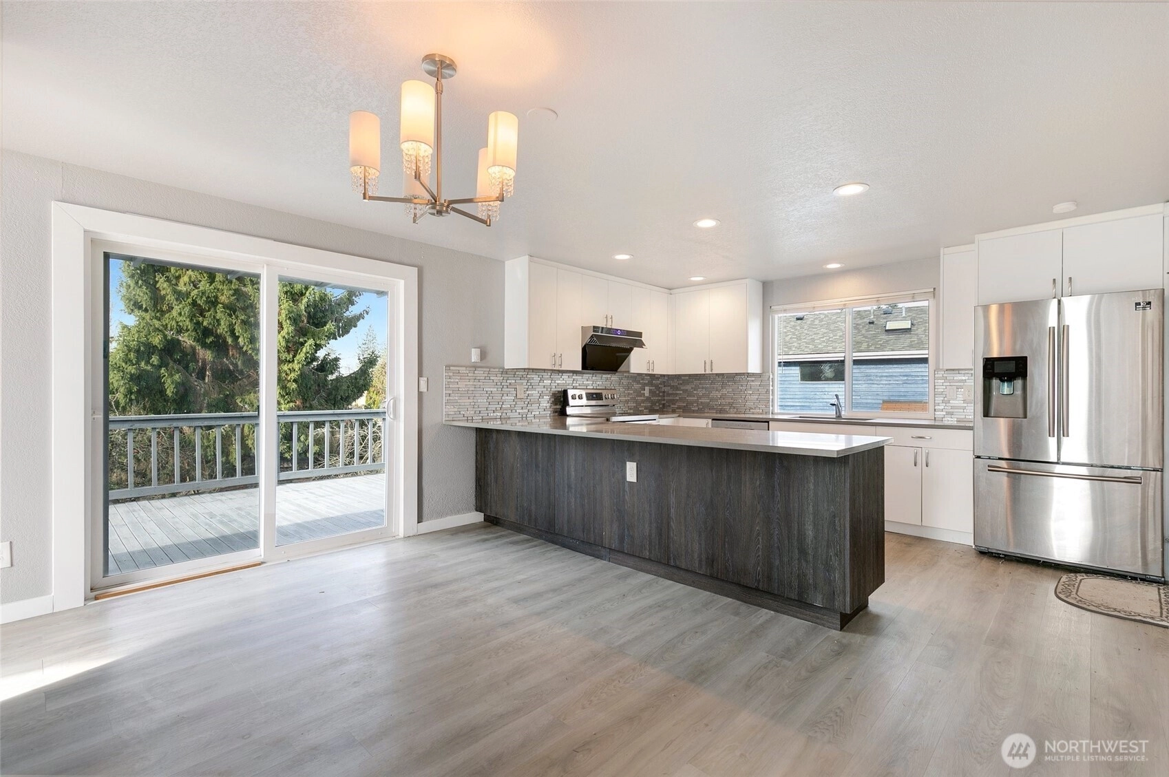 Beautifully updated home tucked away on a neighborhood street in Kent’s desirable East Hill neighborhood! This light-filled residence offers an inviting open layout with vaulted ceilings, expansive windows, and seamless flow between living, dining, and kitchen space. The refreshed kitchen features modern finishes, ample cabinetry, and generous counter space. Upstairs, spacious bedrooms provide comfort and flexibility. Enjoy year-round outdoor living in the fully fenced backyard with patio space perfect for gatherings, play, or gardening. Conveniently located near parks, shopping, dining, and major commuter routes, this move-in ready home combines comfort, functionality, and location. A fantastic opportunity in the heart of Kent!