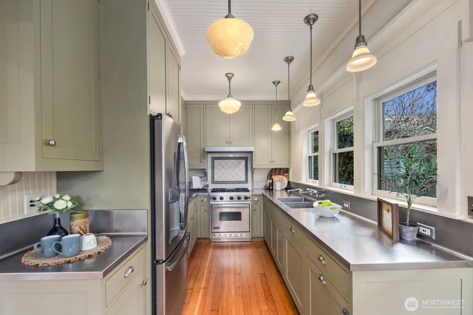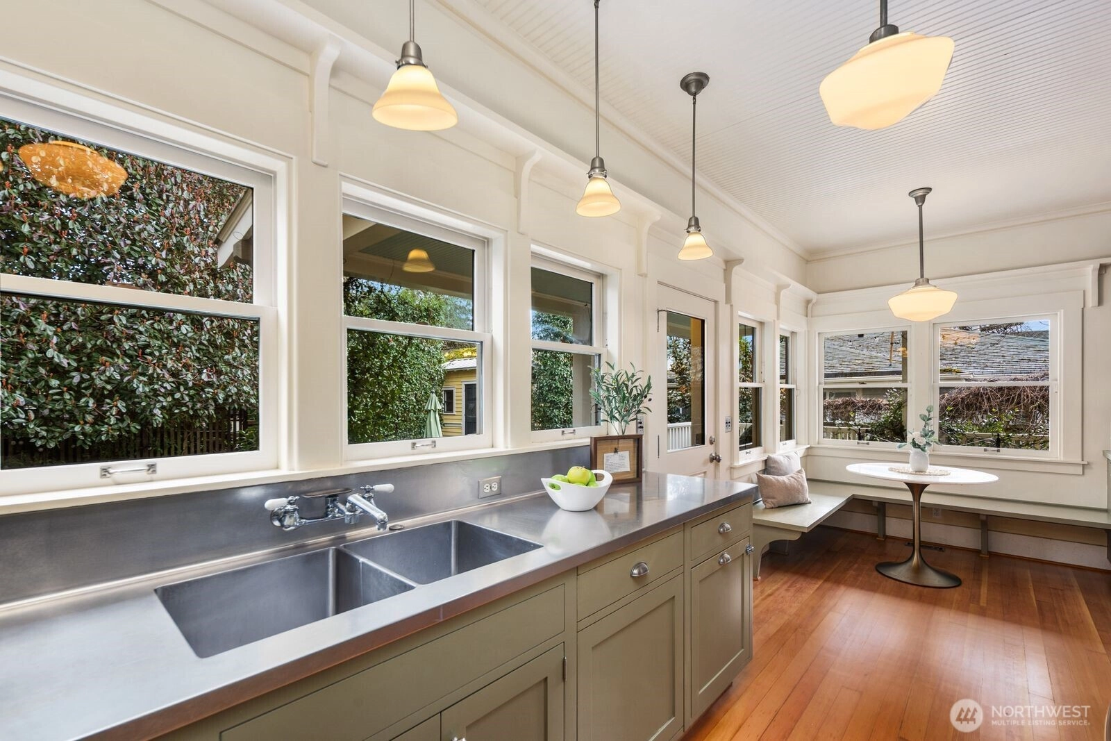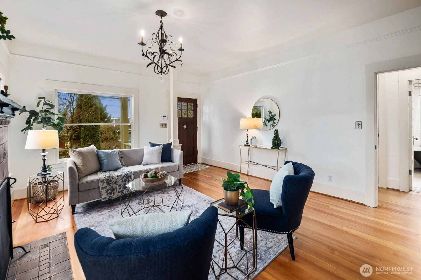 This home is a rare expression of timeless architecture and refined livability, perfectly positioned in Seattle. From the moment you arrive, the home evokes classic Americana—anchored by a professionally designed landscape, lush gardens, and a covered wraparound porch that feels straight out of a Southern Living or Traditional Home magazine. Inside, 4bd 3ba with 2 extra rooms. Authentic Craftsman details are showcased with reverence and sophistication: rich millwork, custom built-ins, detailed wood trim, classic proportions, and warm architectural lines that create both elegance and intimacy. Natural light fills the living spaces, while thoughtful design preserves the integrity and traditional charm while supporting modern living. The home offers exceptional flexibility with a fully functional lower level ideal for a private mother-in-law suite, multigenerational living, guest quarters, or a seamless extension of whole-home living space. This versatility creates long-term value and lifestyle adaptability rarely found in homes of this caliber. Outdoors, the grounds feel like a private garden estate—professionally curated plantings, mature greenery, and tranquil spaces for entertaining, gathering, or quiet retreat. The porch alone becomes a lifestyle feature, offering year-round enjoyment, charm, and connection to the surrounding beauty. This is more than a residence—it’s an architectural statement, a legacy home, and a lifestyle property offering warmth, grace and convenience.