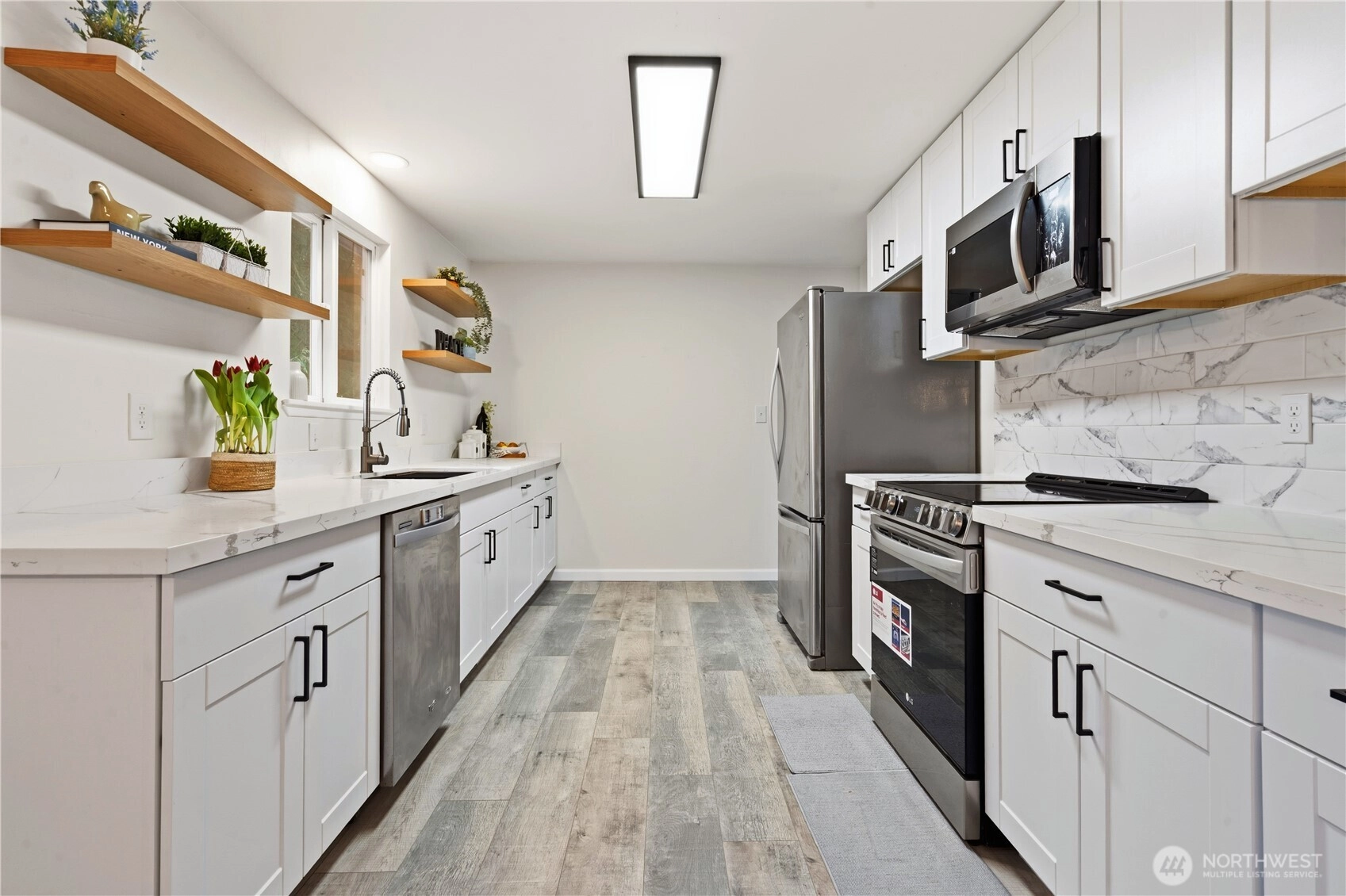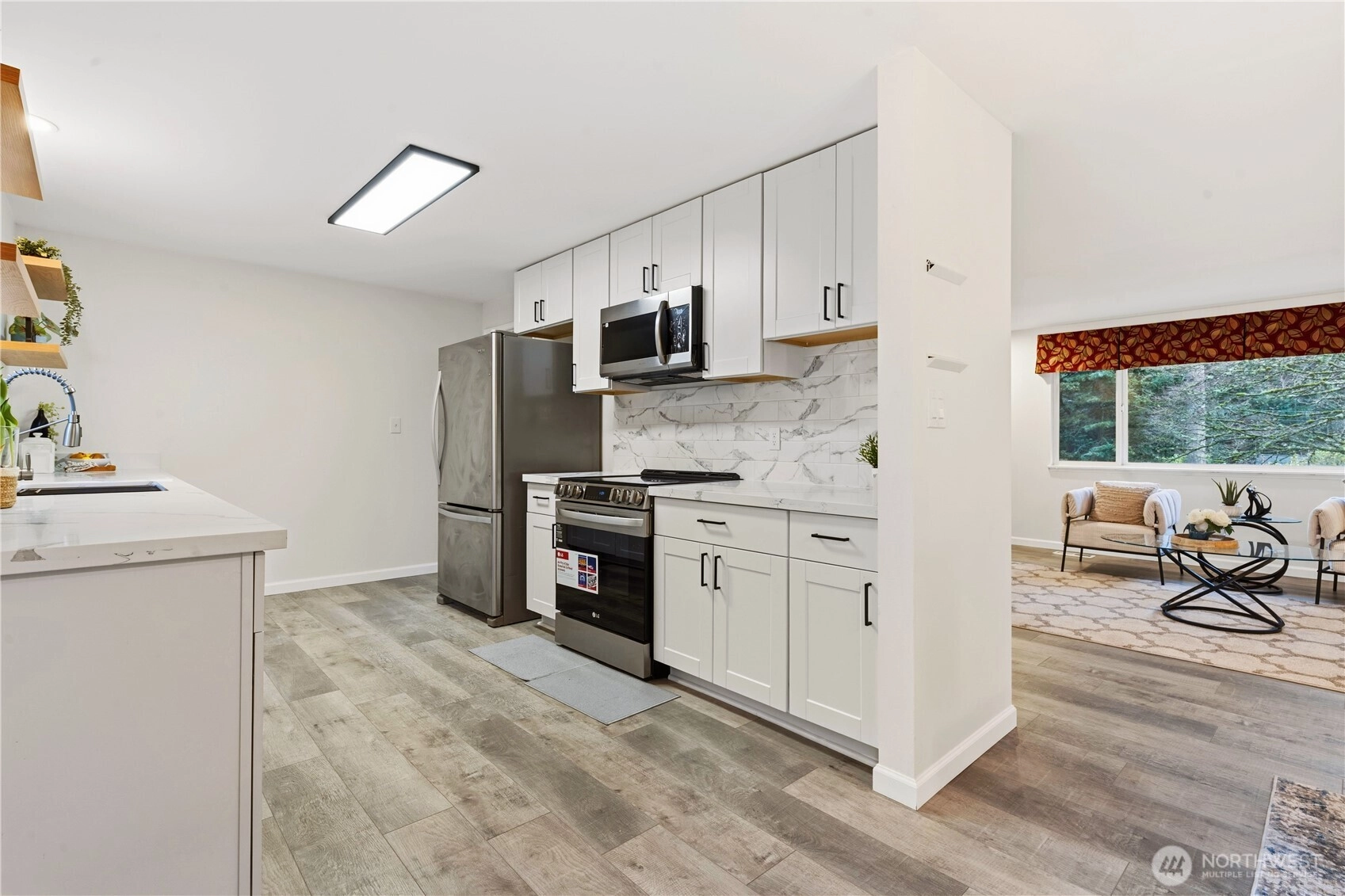 3 bedrooms +2 offices +3 bathrooms with a separate entrance. Recently updated home in the desirable Edmonds Westgate neighborhood, freshly painted inside and out. The brand-new kitchen features ss appliances. An open-concept layout flows into spacious living areas on both levels with wood-burning fireplaces. Fully fenced backyard, an attached two-car garage, and covered parking for an RV or boat. Conveniently located near shopping, dining, and the ferry, this home combines peaceful residential living with excellent access to local amenities.