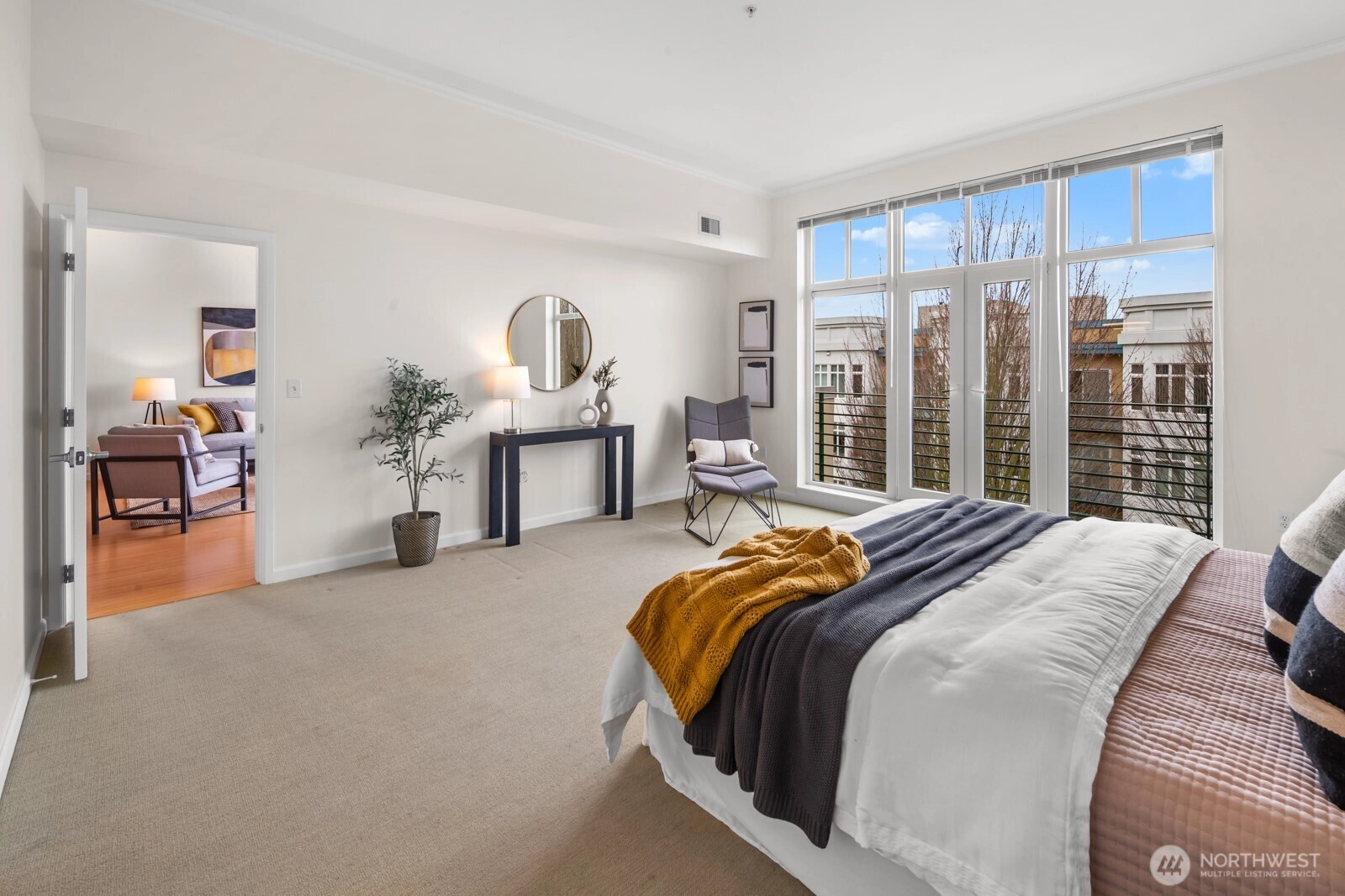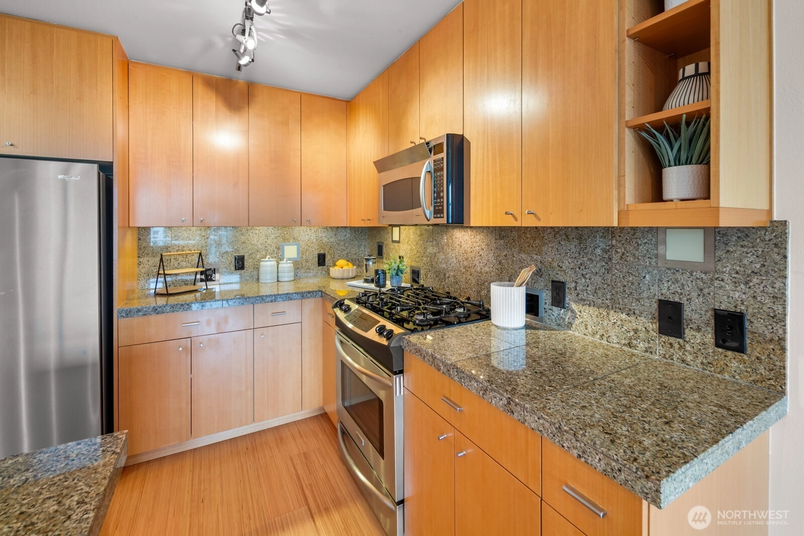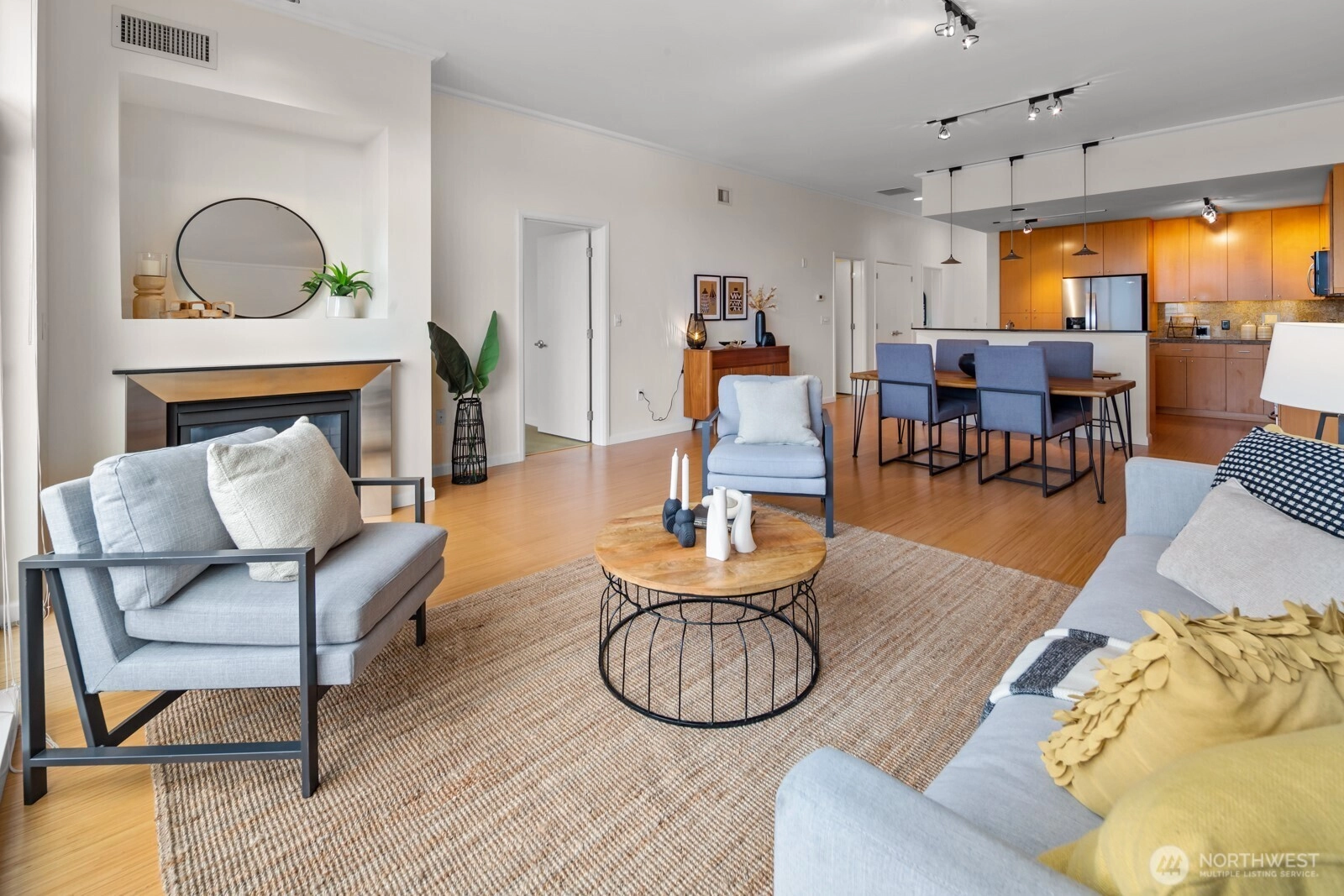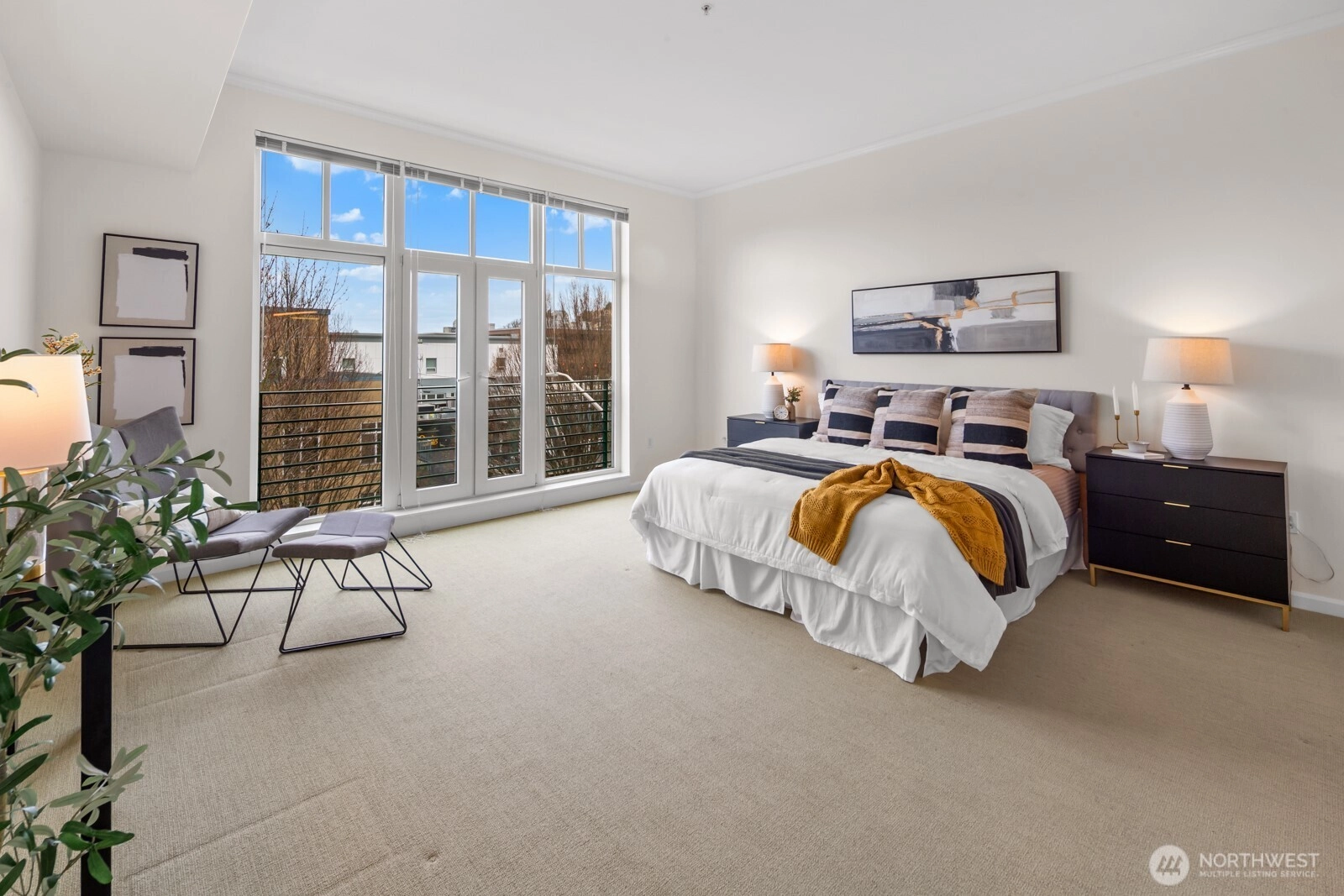 Flooded with natural light, this AMAZING top floor condo is the ultimate in-city retreat and unlike anything else you've seen. Enjoy views of Space Needle at your front door. Step inside to soaring ceilings, floor-to-ceiling glass, bamboo floors, and one of the most spacious 2/2 floor-plans around with over 1,400 sf on one level. You'll love the spacious living and dining, gas fireplace, real laundry room, island kitchen with gas cooking + endless storage. Stay cool all summer with CENTRAL AC! Retreat to a huge primary suite offering private bath + walk-in closet. The second bedroom is also large and features walk-in closet and view of Space Needle. The outdoor spaces make this condo truly special. The living room flows outdoors to a private deck with western exposure for afternoon sunshine, BBQ's, and brilliant sunsets. In addition, the unit has direct access (right outside front door) to a HUGE common rooftop deck with city views that feels like your own back yard. Very cool! Tribeca is a sought-after building with strong reserves, NO RENTAL CAP, and perfect location in the heart of vibrant Queen Anne close to incredible restaurants, cafes, shopping, events, public transportation, and more. Stroll to Kraken games and concerts at Climate Pledge. Easy access to the Seattle waterfront, downtown, and SLU. Oh, the condo includes 2 parking spots (next to each other) in secure garage. Opportunity knocks!