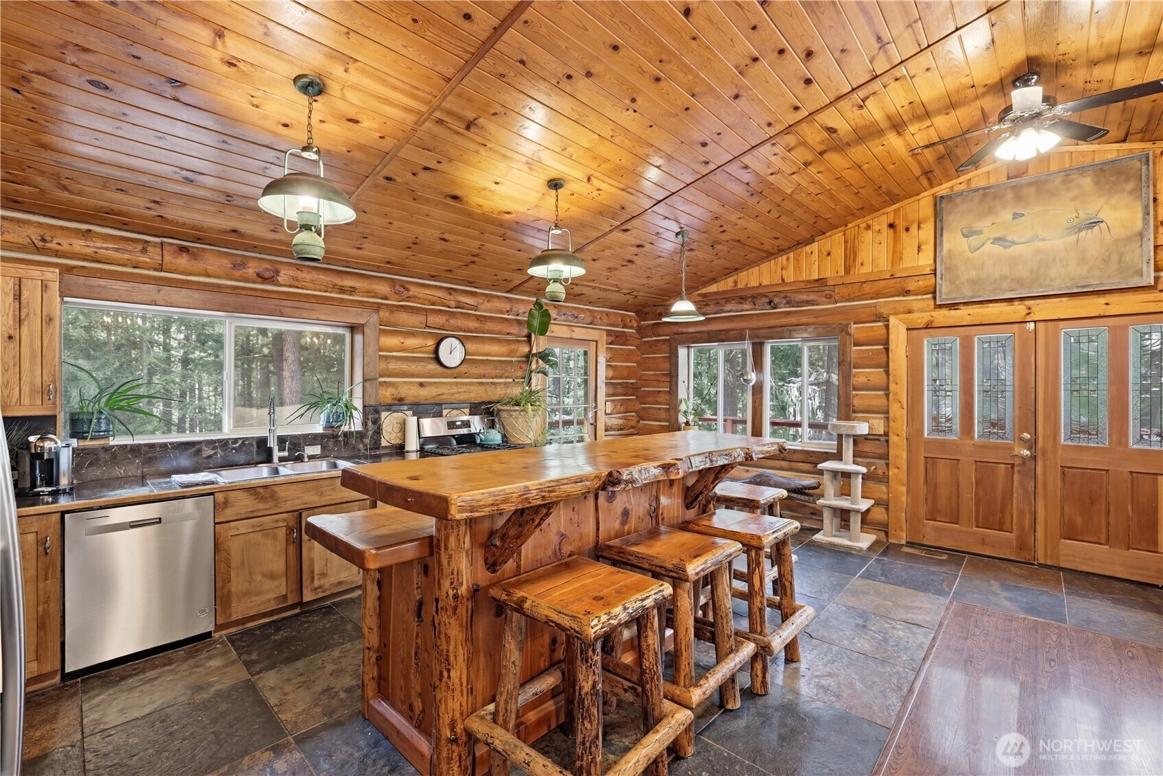 Rustic Charm on nearly 3 private acres. Tucked away in the trees just ouside of Ronald, this authentic log home sits on just shy of 3 acres offering the perfect blend of privacy and mountain character. Surrounded by towering evergreens, the setting feels like your own secluded retreat while still being minutes from year-round recreation. The open-concept kitchen and great room create a warm and inviting gathering space, ideal for entertaining or cozy nights by the fire. 2 bedrooms on ground level including Primary. 2 additional rooms with closets on upper level. Expansive decking wraps the home, providing multiple spaces to relax, host or simply take in the tranquil forest surroundings. A large detached garage offers plenty of room for vehicles, outdoor toys, or workshop space - perfect for embracing the mountain lifestyle. Located near the highly desirable Roslyn Ridge Community - having access to the community center (with paid dues) this property presents strong Airbnb/short term rental potential or an incredible full time residence or weekend getaway. Privacy, character, investment opportunity. Mountain Living at it's best.