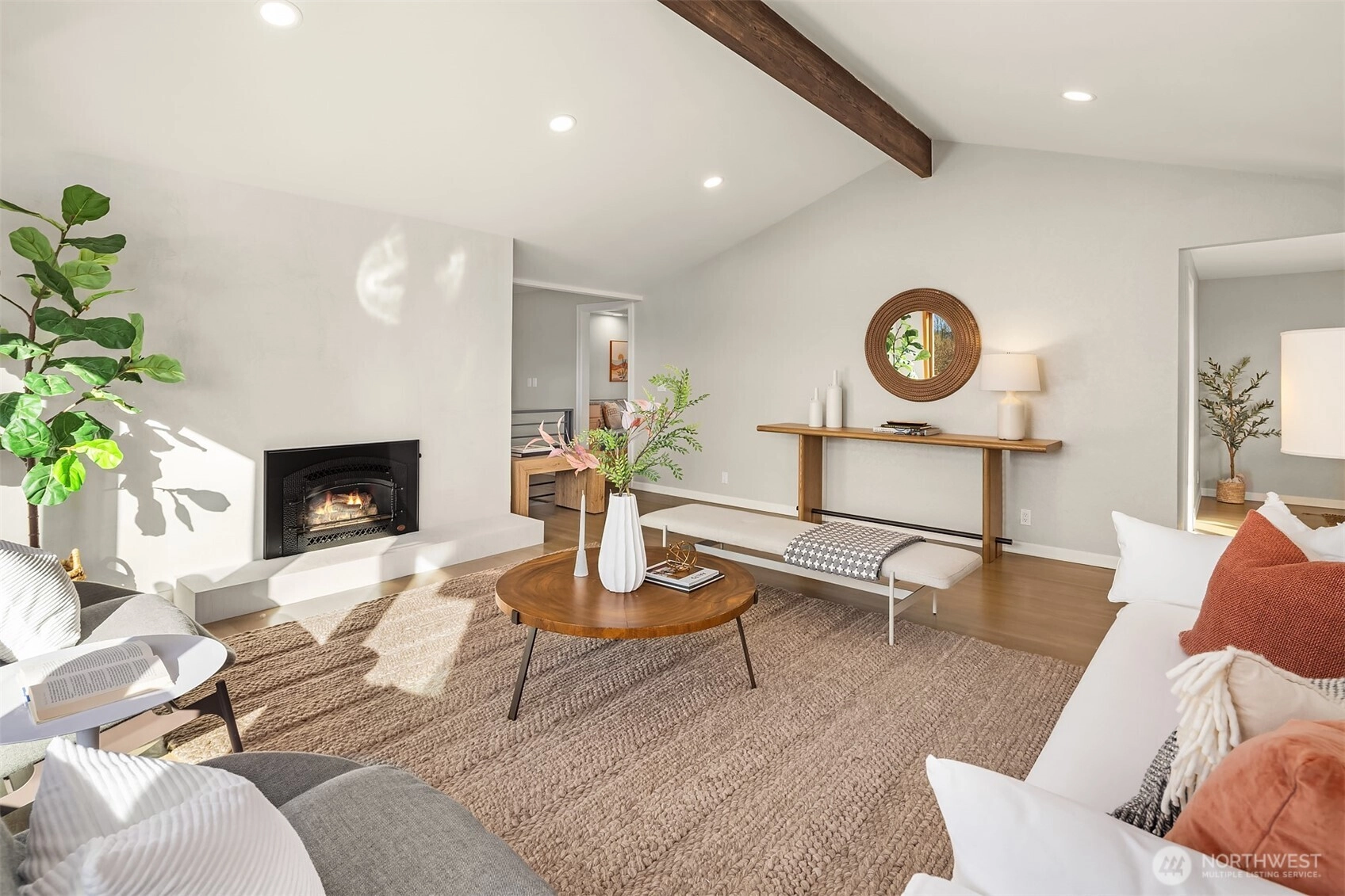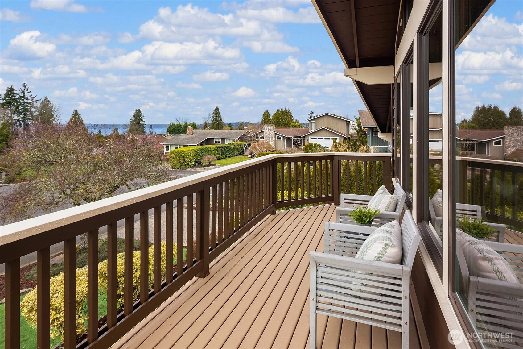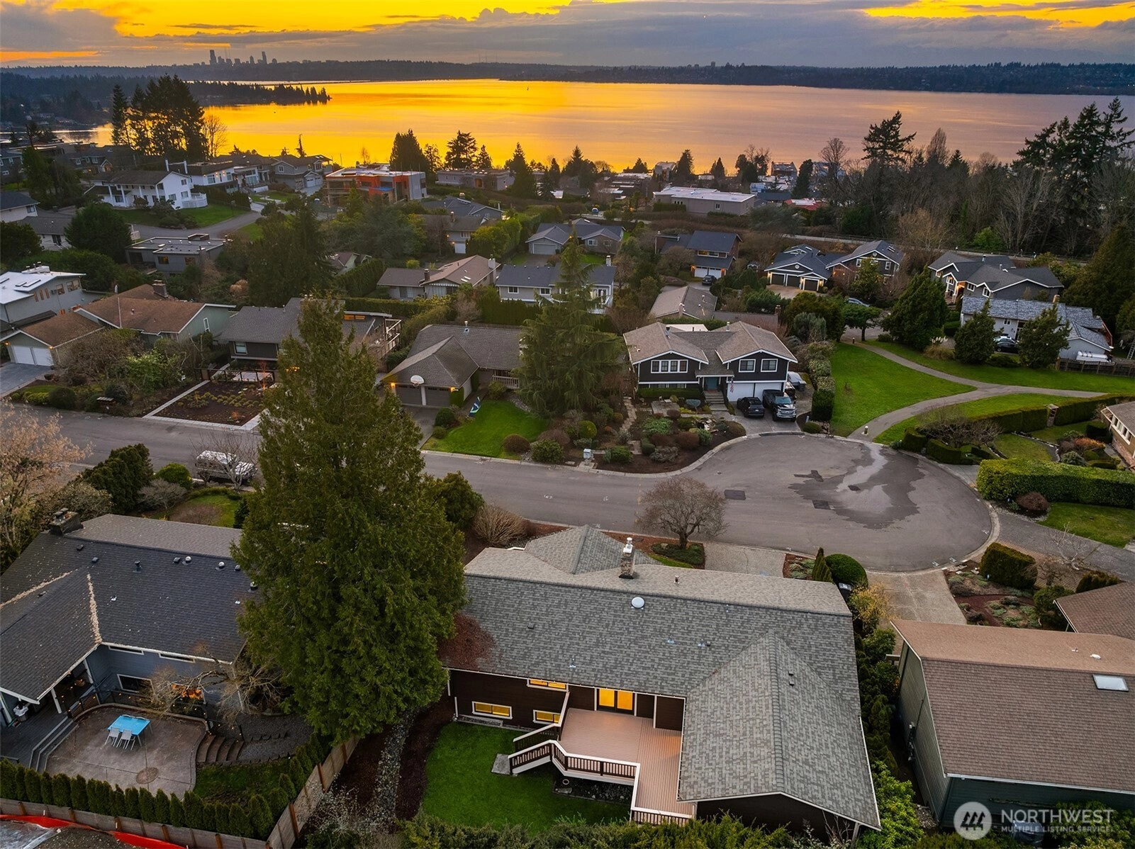 Tucked away at the end of a quiet cul-de-sac in coveted Houghton, this nearly 3,000-square-foot home captures sweeping Lake and Olympic Mountain views. A great room you will never want to leave, featuring a recently updated fireplace with SureCrete MicroTek that creates a sophisticated focal point beneath vaulted ceilings while enhancing the views. Expansive western-facing windows frame the outlook beautifully. The kitchen is designed for gathering; it features updated granite countertops, a mosaic tile backsplash, heated floors, and an oversized island that flows seamlessly to the deck and private backyard retreat. Indoor and outdoor living unfolds effortlessly, whether hosting summer evenings or enjoying sunsets from your front deck. The primary suite offers a seating area, deck access, and a spa-inspired bath with thoughtful details and custom-built closets. Two additional bedrooms and an updated full bath complete the main level. The lower level offers an office, a spacious and flexible bonus room with a fireplace, a game area, and a newer full bath, creating an ideal space for guests, work-from-home needs, fitness, or media. Walk a block to the Cross Kirkland Corridor and enjoy being just minutes from downtown Kirkland’s waterfront, dining, and more. Award-winning Lake Washington Schools. Easy access to SR-520, I-405, Bellevue, Redmond, and Seattle.